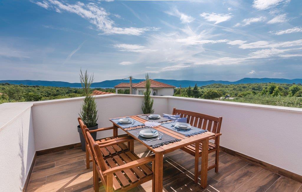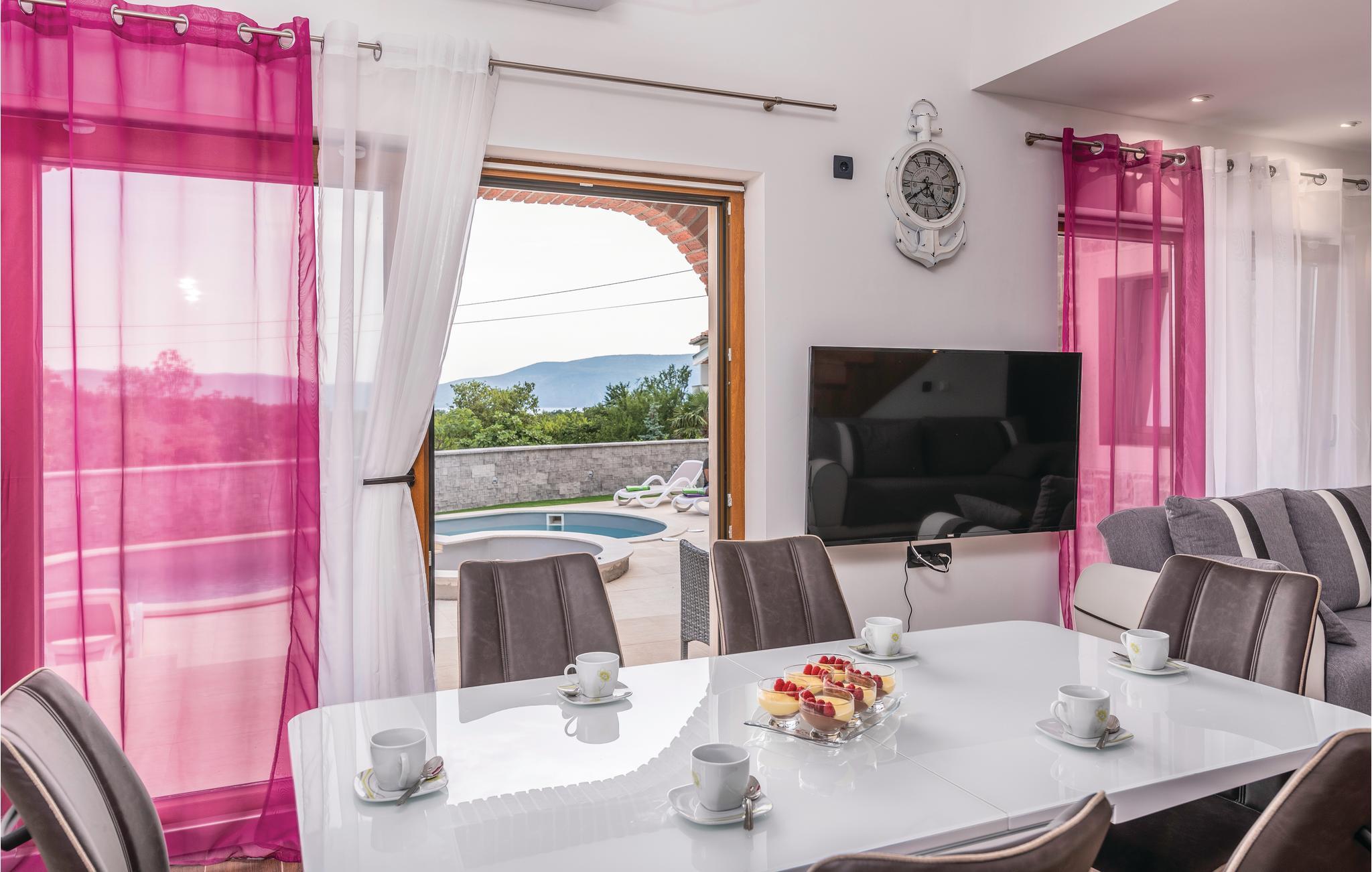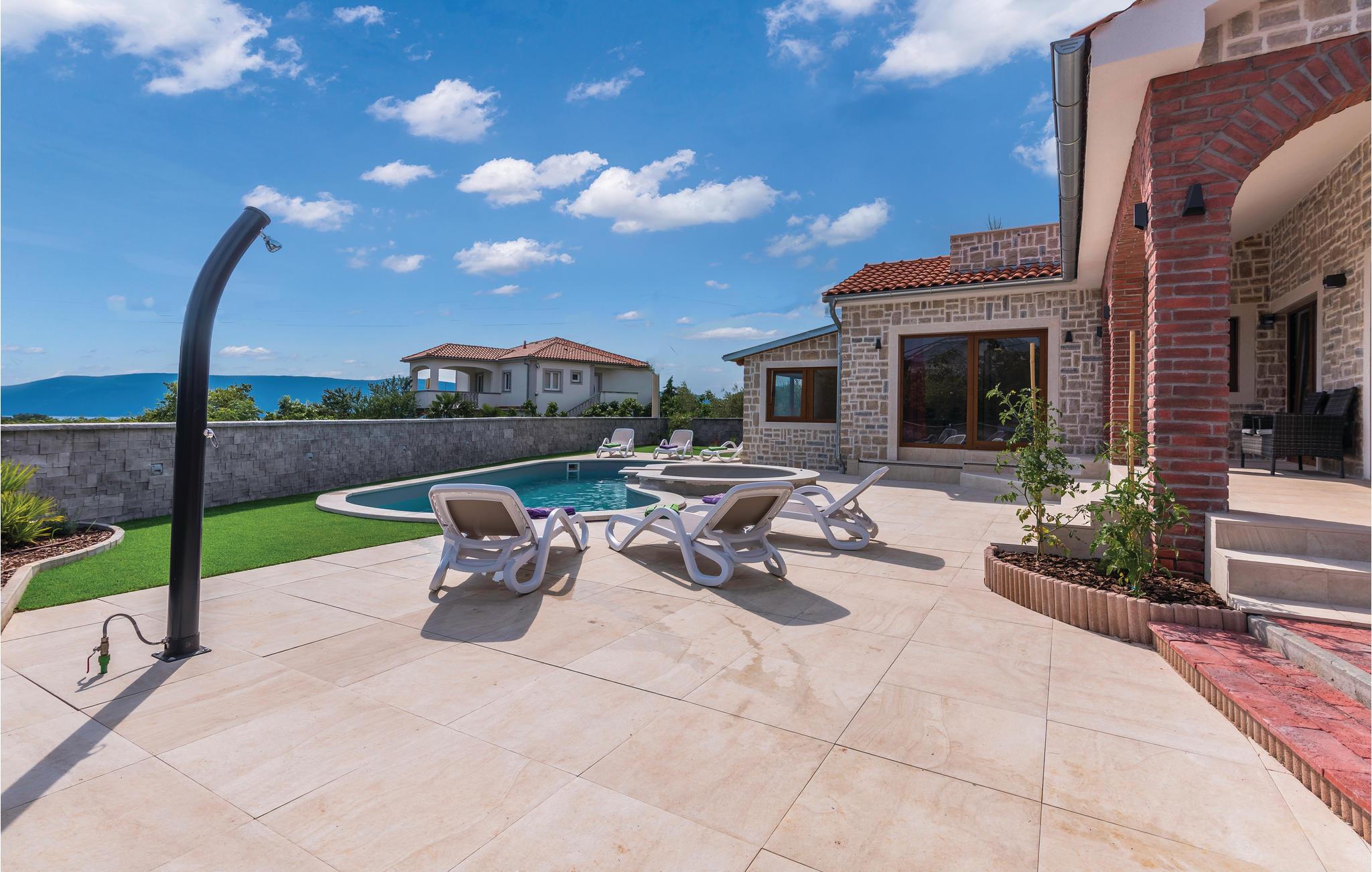 Dette skønne feriehus med pool ligger i Skrpcici, en lille by der ligger på den vestlige del af øen Krk. Det er fordelt på to etager, med en rummelig stue i åben forbindelse med køkken og udgang til poolen og den overdækkede terrasse med grill i stueplan. Fra huset er der ikke langt til Pinezicis strande eller til større byer som Malinska, Krk og Baška. Øens historie strækker sig helt tilbage til antikke, så her kan I fordybe jer i mange interessante historiske seværdigheder. Hver eneste af de små byer på øen, har noget særligt at byde på. Til en aktiv ferie er der markerede vandre- og cykelstier, der er dykker- og wakeboardkurser i Punta.