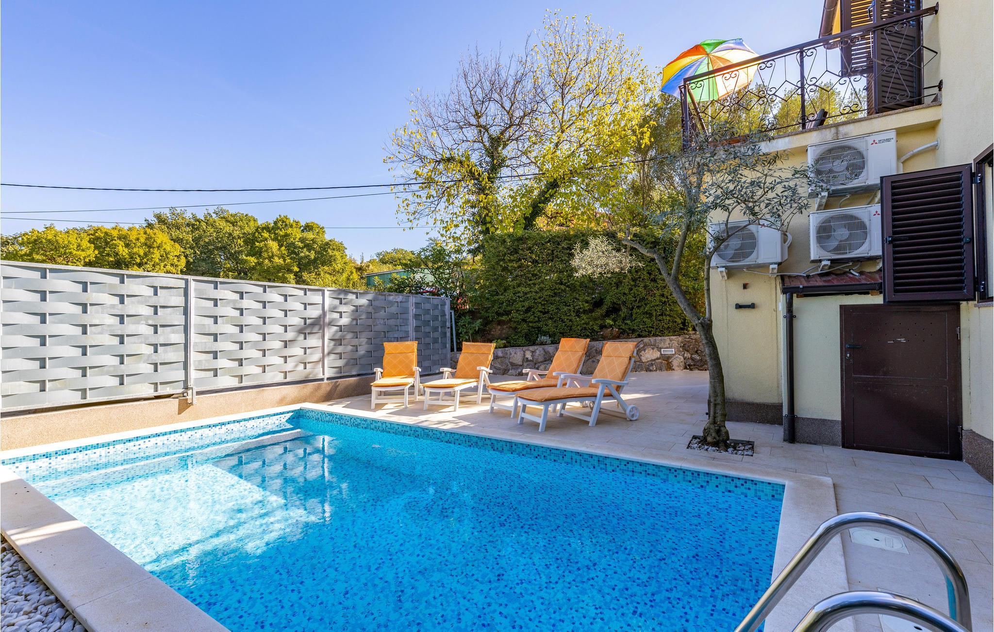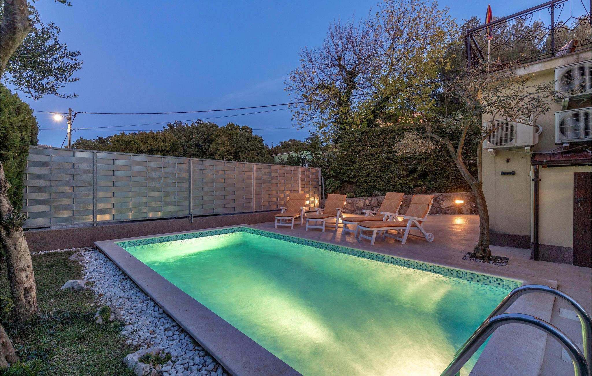 I den lille by Soline på øen Krk ligger dette smukke feriehus med pool. De to etager har ydertrapper. I stueetagen er der en dagligstue med køkken og spisestue, et soveværelse samt et fritidsrum med crosstrainer, bordtennis og pikado, og på første sal er der yderlige tre soveværelser, værelse 3 fungerer som gennemgang. Den flot anlagte, indhegnede have, hvor børn også kan lege sikkert, har en udendørspool, en overdækket og en åben terrasse med grillplads. Der er kun få minutters gang ned til stranden. Den kendte mudder med helende effekt, der findes her, er en særlig oplevelse.