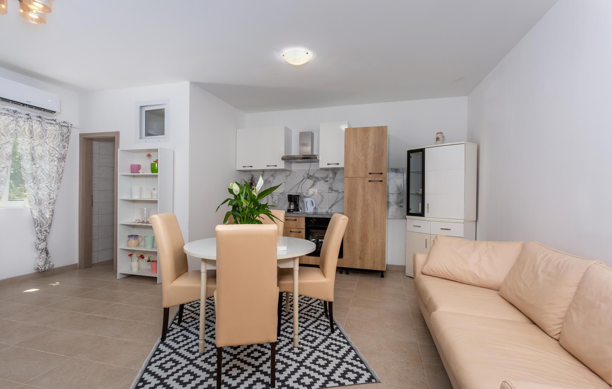 Der er lagt op til masser af afslappende stunder i denne ferielejlighed i Stara Baska på øen Krk. Den attraktive ferielejlighed giver jer en perfekt blanding af komfort og nærhed til naturen. Etværelseslejligheden er lys og flot indrettet og giver adgang til en hyggelig terrasse. Nyd den vidunderlige udsigt over havet og se fantastiske solnedgange. Rejser I med venner eller familie, kan der bestilles yderligere ferielejligheder i lejlighedskomplekset, afhængig af tilgængelighed.