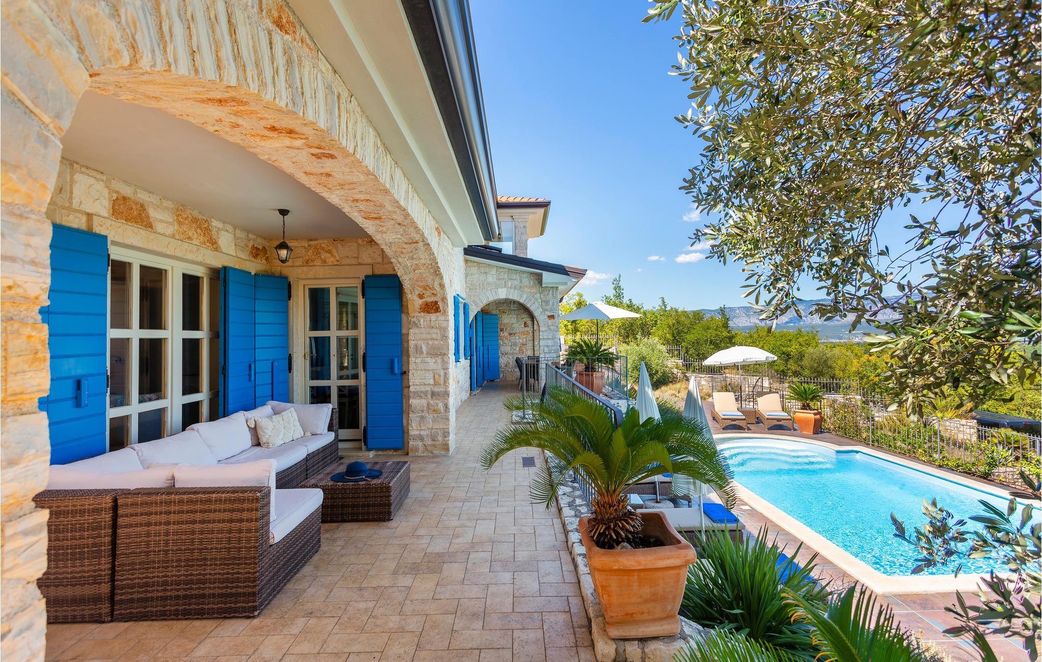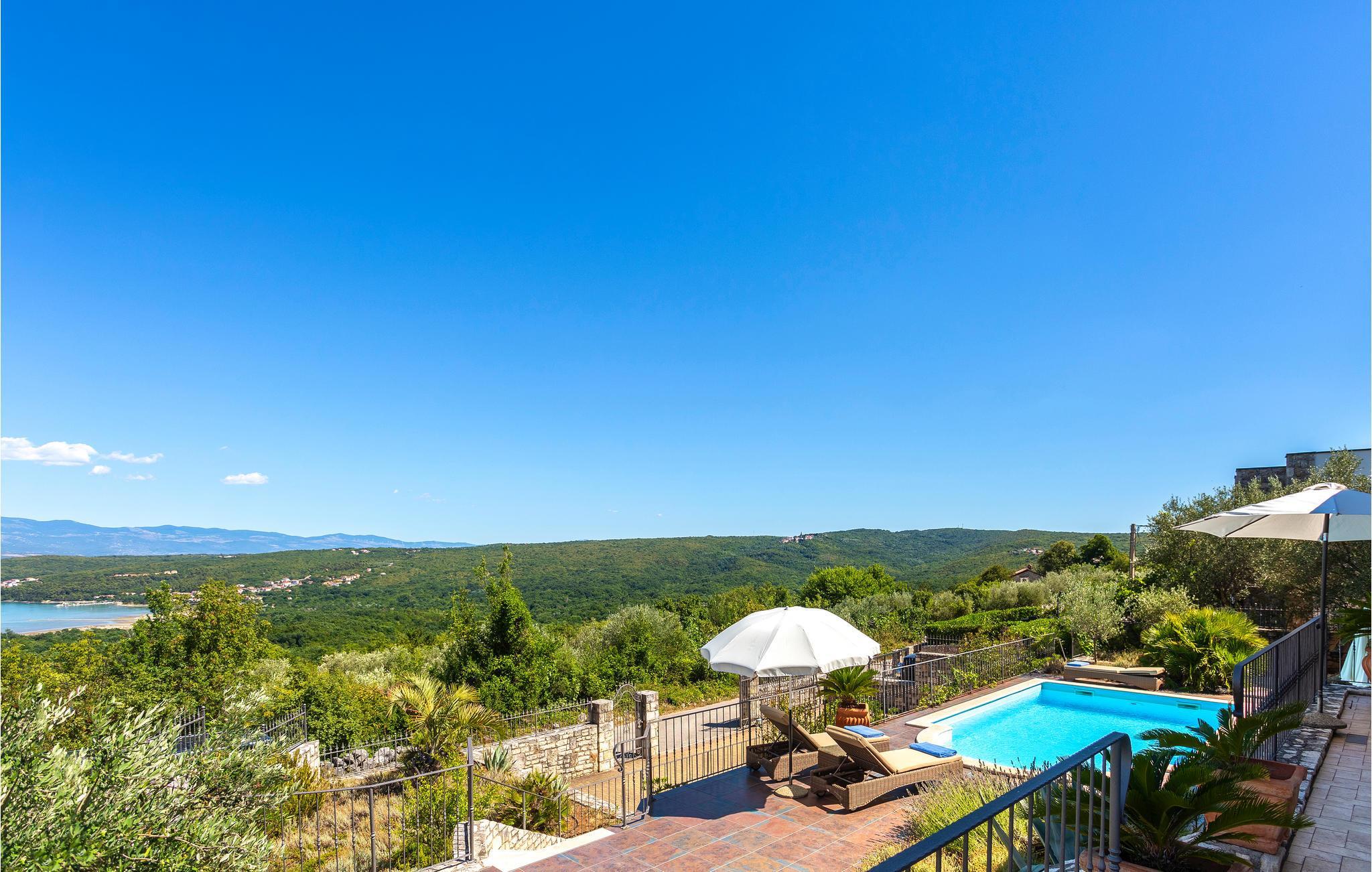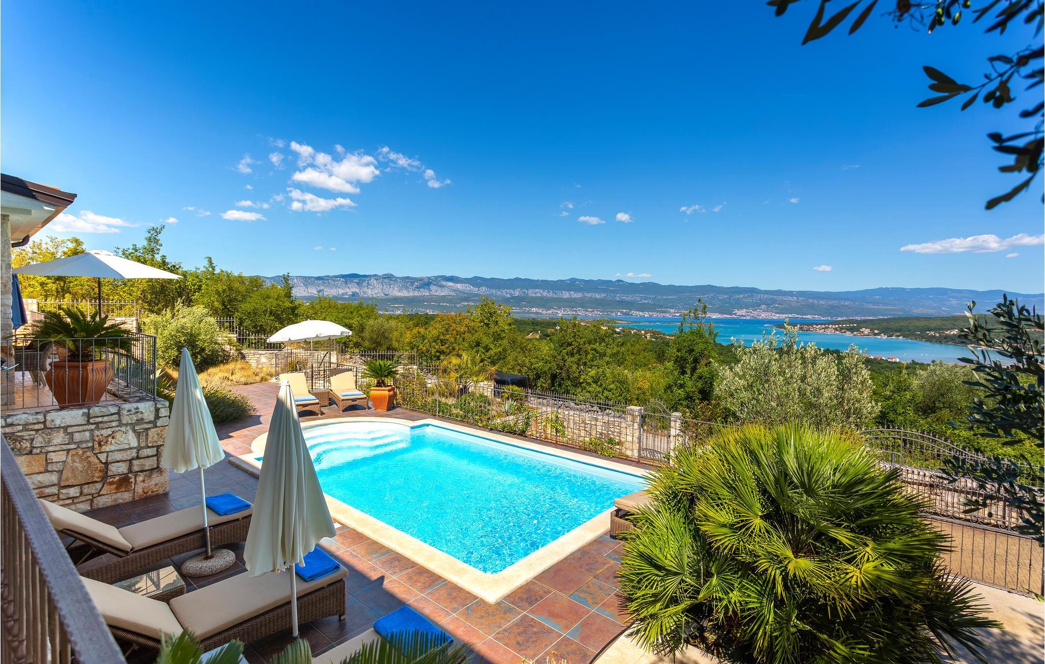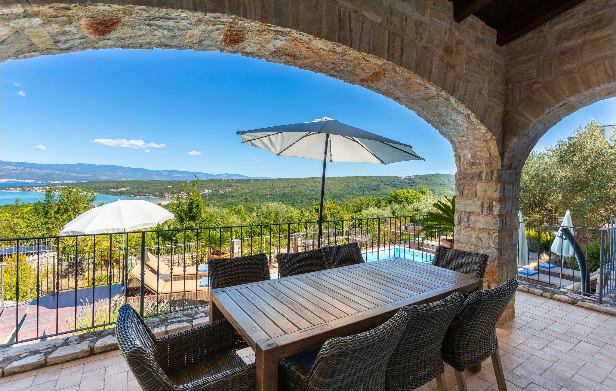 I den lille landsby Suzan med vidunderlig panoramaudsigt til havet og Crikvenica ligger dette skønne hus med swimmingpool. Dette yderst komfortable feriehus består af to enheder med hver sit separate køkken, sin dagligstue i stueetagen og sine soveværelser på 1. sal. Huset er ideelt til to familier, der vil holde ferie sammen og alligevel bevare privatsfæren. Den fælles terrasse og poolen er de perfekte afslapningssteder, medmindre I vil tilbringe dagen uden for ejendommen. Med bilen når I hurtigt de nærmeste strande og stranden ved Klimno med jord, der er helbredende ifølge legenden. Besøg de maleriske kystlandsbyer Vrbnik, Dobrinj, Krk og Baska, der tilbyder jer et kulturelt og underholdende fritidstilbud, især i sommermånederne. Til de aktive feriegæster er der på øen Krk foruden cykelstier også en skilift til ”wakeboarding”, eller deltag i et dykkerkursus. Øen Krk omtales som den gyldne ø og er den største og mest besøgte ø i Kroatien. Berømte rejsemål er også byerne Krk og Baska, der ligger ud til pragtfulde sandstrande. Nyd de mange seværdigheder, den gode mad og ikke mindst lokalbefolkningens venlige imødekommenhed. I de talrige restauranter er det både muligt at spise lokale og internationale retter. Klimaet på øen er særdeles behageligt. Vi anbefaler, at I besøger den skønne by Opatija eller tager en tur til øen Cres med mange hoteller, kasinoer, wellness, gode restauranter og barer.