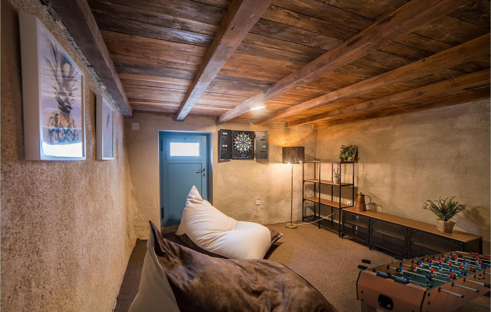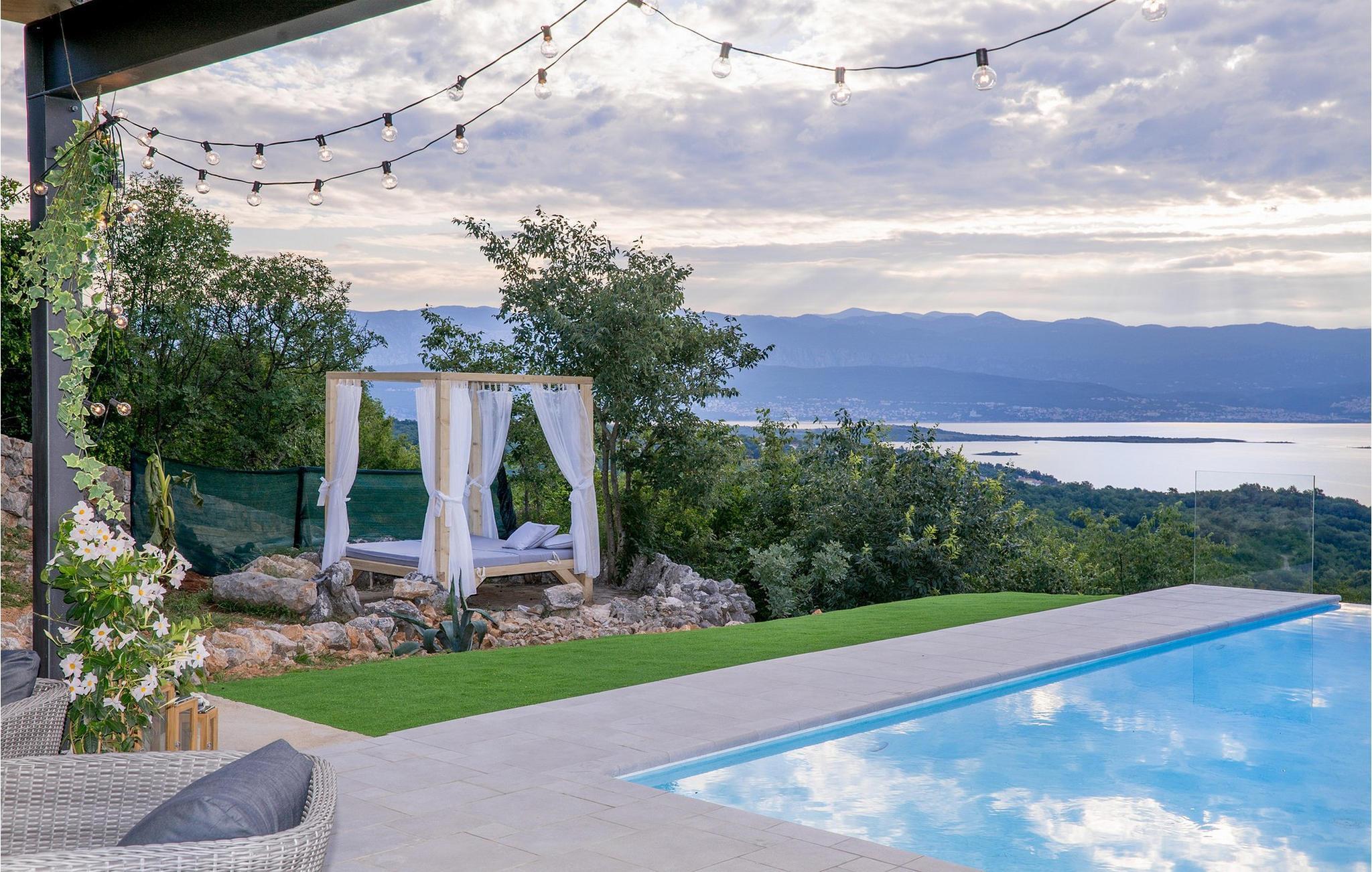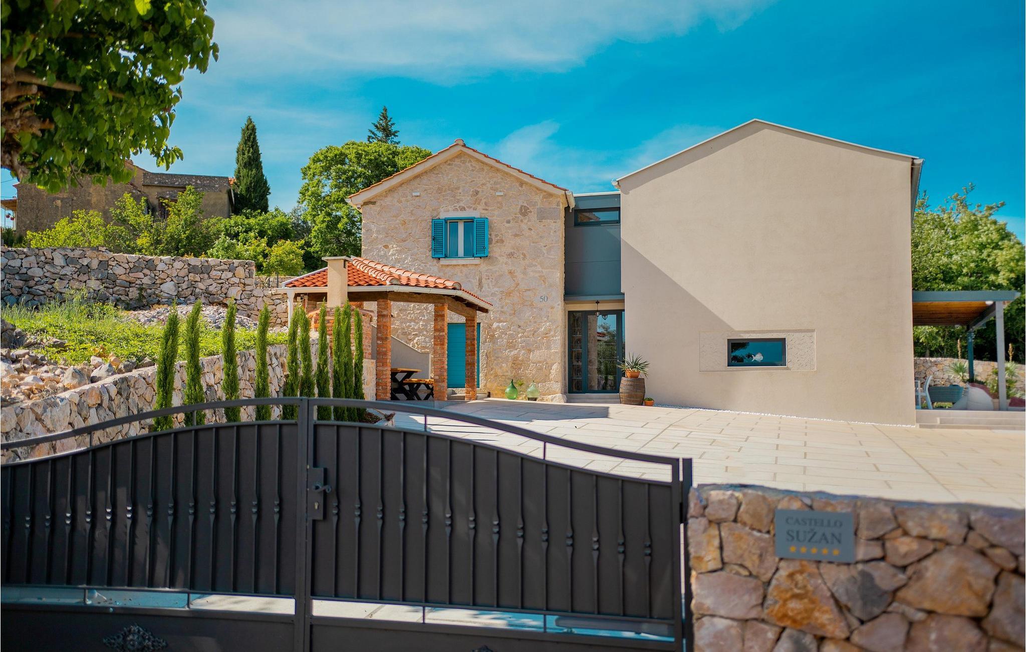 Villa Castello Sužan er en smuk villa på øen Krk, på den nordligste del af Adriaterhavet. Villaen kan dateres tilbage til 1870 og blev totalrenoveret i 2018 i en blanding af charmerende rustik stil indvendigt og sober moderne stil udenpå. Kun 2 km fra den nærmeste sandstrand med medicinsk mudder tilbyder villaen en virkelig betagende havudsigt fra sin store terrasse med udsigt over den smukke (40 m²) infinity-pool. Med et boligareal på 200 m² har denne fuldt airconditionerede villa 4 rummelige soveværelser med dobbeltsenge, 3 smukke badeværelser med brusekabine og 1 separat toilet lige ved poolen. Stueetagen af villaen består af et fuldt udstyret køkken, hvorfra man kan nyde den betagende udsigt, en spiseplads, der byder på plads nok til alle gæster og en stor og komfortabel stue, perfekt til at slappe af om eftermiddagen. Som en særlig funktion har villaen et spillelokale med dart, bordfodbold og en PlayStation-konsol, hvilket gør den til et ideelt valg for familier med børn, der ønsker at tilbringe deres tid i fuldstændig ro. Ejendommen på 1900 m² er fuldstændig omgivet af en smuk stenmur og tilbyder privatliv til sine gæster, der ønsker en problemfri ferie. Udendørsområdet byder også på 6 liggestole ved den opvarmede pool, en grill med spiseplads og 3 private parkeringspladser. Vælg Villa Castello Sužan til din ferie og nyd mangfoldigheden på øen Krk, dens mange attraktioner og aktiviteter. Nyd kulturen, den fantastiske natur, gamle byer, ekstremt charmerende landsbyer, fantastiske og veludstyrede strande, skjulte bugter og talrige restauranter og barer. Villaen har opvarmet pool.