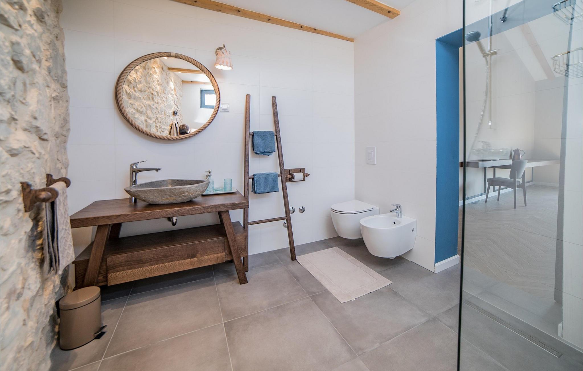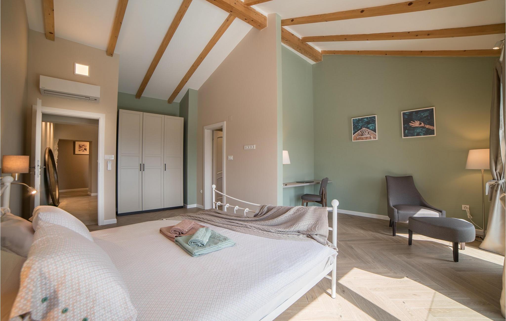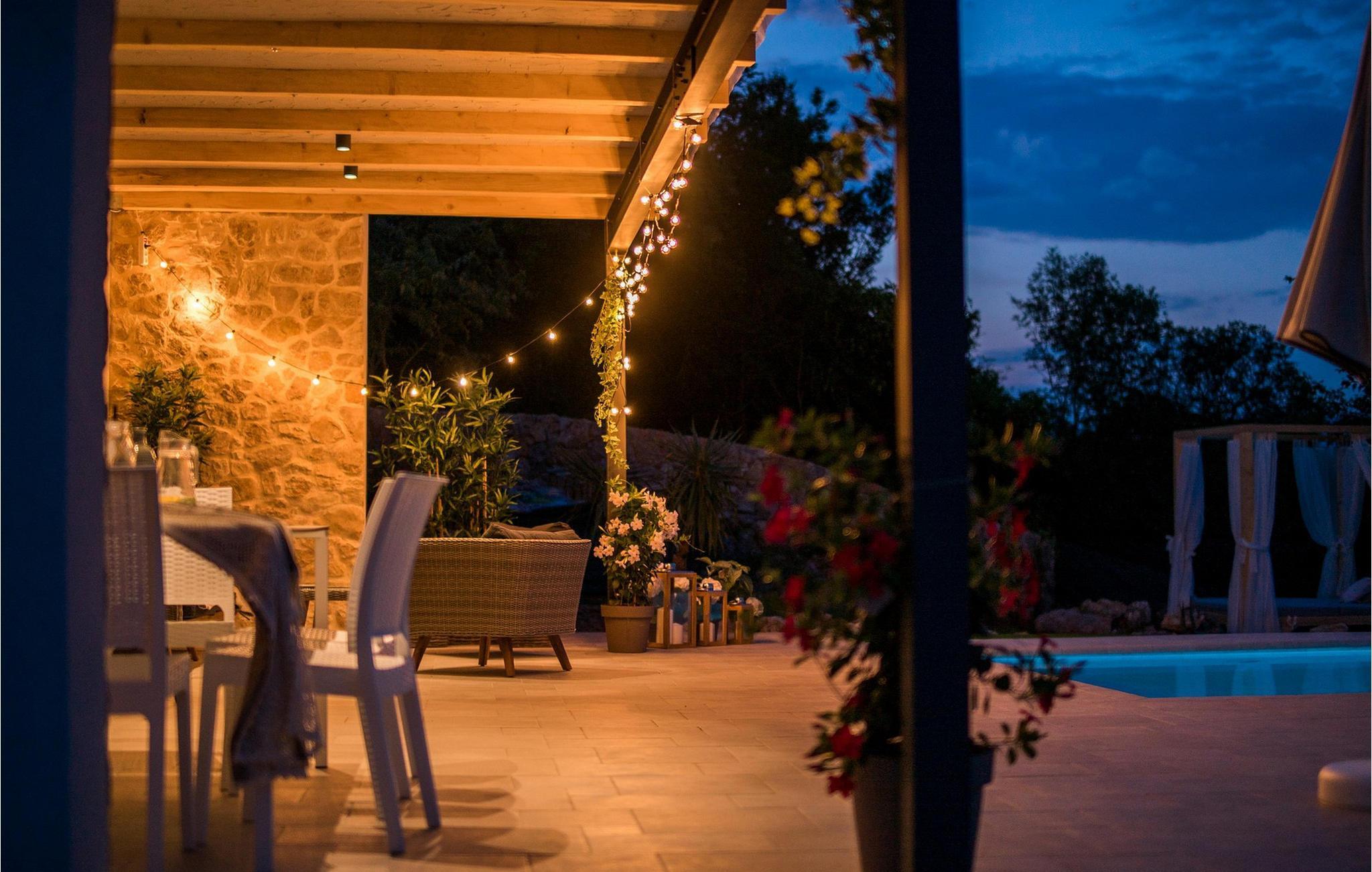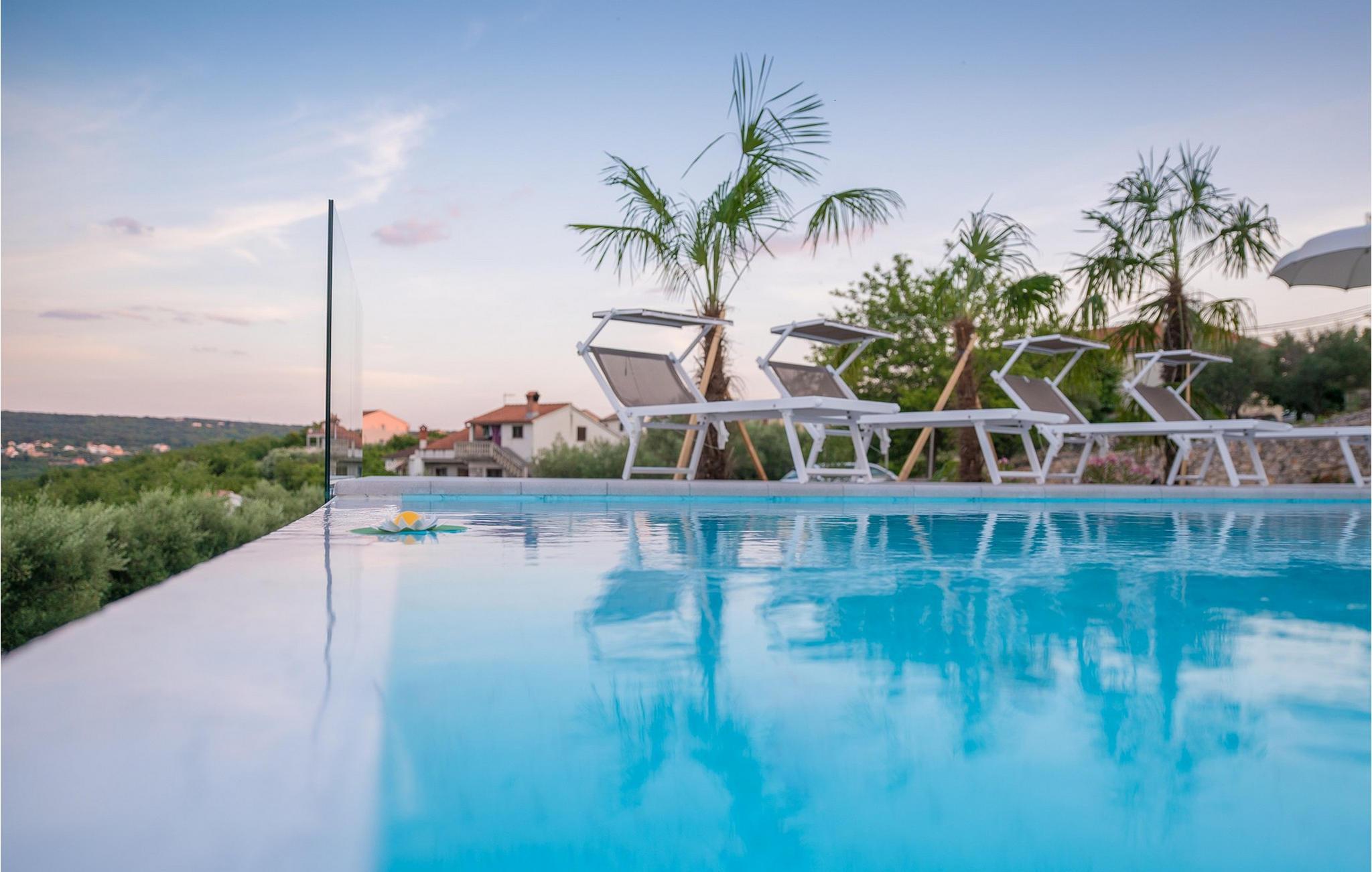 Villa Castello Sužan er en smuk villa på øen Krk, på den nordligste del af Adriaterhavet. Villaen kan dateres tilbage til 1870 og blev totalrenoveret i 2018 i en blanding af charmerende rustik stil indvendigt og sober moderne stil udenpå. Kun 2 km fra den nærmeste sandstrand med medicinsk mudder tilbyder villaen en virkelig betagende havudsigt fra sin store terrasse med udsigt over den smukke (40 m²) infinity-pool. Med et boligareal på 200 m² har denne fuldt airconditionerede villa 4 rummelige soveværelser med dobbeltsenge, 3 smukke badeværelser med brusekabine og 1 separat toilet lige ved poolen. Stueetagen af villaen består af et fuldt udstyret køkken, hvorfra man kan nyde den betagende udsigt, en spiseplads, der byder på plads nok til alle gæster og en stor og komfortabel stue, perfekt til at slappe af om eftermiddagen. Som en særlig funktion har villaen et spillelokale med dart, bordfodbold og en PlayStation-konsol, hvilket gør den til et ideelt valg for familier med børn, der ønsker at tilbringe deres tid i fuldstændig ro. Ejendommen på 1900 m² er fuldstændig omgivet af en smuk stenmur og tilbyder privatliv til sine gæster, der ønsker en problemfri ferie. Udendørsområdet byder også på 6 liggestole ved den opvarmede pool, en grill med spiseplads og 3 private parkeringspladser. Vælg Villa Castello Sužan til din ferie og nyd mangfoldigheden på øen Krk, dens mange attraktioner og aktiviteter. Nyd kulturen, den fantastiske natur, gamle byer, ekstremt charmerende landsbyer, fantastiske og veludstyrede strande, skjulte bugter og talrige restauranter og barer. Villaen har opvarmet pool.