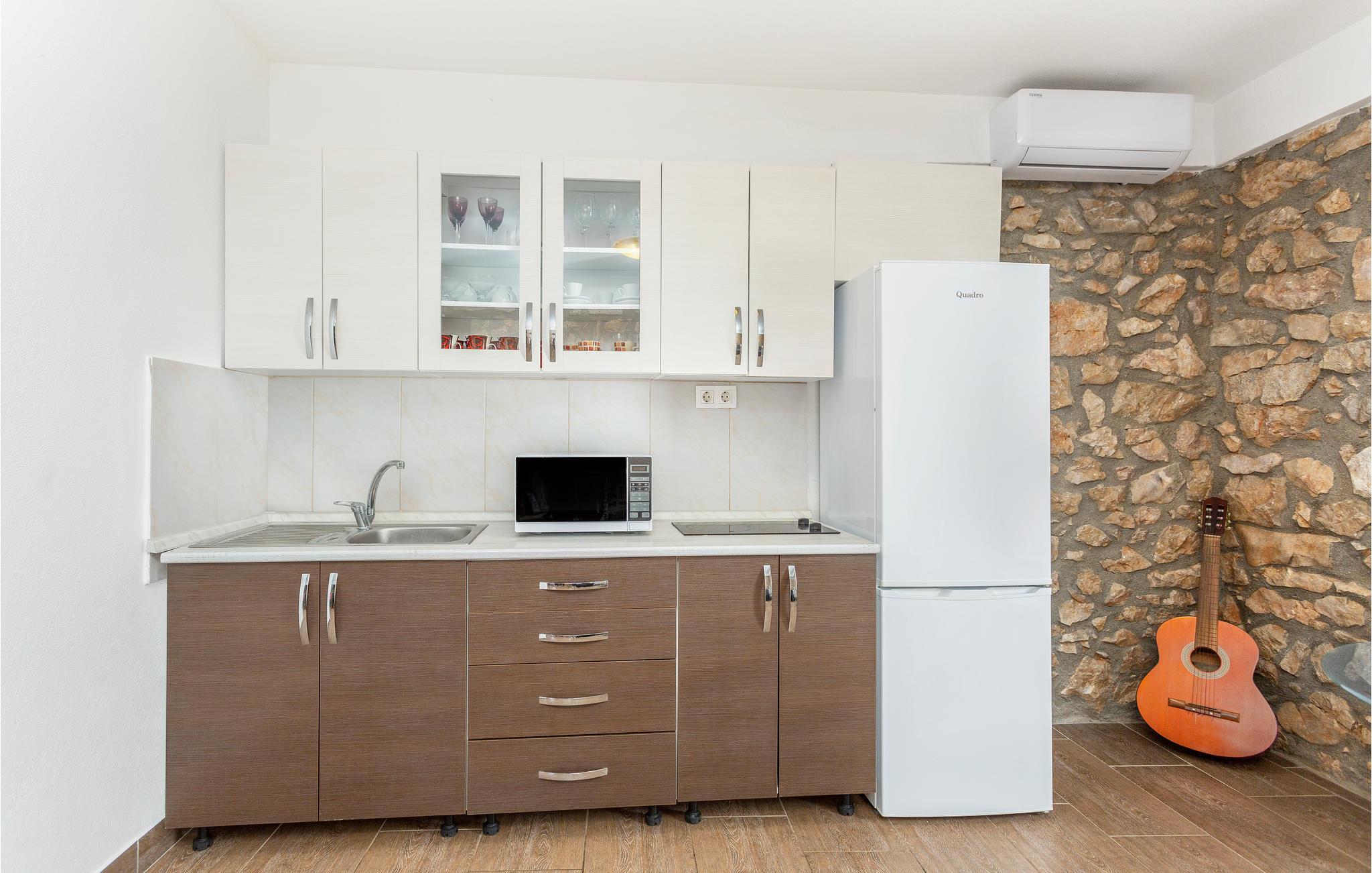 I bor tæt på den større by Dobrinj og har en butik og en restaurant i nærheden. Udforsk øen Krk, som er fuld af muligheder for underholdning, rekreation, vandreture og vandsport. Det gastronomiske tilbud er af høj standard her, og det samme gælder øens vinhuse, som du primært finder i Vrbnik.