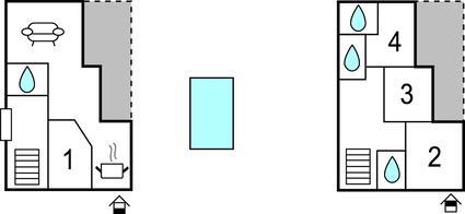Badeværelse 4m2 (nr. 2) - WC. Varmt og koldt vand. Bruser