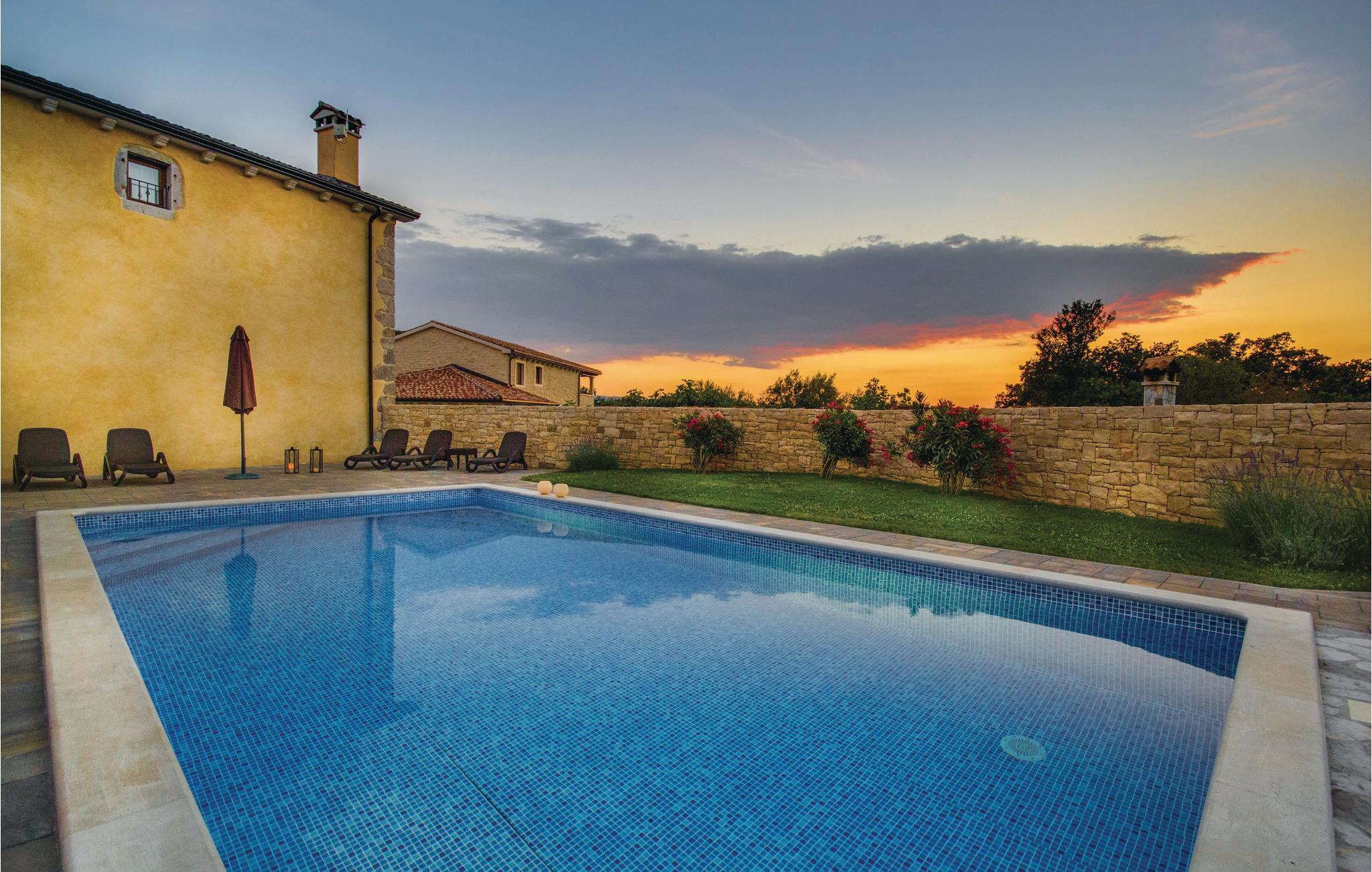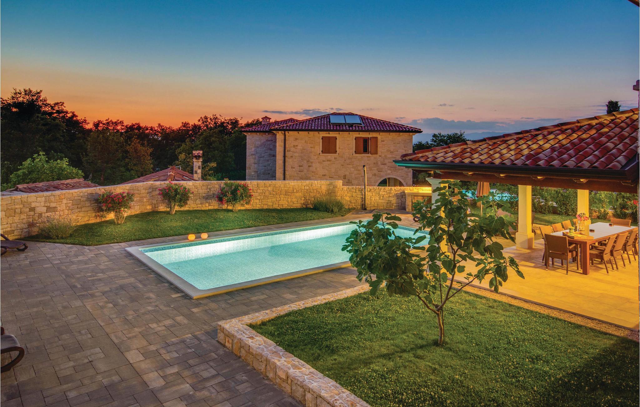 I den lille by Turcic, kun ti minutter til fods fra havet og de skønne strande ligger dette kompleks med fire eksklusive villaer, hvor I kan holde ferie i skønne rolige omgivelser og med al ønskelig komfort. Til hvert hus hører en swimmingpool og en indhegnet have, og hvert hus er indrettet unikt. CKK546 er en moderne og funktionelt indrettet villa, hvor der er en rummelig opholdsstue i stueplan. Herfra kommer I direkte ud på den overdækkede terrasse. Her kan I nyde de varme sommerdage med forfriskende pauser i poolen. Til hvert soveværelse hører eget badeværelse, og fra soveværelserne på første sal er der udgang til en overdækkede altaner, hvor I kan drikke dagens første kop kaffe og nyde lydene fra naturen. Fra huset kommer I nemt til de berømte turistbyer på øen, f.eks. Malinska, Krk og Baska, hvor der er meget at se og opleve sommeren igennem, samt mange cafeer og restauranter, hvor I kan spise enten international eller kroatisk mad og drikke den gode kroatiske vin.