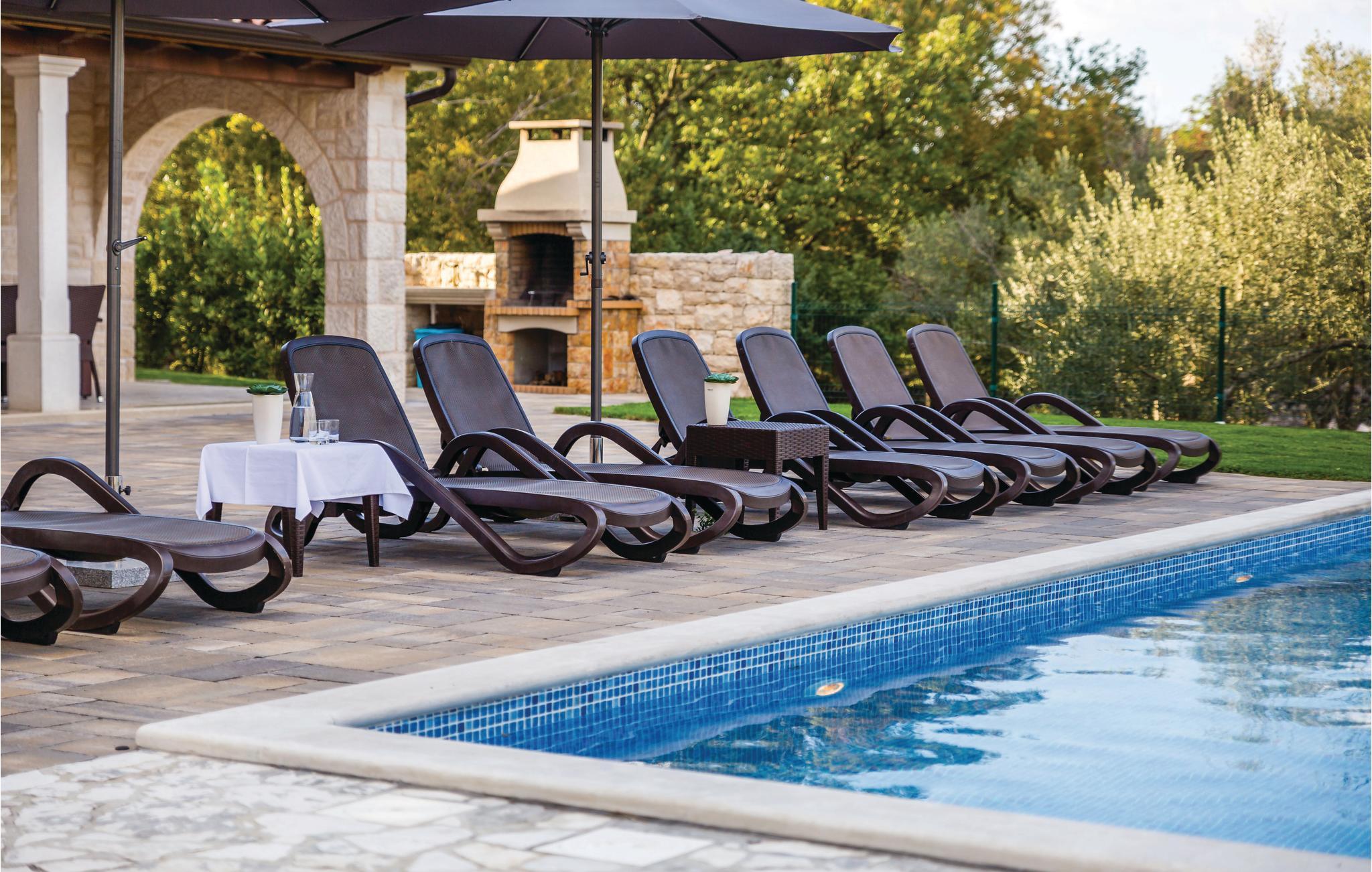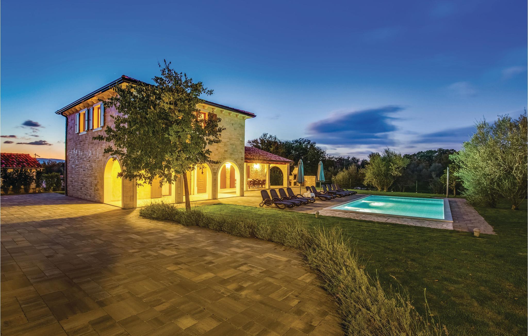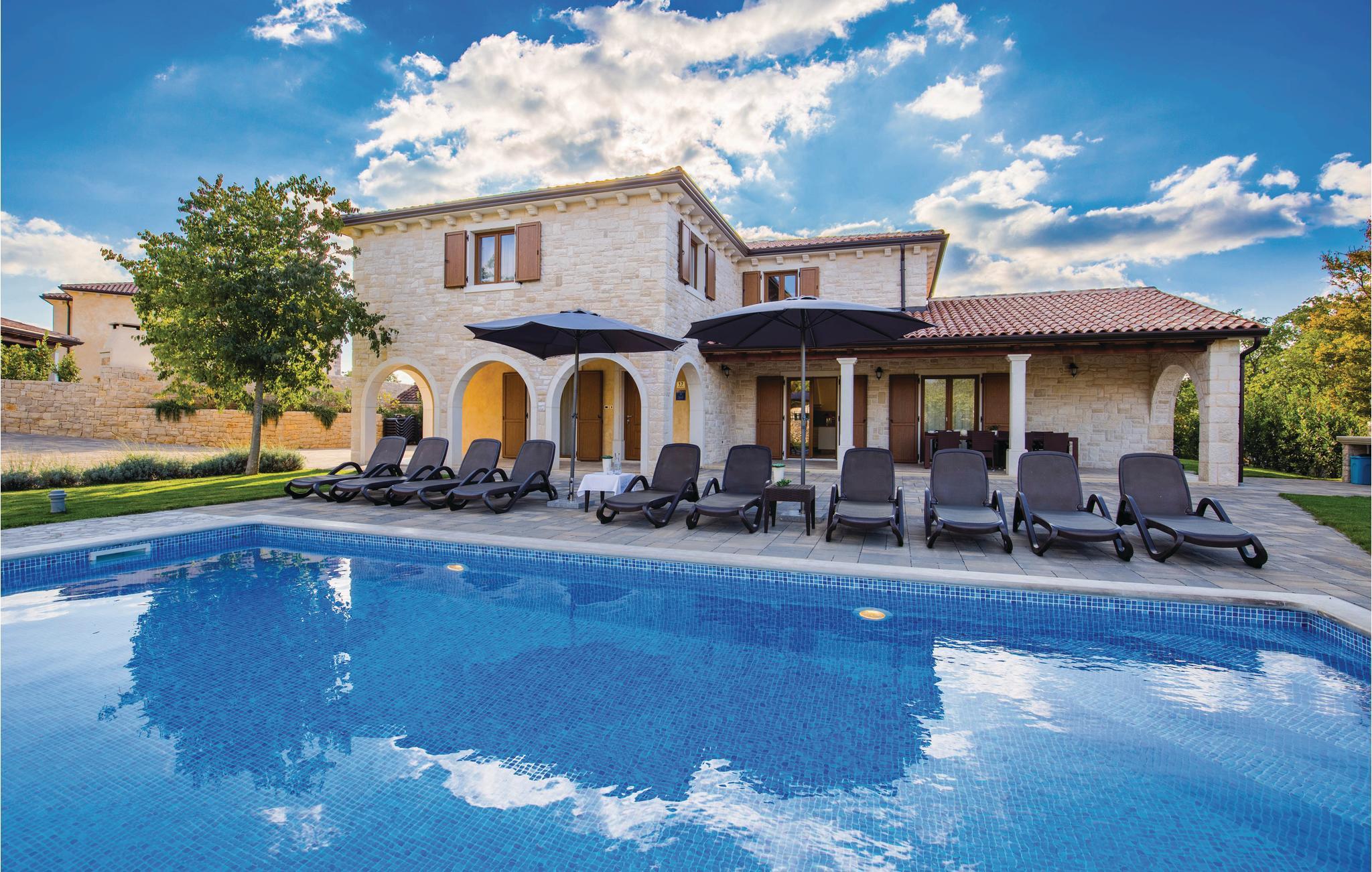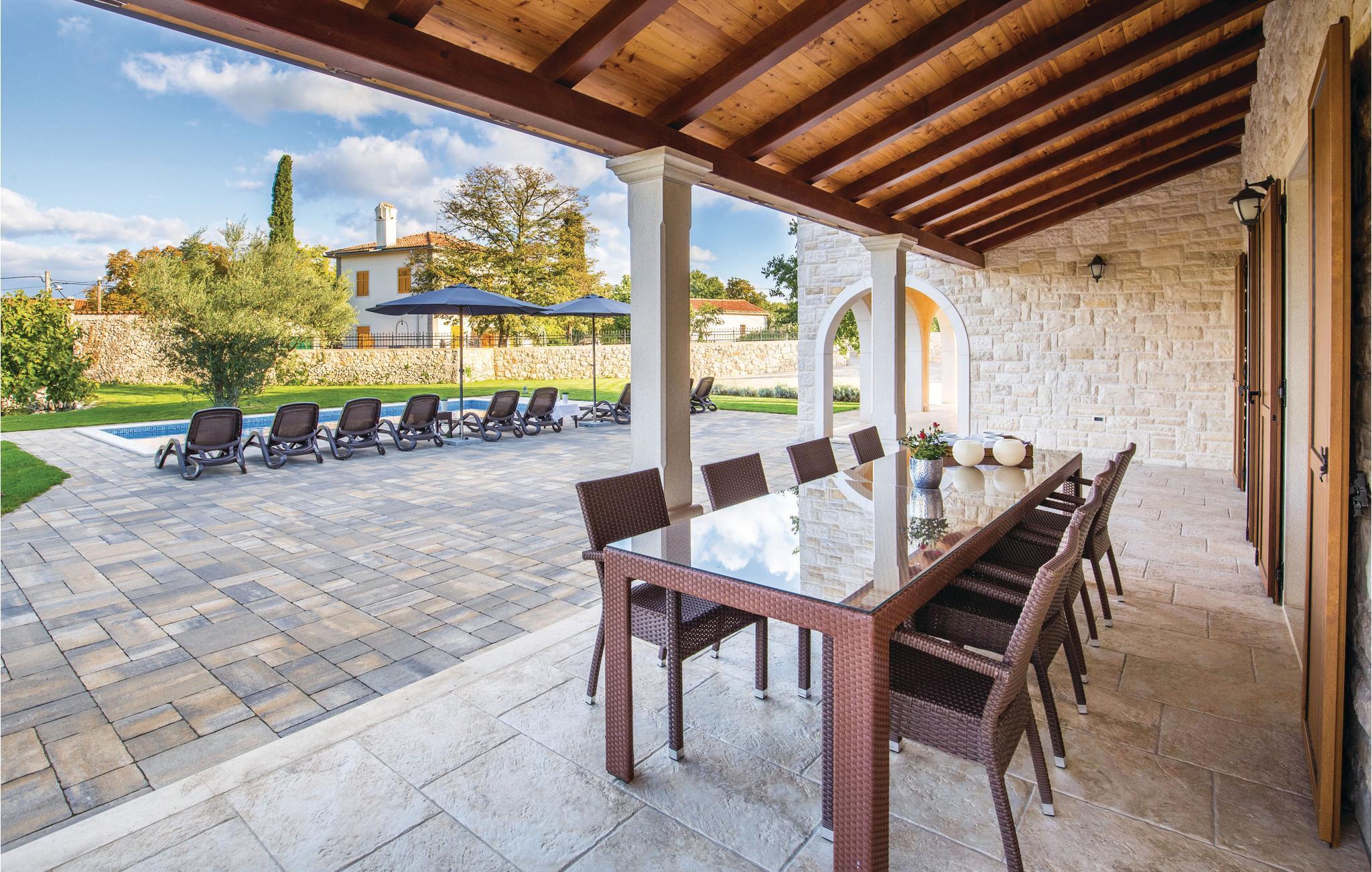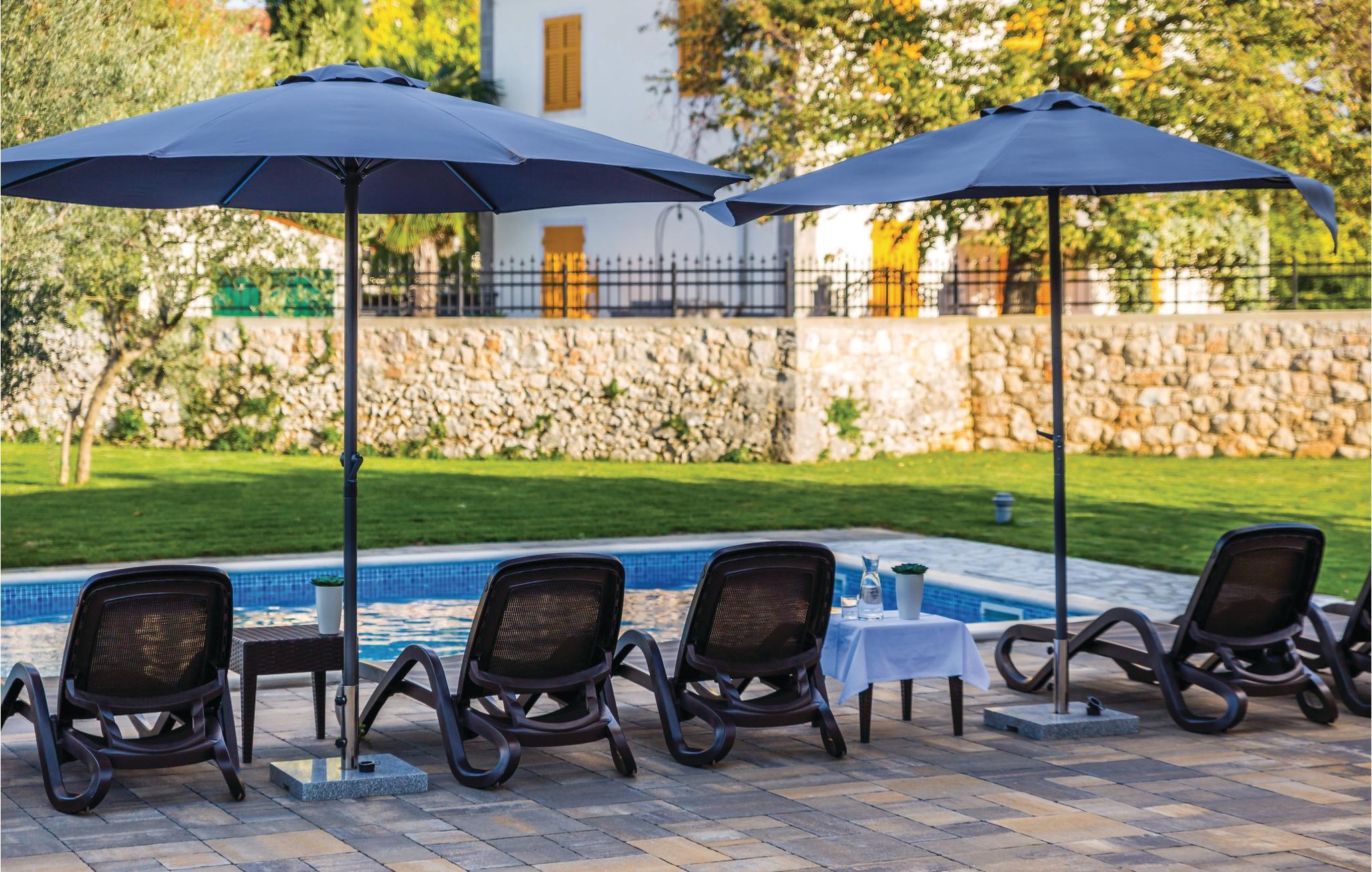 Dette hus ligger i en stor indhegnet have i Turcic, ti minutters gang fra havet og stranden. Huset er perfekt til familieferie. Det er en del af et kompleks med i alt fire villaer, som indbyder til en ferie med al mulig komfort. Til hvert hus hører en swimmingpool, en indhegnet have og en unik indretning. Soveværelserne er rummelige, med badeværelse en suite. I stueplan ligger det store opholdsrum og et køkken med spiseafdeling, hvorfra I kommer ud på den store overdækkede terrasse, hvor I også kan sidde og spise. I haven ligger poolen, som I vil være glade for, når det er rigtig varmt. Fra huset kommer I nemt til de berømte turistbyer på øen, f.eks. Malinska, Krk og Baska, hvor der er meget at opleve og mange forskellige restauranter.