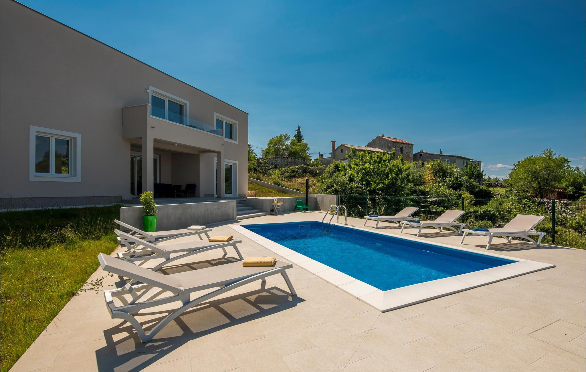 Denne smukke villa ligger på øen Krk, i en lille by ved navn Vrh. Det er det ideelle sted til en ferie i fredelige omgivelser med udsigt over den smukke natur. Huset tilbyder alt hvad I skal bruge til en dejlig familieferie.