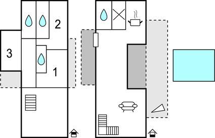 Badeværelse 6m2 (nr. 1) - WC. Varmt og koldt vand. Bruser