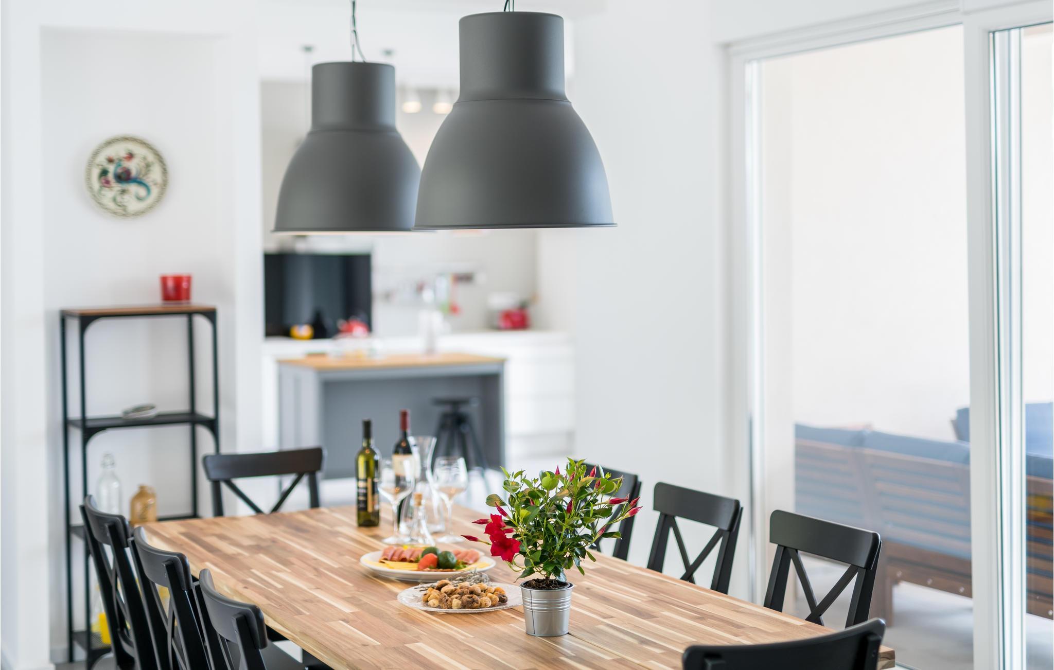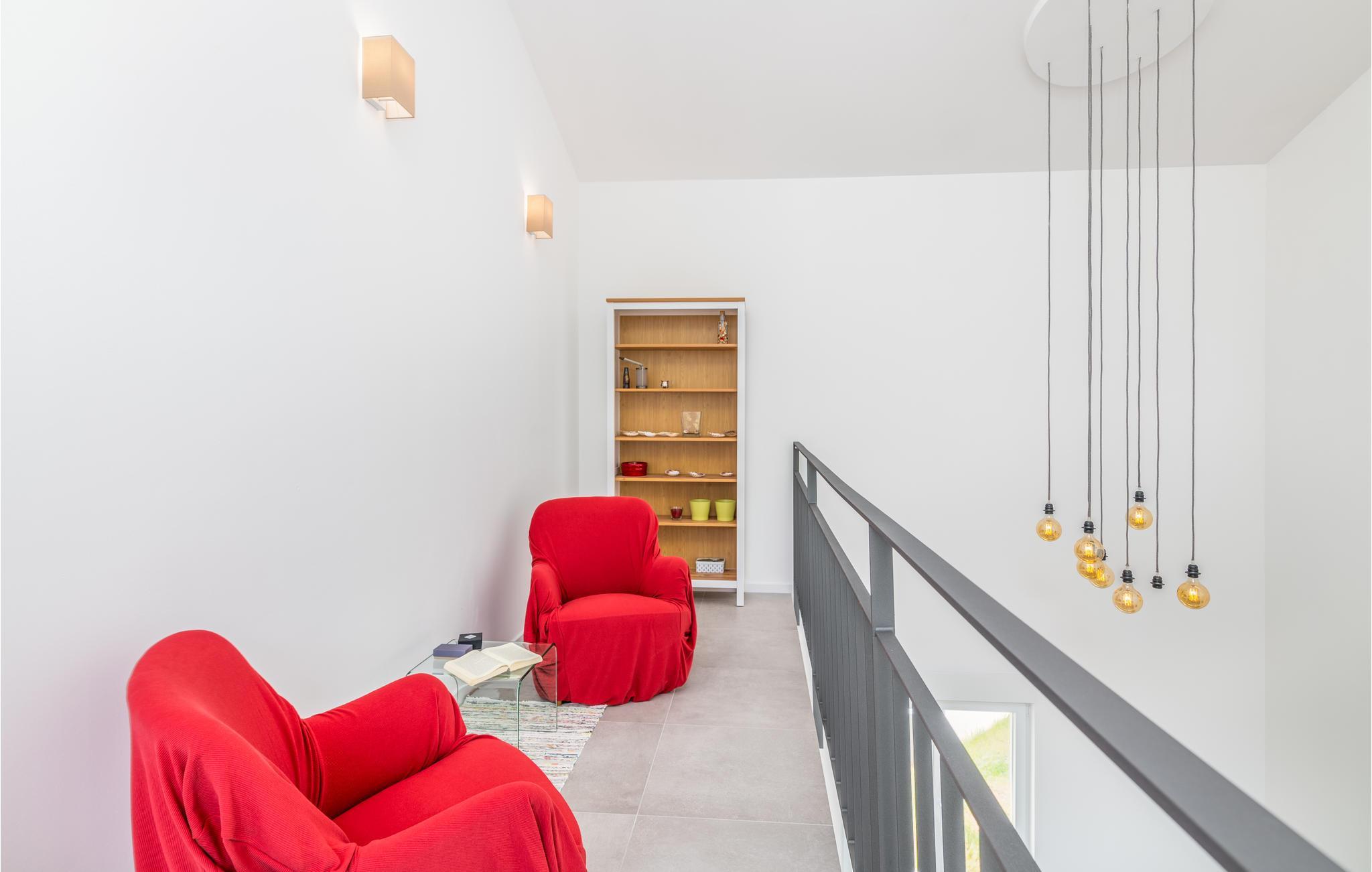 Stueetagen er en rummelig "åben plads", der består af et køkken, spisestue og stue med adgang til den overdækkede syd- og nordterrasse, hvor du kan nyde skyggen og den lette brise i løbet af dagen. Den forreste terrasse fører ud til poolen, hvor der er adgang til en stor solterrasse. Ovenpå er der et galleri med et hyggeligt hjørne til læsning og 3 soveværelser, hver med eget badeværelse. Huset har gulvvarme og har aircondition. Hvert værelse har en separat kontrol til opvarmning eller afkøling. Kombinationen af natur, traditionelle elementer og moderne arkitektur sørger for et behageligt ophold.