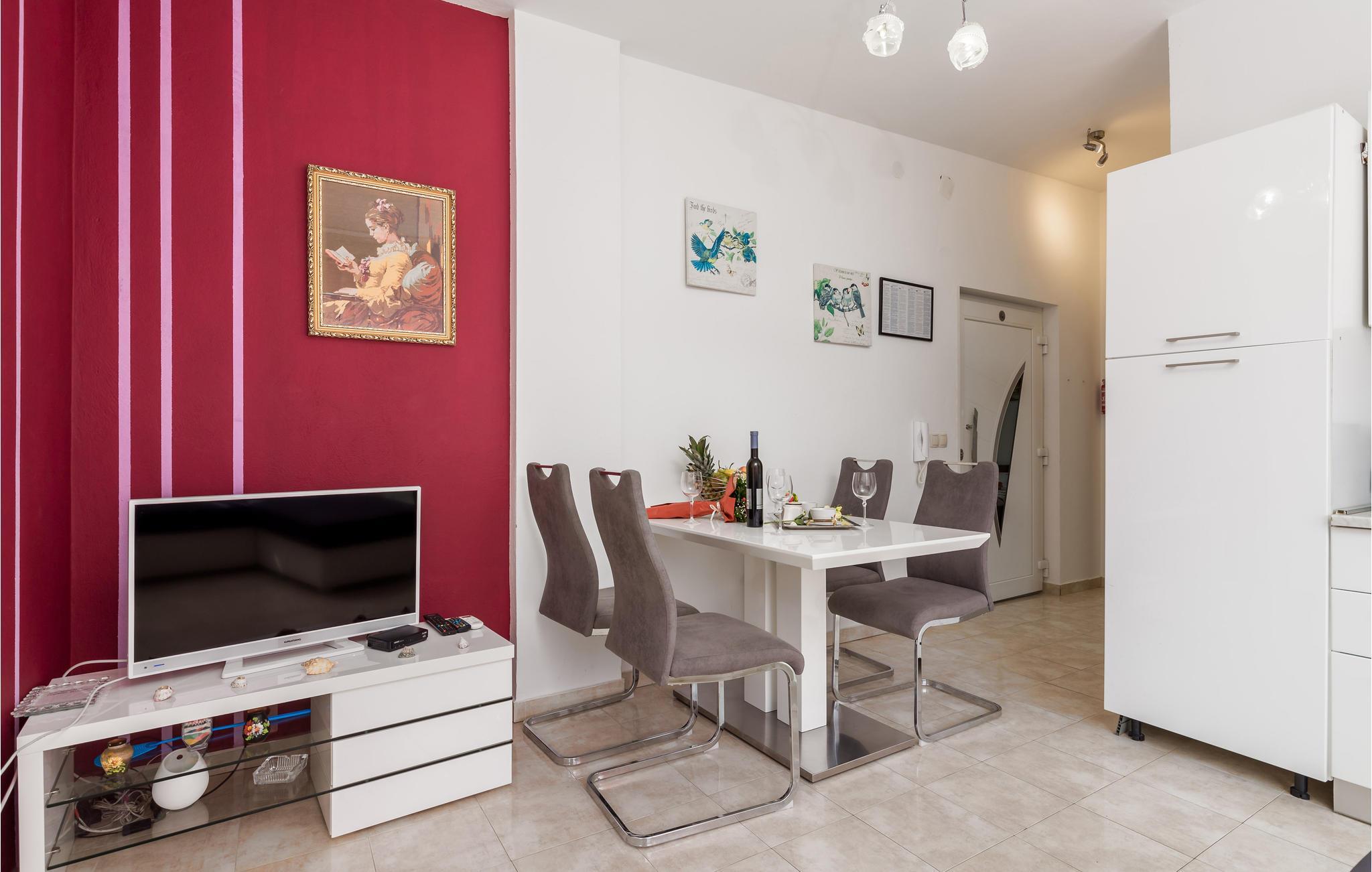 Tag på ferie i den lille kystby Vrh i nærheden af byen Krk. I sidebygningen kan I spille billard, dart og bordfodbold, der er til delt brug. Til de mindste er der en gynge, en rutsje og et legehus. Har I brug for forfriskning på de varme sommerdage, kan I tage en lille dukkert i poolen, der er tilgængelig for alle gæster. Her kan I holde en dejlig ferie og komme helt ned i gear i direkte kontakt med uberørt natur og flotte strande, som husejeren vil gør jer opmærksom på. I byen fremstilles den berømte røgede skinke fra Krk. Opdag øen Krk, en ø fuldt af kultur og historie, olivenlunde og talrige cykel- og vandrestier. Til en aktiv ferie ved havet er der mulighed for wakeboarding og en vandskilift i Punta.
