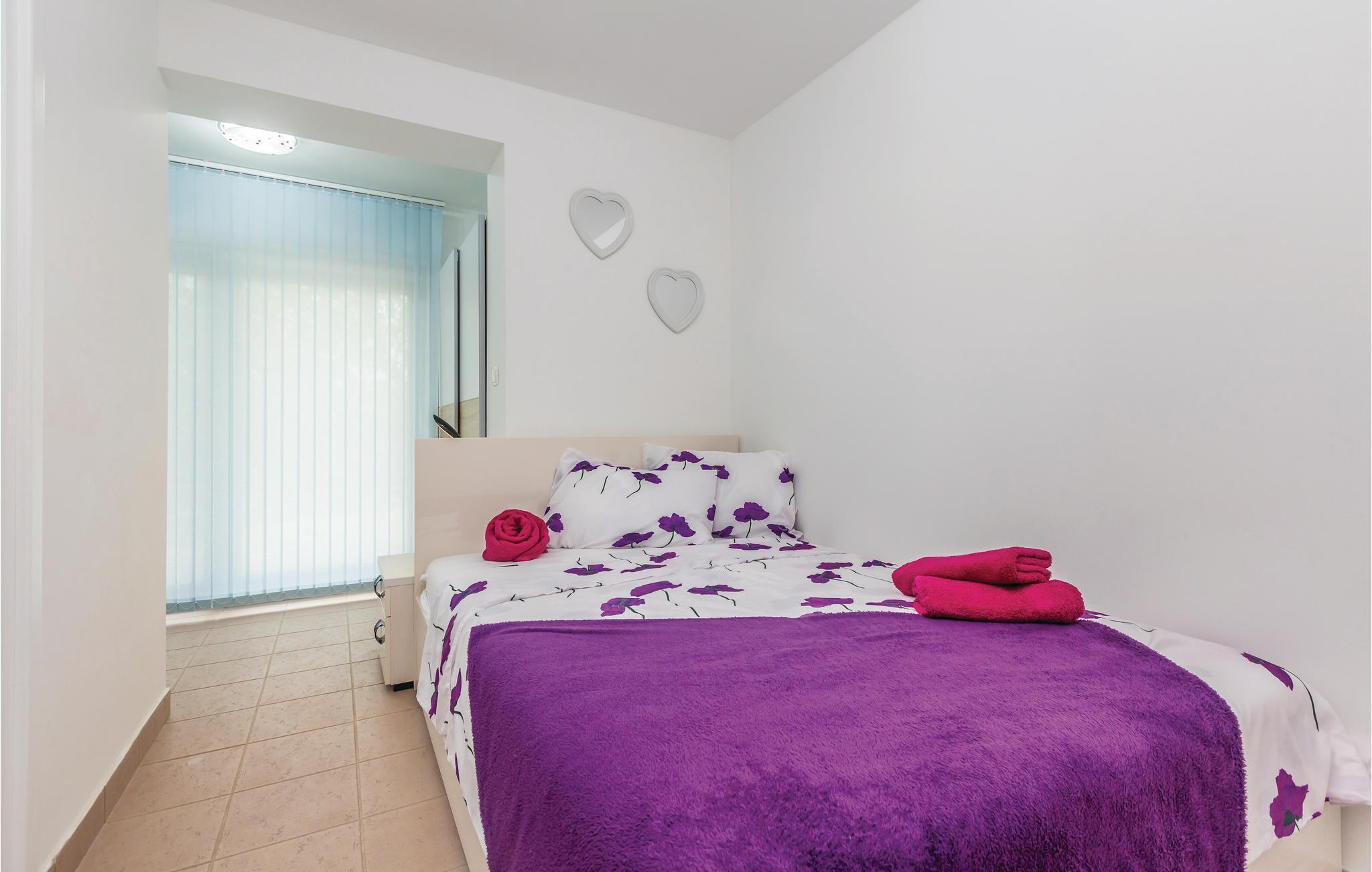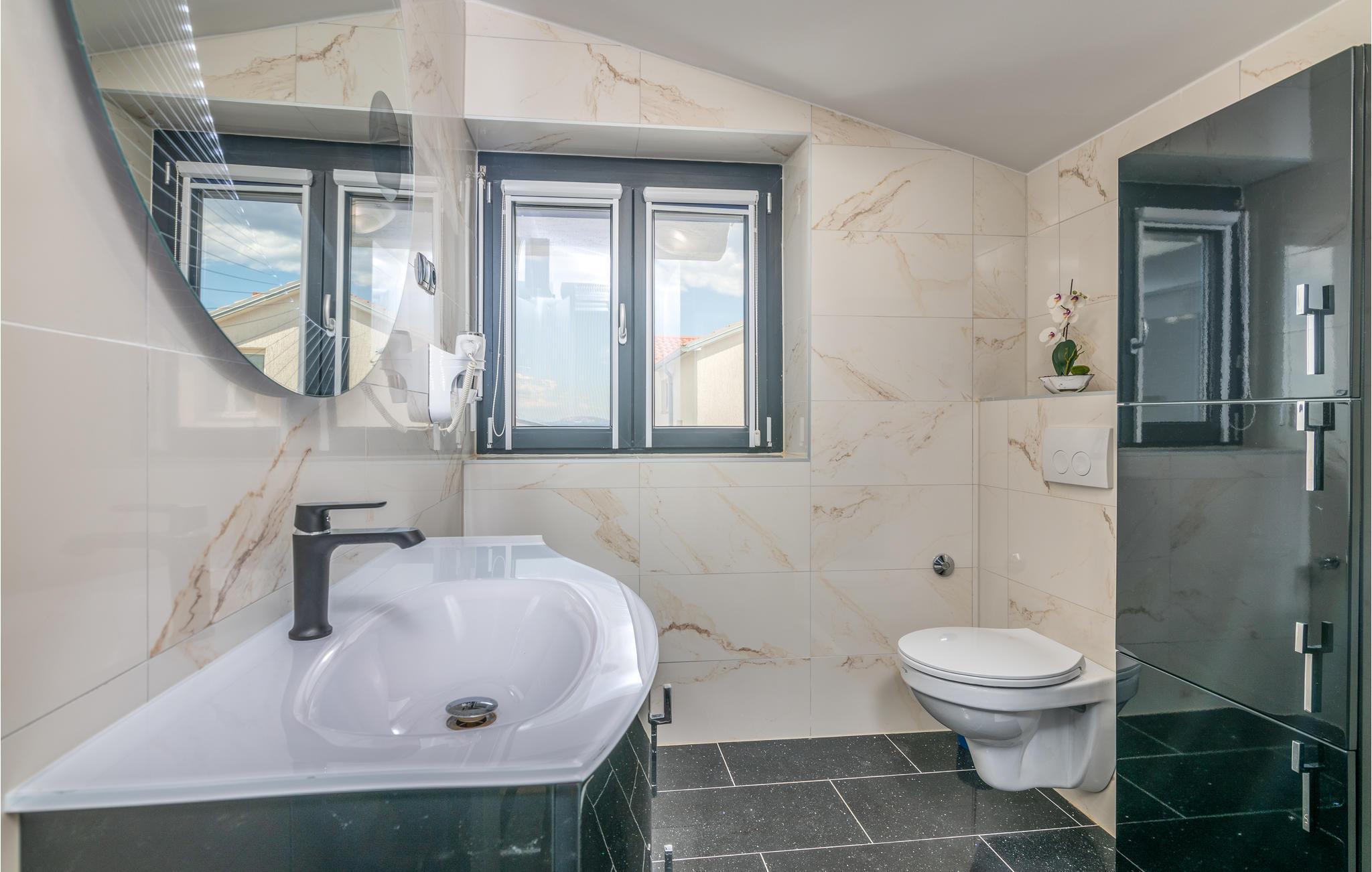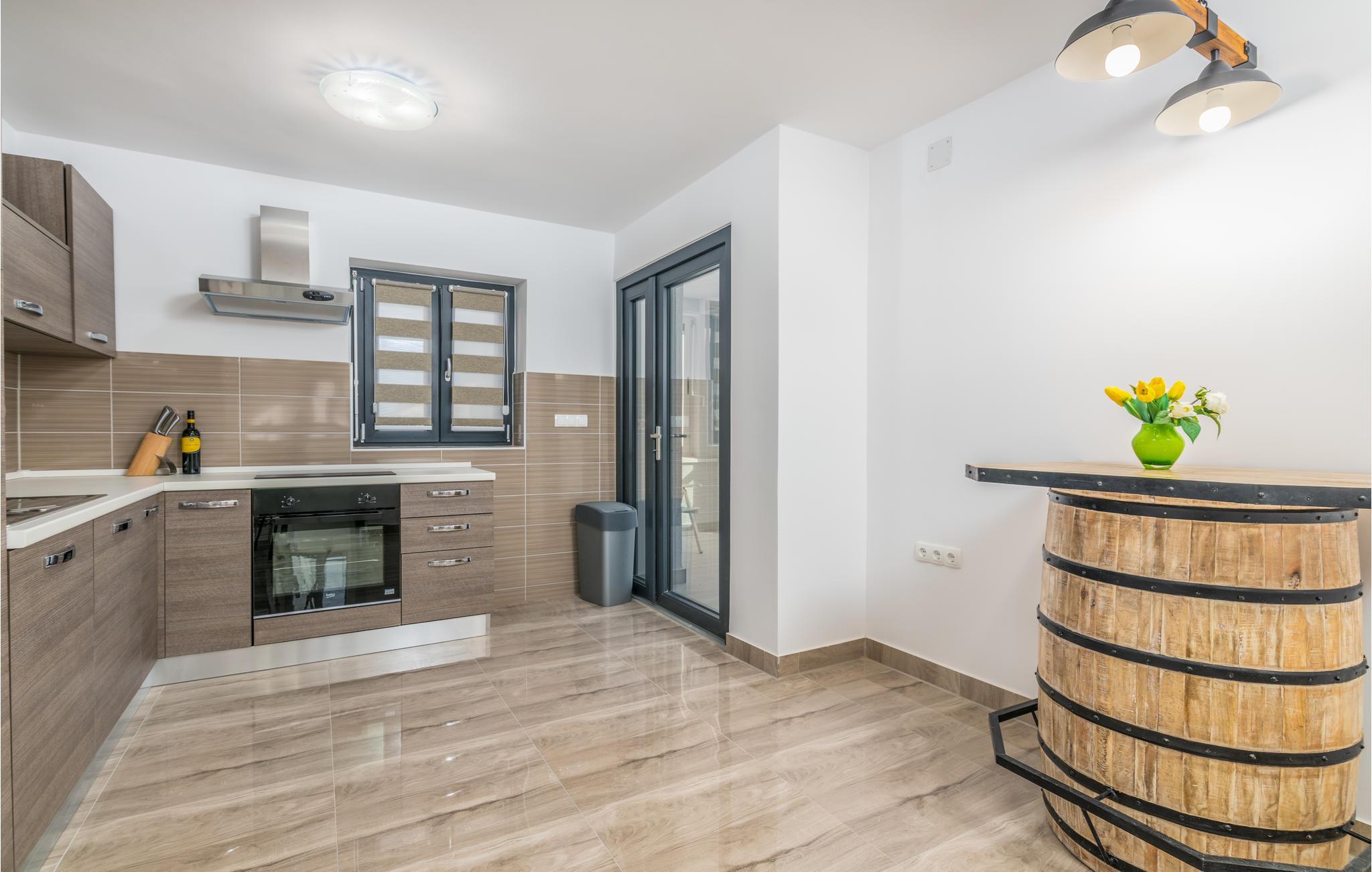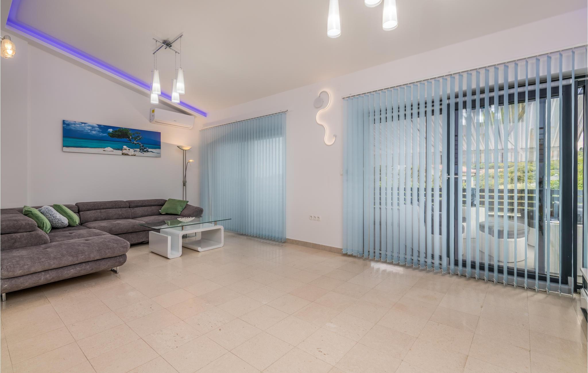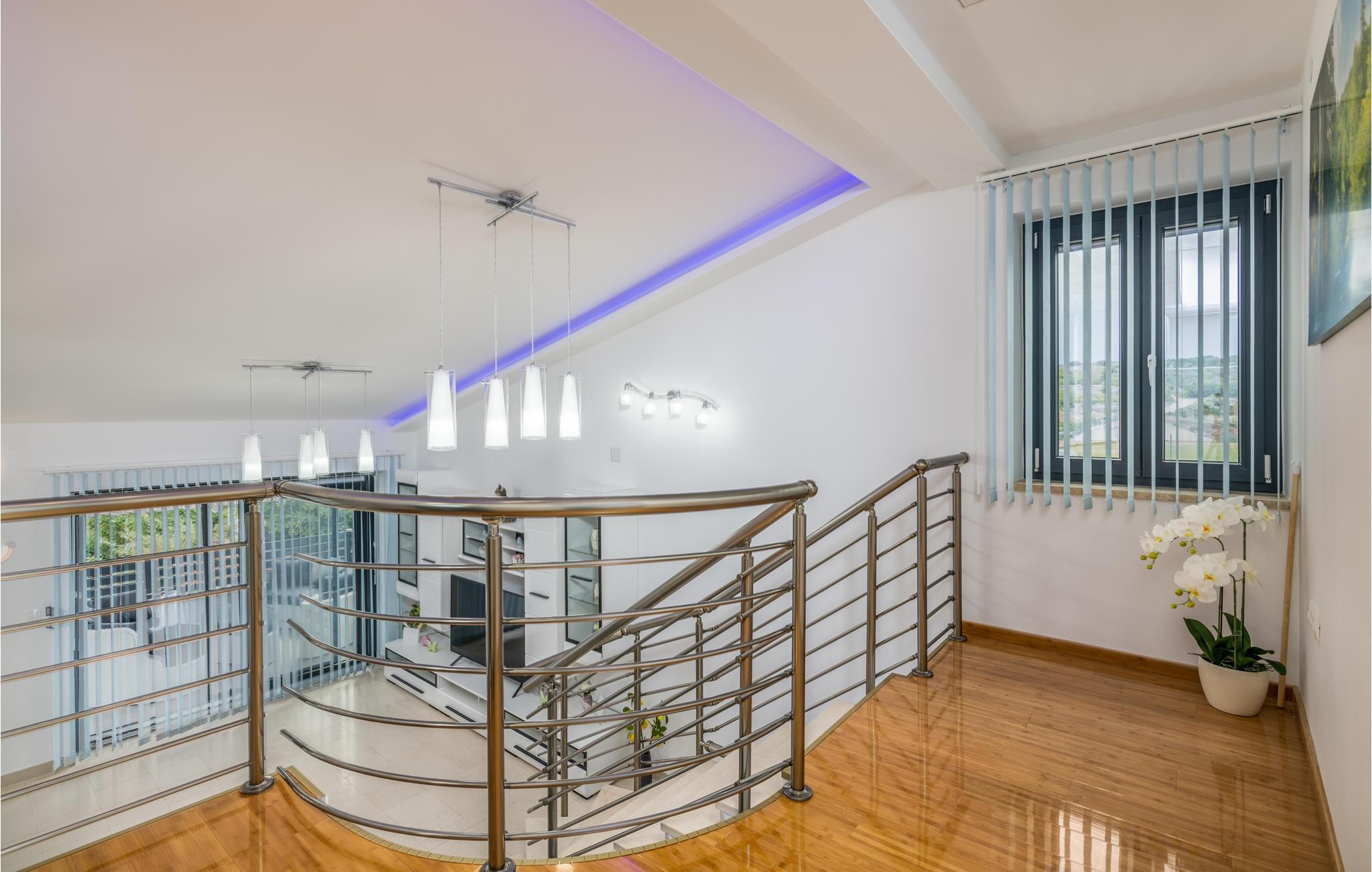 Pragtfuldt feriehus på tre etager, i et roligt boligområde i byen Krk. Rummene fordeler sig med soveværelse i stueplan og på øverste etage, mens den rummelige stue og køkkenet ligger på første sal. I haven kan I glæde jer til en tur i poolen, tage solbad og lave mad i det lille udendørs køkken med stor grill. Dartskive, brusebad og et toilet er med til at gøre udendørslivet endnu bedre. Grunden er indhegnet og ugenert. Byen Krk er øens største med interessant historie, gode restauranter og alle former for butikker.