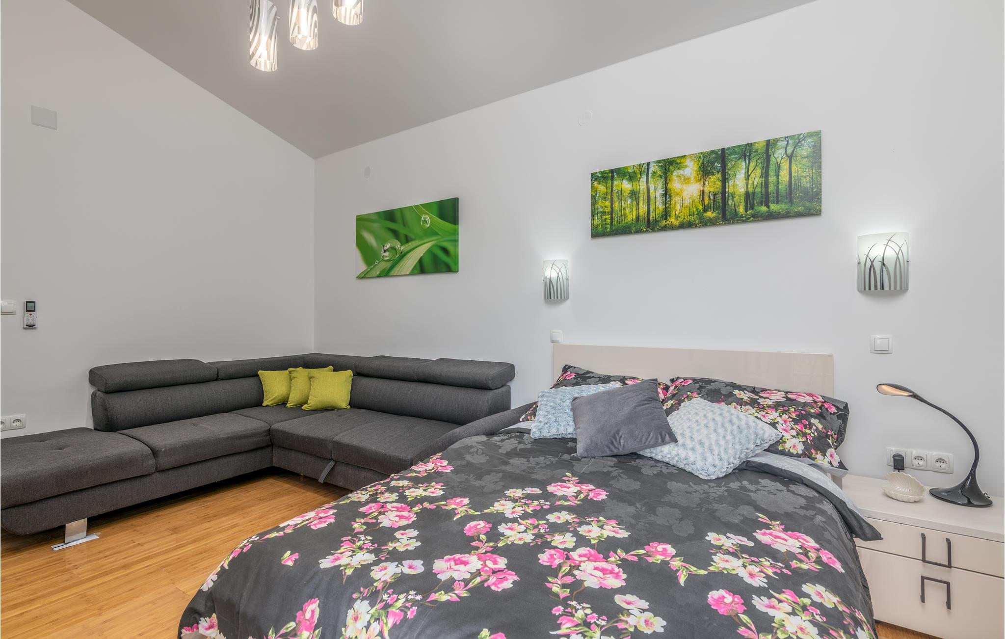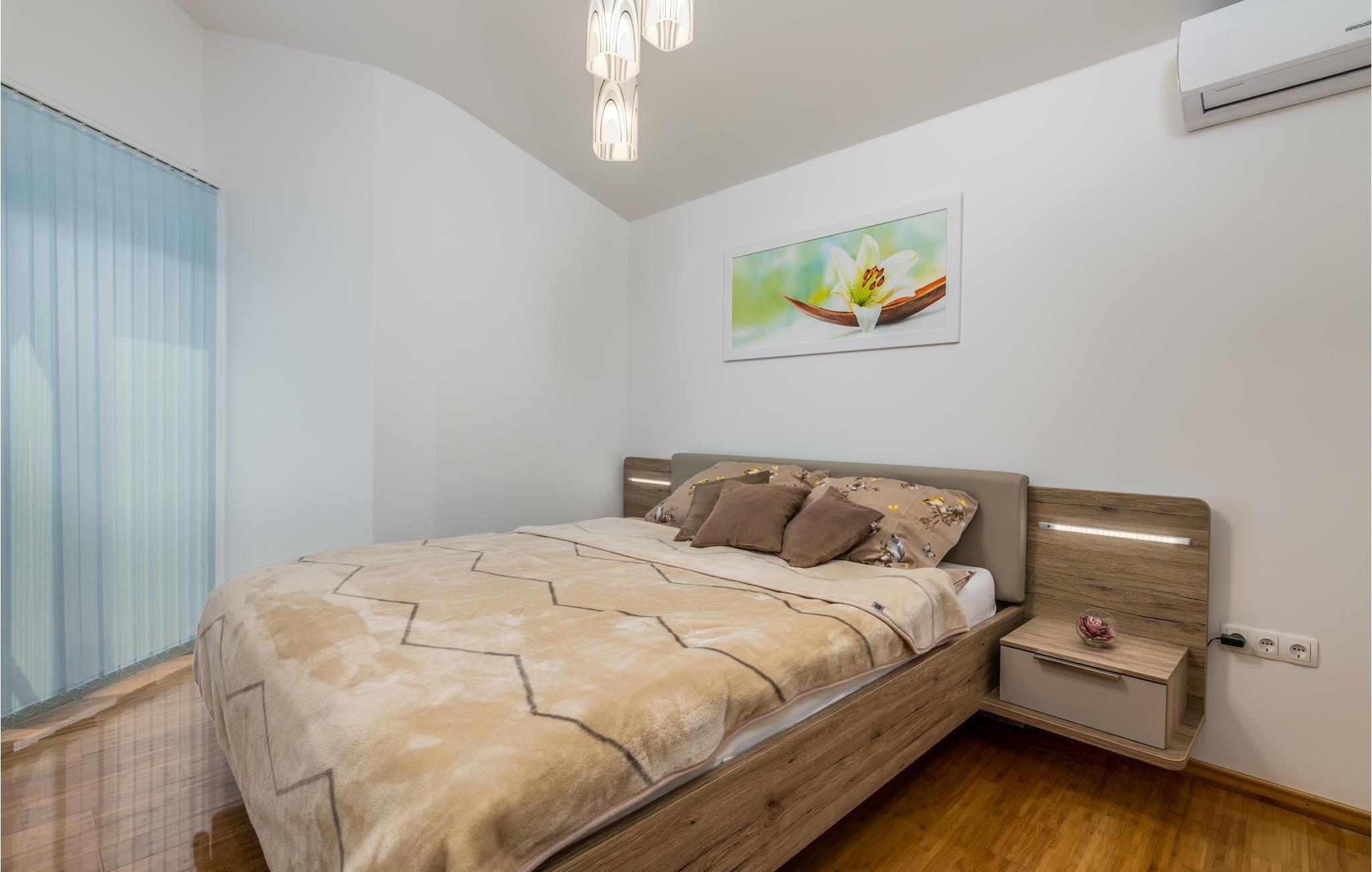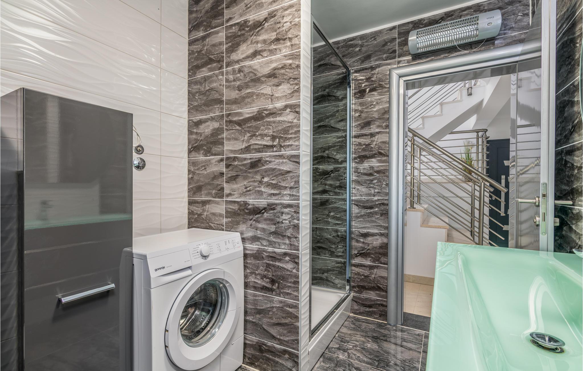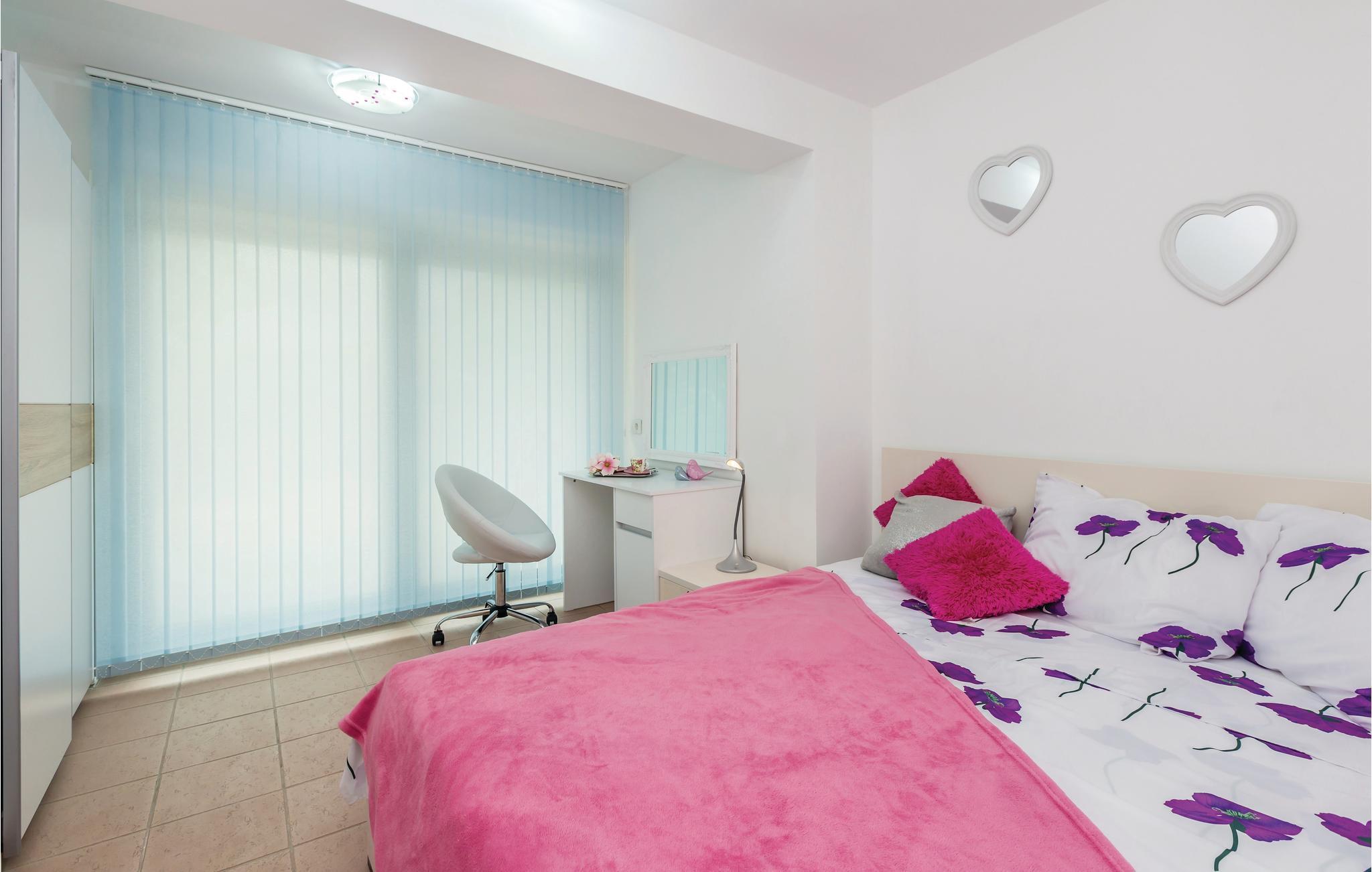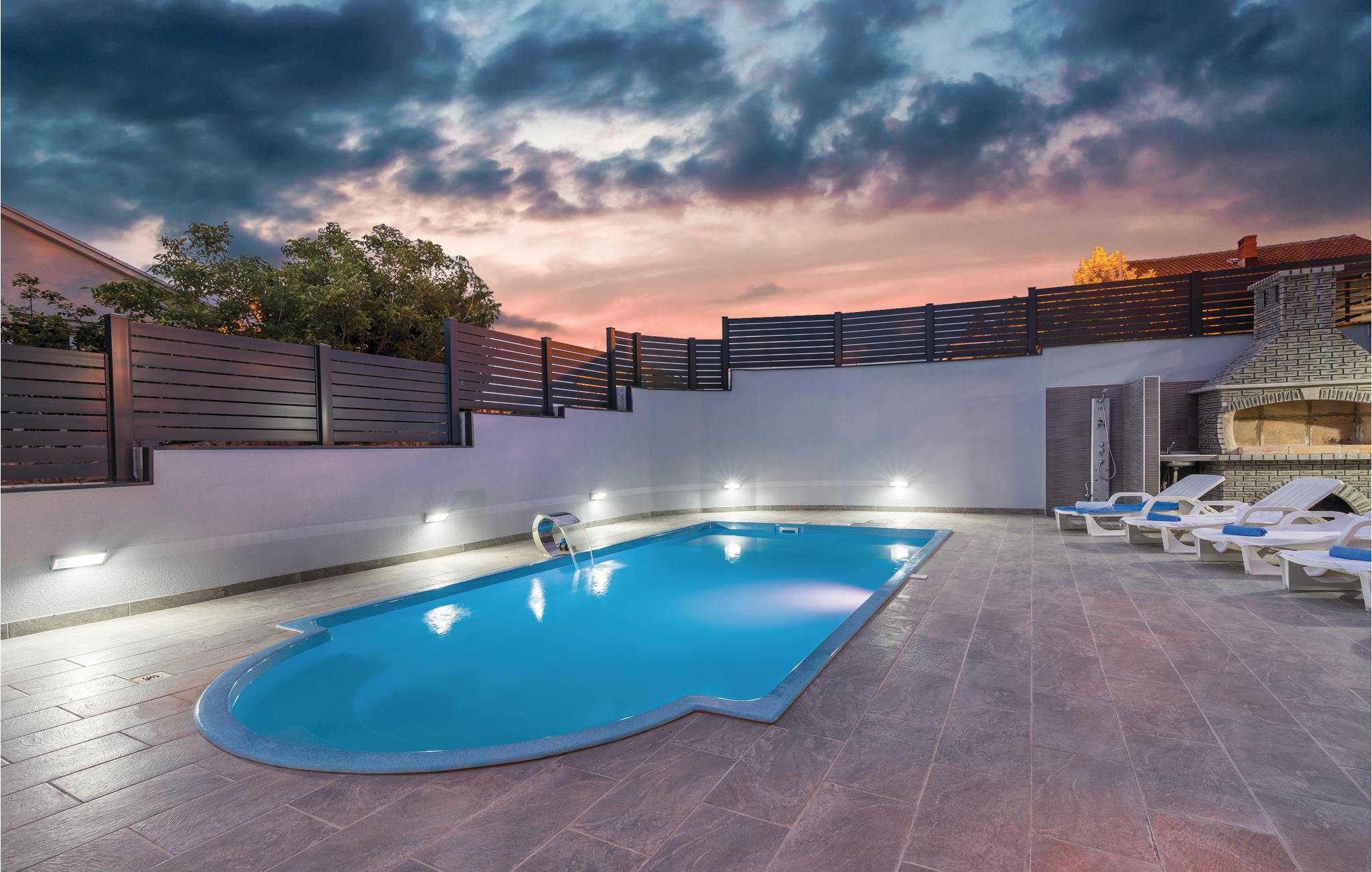 Pragtfuldt feriehus på tre etager, i et roligt boligområde i byen Krk. Rummene fordeler sig med soveværelse i stueplan og på øverste etage, mens den rummelige stue og køkkenet ligger på første sal. I haven kan I glæde jer til en tur i poolen, tage solbad og lave mad i det lille udendørs køkken med stor grill. Dartskive, brusebad og et toilet er med til at gøre udendørslivet endnu bedre. Grunden er indhegnet og ugenert. Byen Krk er øens største med interessant historie, gode restauranter og alle former for butikker.