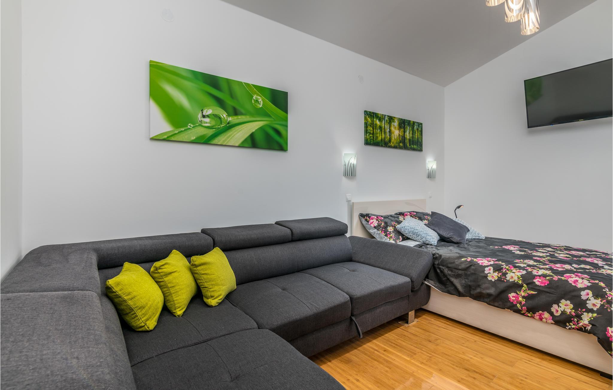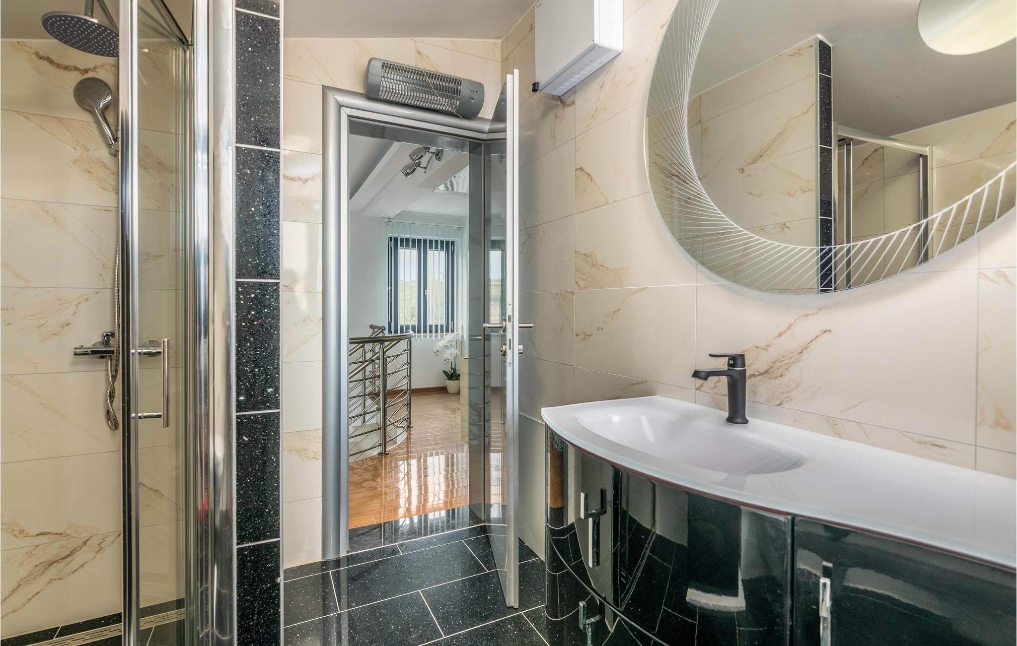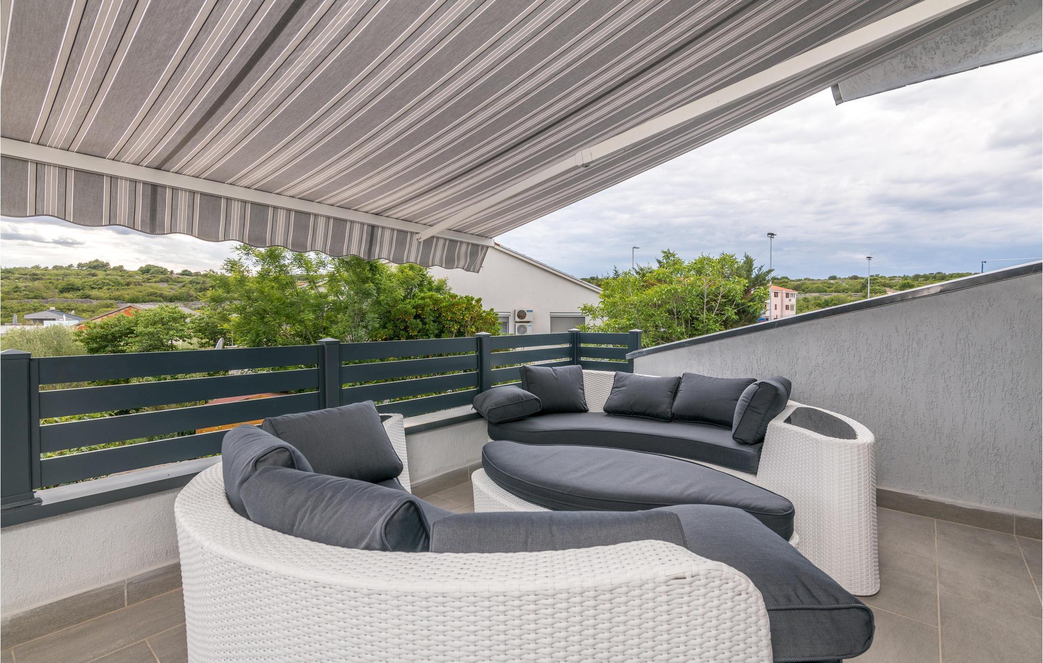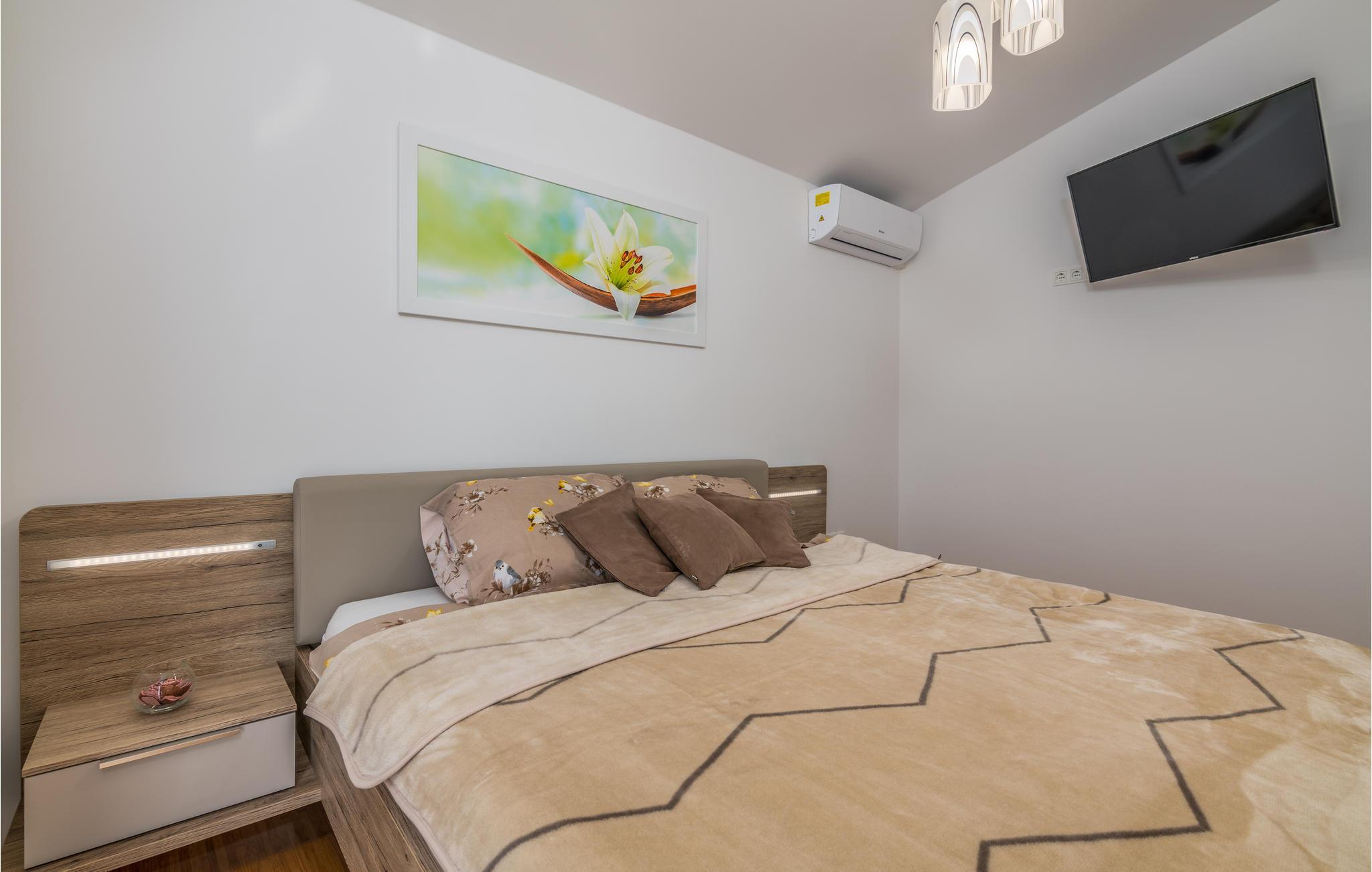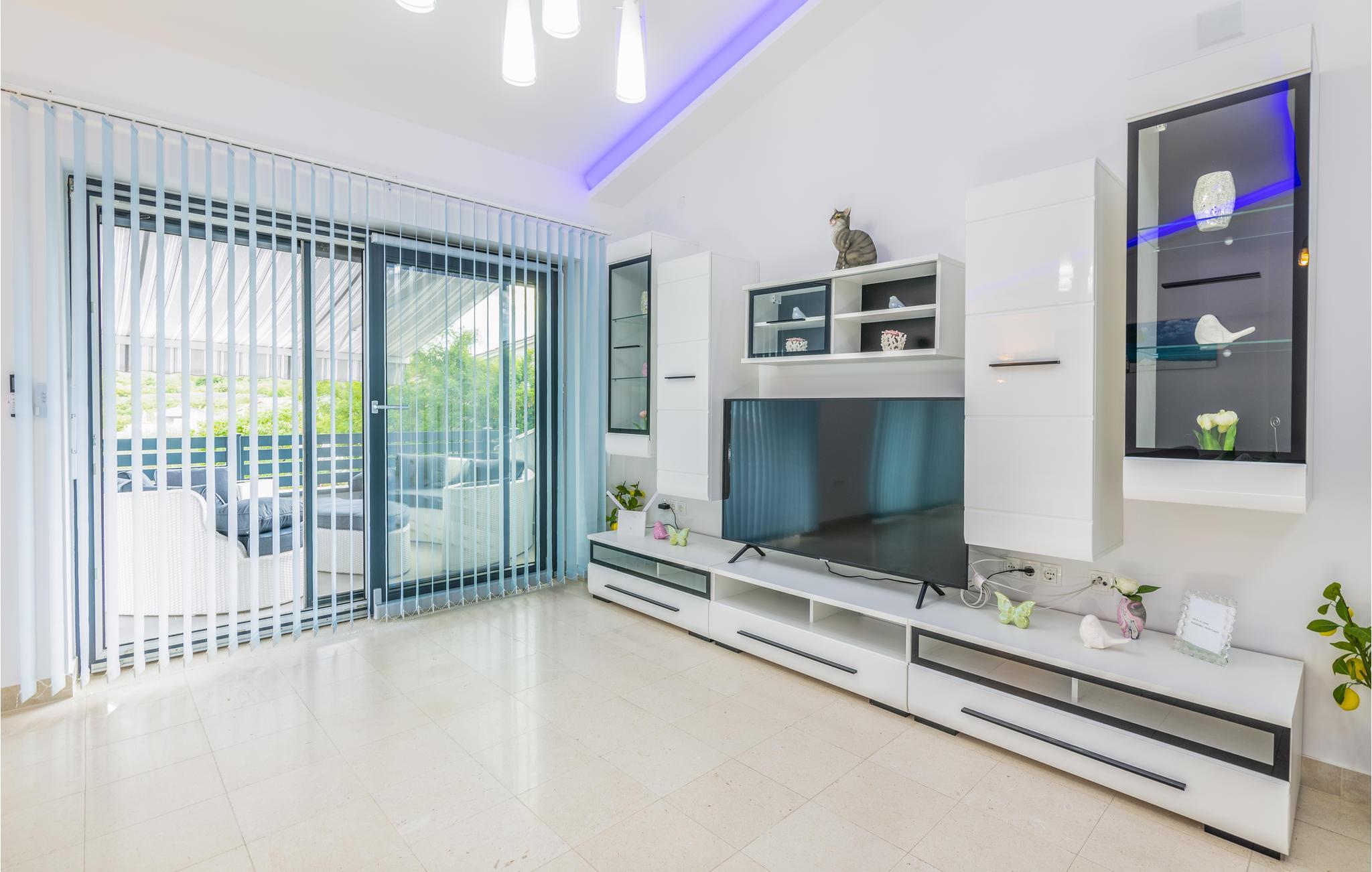 Pragtfuldt feriehus på tre etager, i et roligt boligområde i byen Krk. Rummene fordeler sig med soveværelse i stueplan og på øverste etage, mens den rummelige stue og køkkenet ligger på første sal. I haven kan I glæde jer til en tur i poolen, tage solbad og lave mad i det lille udendørs køkken med stor grill. Dartskive, brusebad og et toilet er med til at gøre udendørslivet endnu bedre. Grunden er indhegnet og ugenert. Byen Krk er øens største med interessant historie, gode restauranter og alle former for butikker.