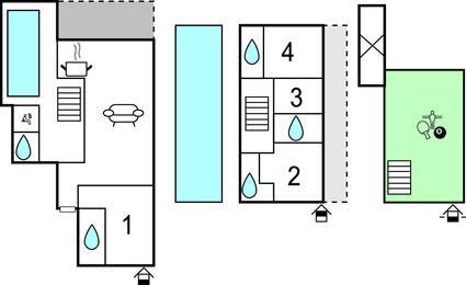Badeværelse 5m2 (nr. 1) - WC. Varmt og koldt vand. Bruser