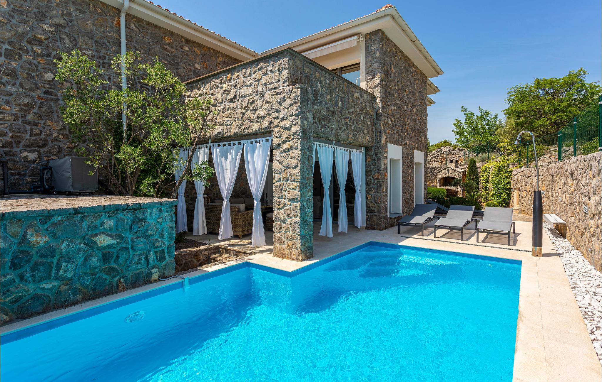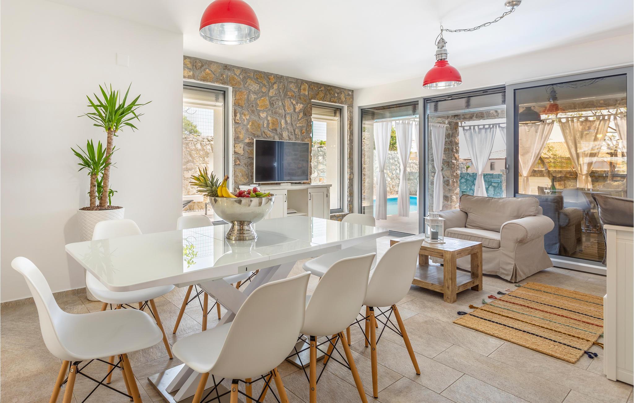 Tilbring en fortryllende ferie i dette skønne feriehus med pool og mange andre bekvemmeligheder. Huset er fremragende udstyret og tilbyder jer et ubekymret kvalitetsophold i en rolig beliggenhed. Nyd skønne timer i og omkring den opvarmede udendørs pool, på den overdækkede terrasse eller på den store altan, hvorfra I har en fantastisk udsigt over havet. Alle vil hurtigt finde deres yndlingssted her. Især om aftenen vil I blive overrasket over solnedgangens storslåede farver. På få minutter kan I gå til vandet og tilbringe hyggelige timer under solen. For en forfriskning kan I hoppe ud i det krystalklare vand, hvor I kan snorkle eller svømme et par omgange.