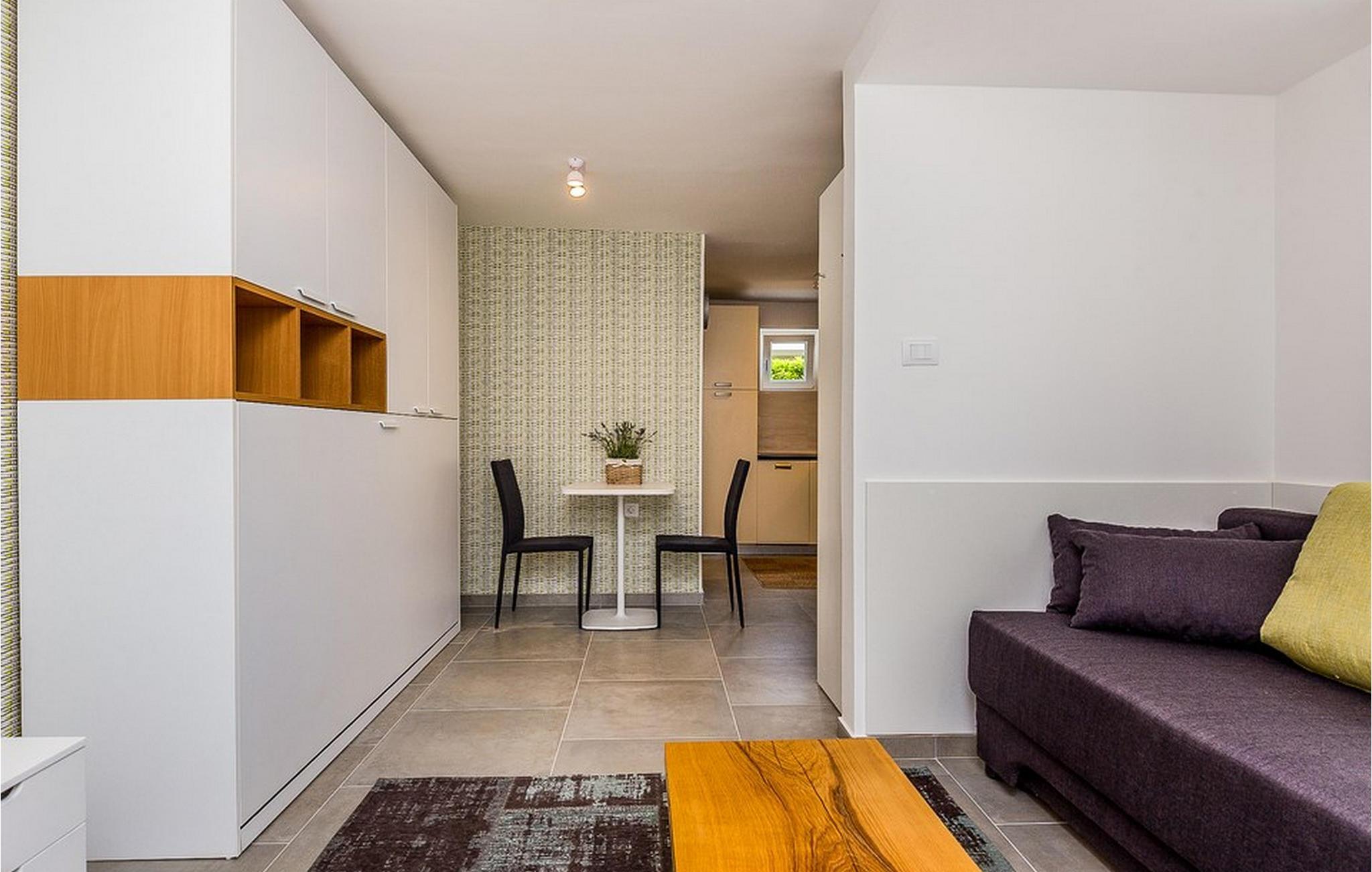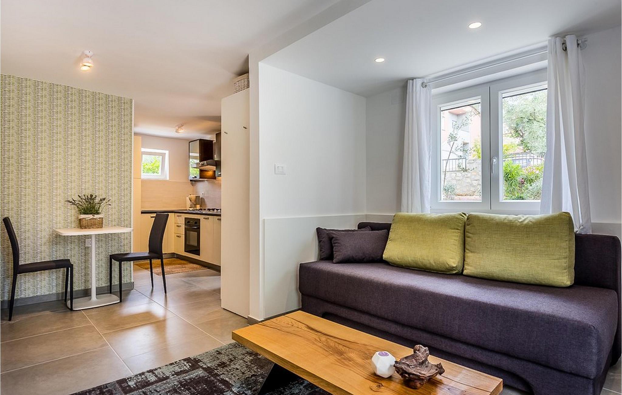 Die Lebensmittelgeschäfte, Bäckerei und Restaurants befinden sich in kurzer Gehweite. Die Insel Krk ist die nördlichste Insel in Kroatien. Sie befindet sich in der Bucht Kvarner und wird als eine der organisiertesten und attraktivsten Ziele an der Adria anerkannt. Gute Verbindungen mit dem Innenraum, gute Touristenstrukturen, verschiedene Küstenlinien voll kleiner Buchten mit Blick über das kristallklare Meer und wunderschöne Natur, eine Vielzahl an Möglichkeiten zum Vergnügen und zur Entspannung sind der Grund warum Krk eines der interessantesten Touristenziele ist. Krk ist eine besondere Insel, eine Welt in sich selbst, einzigartig in Ruhe und Reinheit, die leicht zu erreichen ist, wegen der Verbindung mit dem Festland über die Brücke Krk und verfügt über einen eigenen Flughafen, etwa 30 km von Rijeka entfernt.