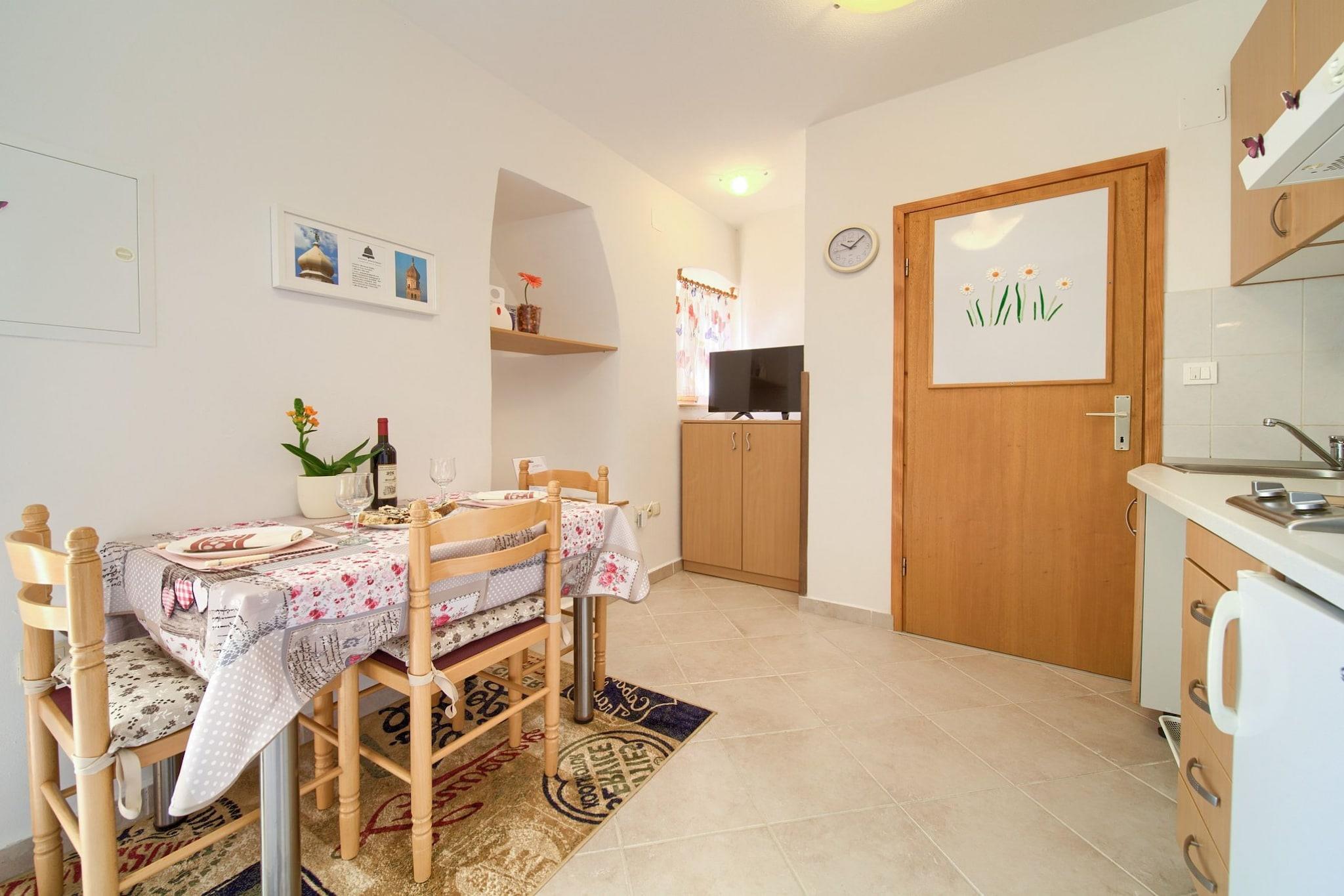 The Chic and Charming Krk Downtown Apartments in Krk, located in Primorje-Gorski Kotar County, Croatia, offer an excellent stay in a convenient and picturesque setting. These apartments are well-regarded for their modern design, cozy ambiance, and central location, allowing easy access to the historic old town, local beaches, and various restaurants. Amenities often include air conditioning, fully equipped kitchens, free Wi-Fi, and private parking. Some apartments feature terraces or balconies with lovely views, while others provide direct proximity to the waterfront and cultural landmarks. This makes them ideal for travelers looking for comfort, accessibility, and a stylish atmosphere. Note: Pets are allowed with notice. Private parking, reservation is not required. Wi-Fi is available throughout the property. Baby cot is available on request. This Standard Studio Apartment can accommodate up to two guests. It features a Cable TV .The private bathroom is equipped with a shower and toilet. Thanks to its excellent location, everything you'll need for your vacation is just a short walk away from the property. cafes-150.00 m, restaurants—100 m radius. The beach is 250 m away from the property. The airport is 25 km away from the property.