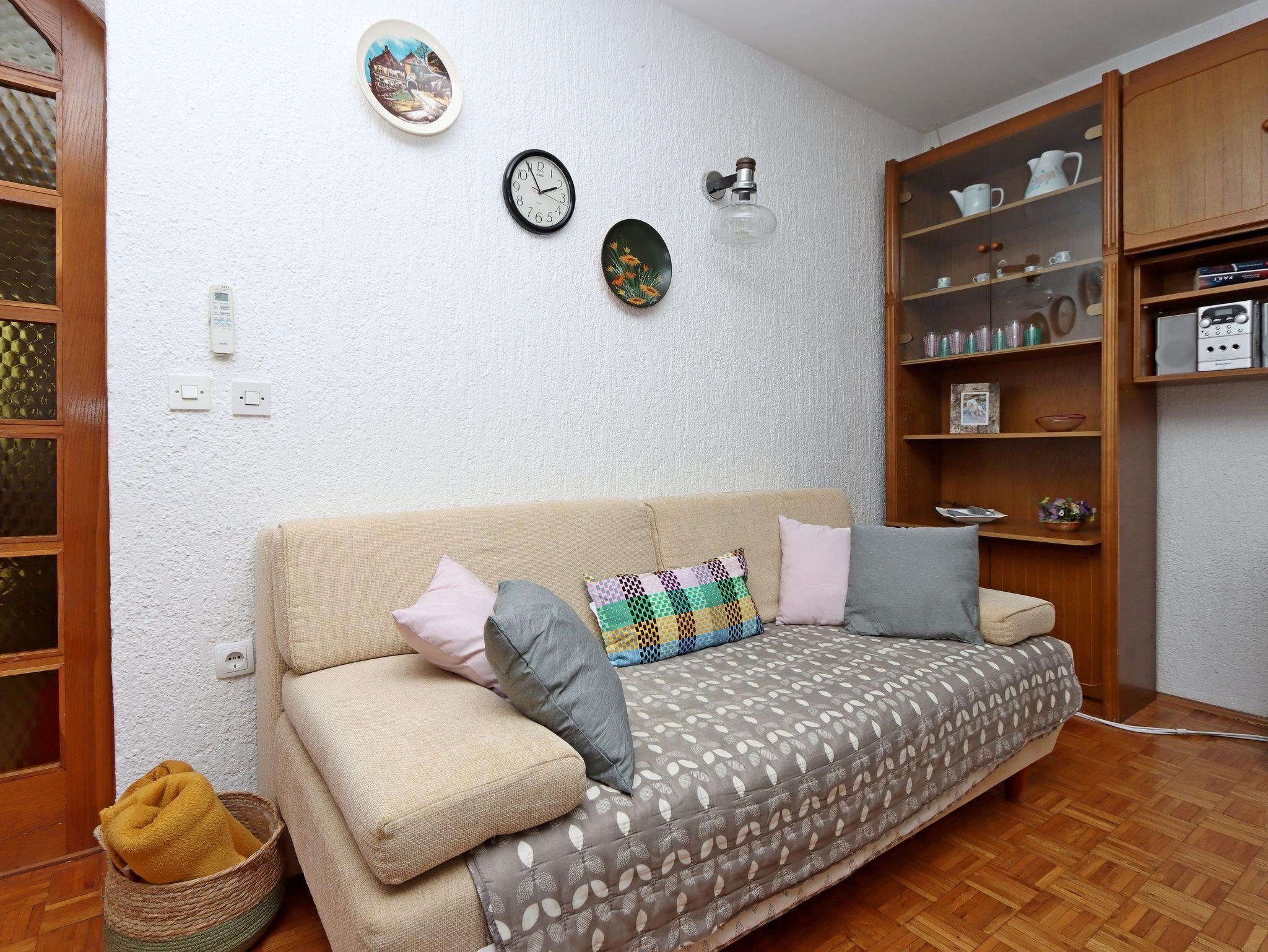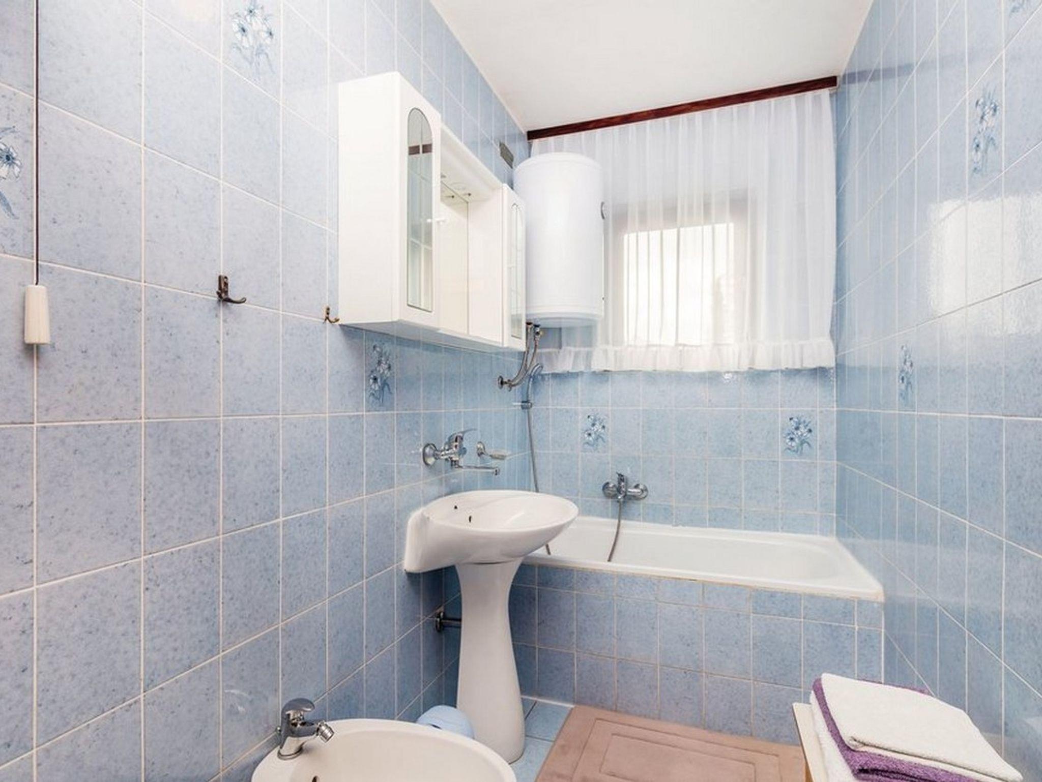 Ferienwohnung bietet Platz für 10 Gäste. Die Betten sind in Schlafzimmern, die es 5 gibt, innerhalb einer Gesamtfläche von 114m2, angeordnet. Die Gäste haben eine eigene Terrasse zur Verfügung, auf der sie in warmen Sommernächten genießen können. Das Apartment bietet Meerblick. Es ist erlaubt, Speisen auf dem Gemeinschafts-Grill vorzubereiten. IM PREIS INBEGRIFFEN: Kurtaxe, Endreinigung, Klimatisierung, Parkplatz, Internet, Kinderbett, Bügeleisen, Bügelbrett, Föhn. VERBINDLICHE ZUSÄTZLICHE KOSTEN: Aufzahlung für Kurzaufenthalte (prozentualer Zuschlag pro Nächtigungsanzahl: 30% - 1, 20% - 2, 10% - 3). UNVERBINDLICHE ZUSÄTZLICHE KOSTEN: Wäschewaschen (10,00 € Waschen). Die Verfügbarkeit zusätzlicher Dienstleistungen in Ihrem reservierten Termin und die Preise derselben (falls nicht aufgeführt) müssen im Voraus überprüft werden. Zusätzliche Dienstleistungen die in der Zahlungsaufforderung nicht aufgeführt sind werden direkt beim Vermieter bezahlt, angenommen der Gast nutzt auch diese.