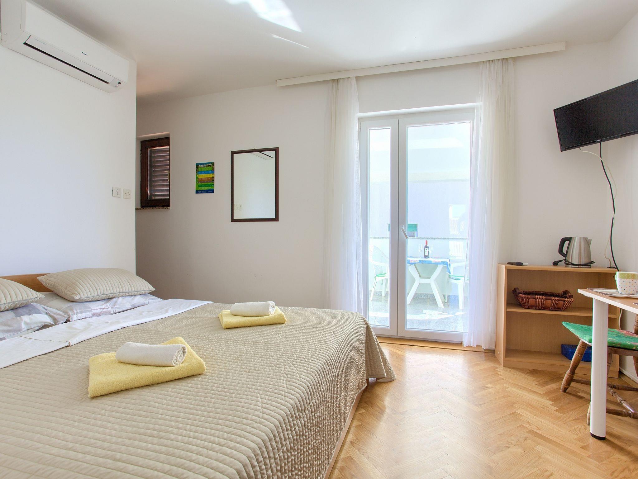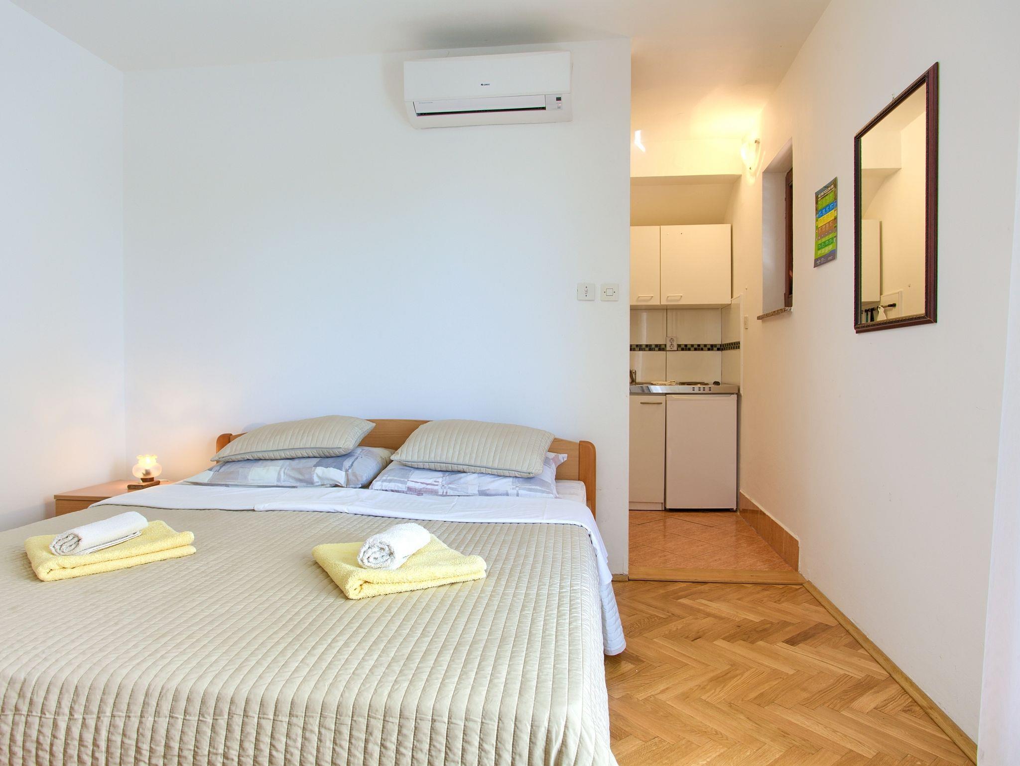 Studio bietet Platz für 2 Gäste. Die Betten sind in Schlafzimmern, die es 1 gibt, innerhalb einer Gesamtfläche von 21m2, angeordnet. Die Gäste haben eine eigene Terrasse zur Verfügung, auf der sie in warmen Sommernächten genießen können. Es ist erlaubt, Speisen auf dem Gemeinschafts-Grill vorzubereiten. In der Unterkunftseinheit besteht die Möglichkeit des Mitbringens von Haustieren gegen Aufpreis. IM PREIS INBEGRIFFEN: Kurtaxe, Endreinigung, Klimatisierung, Parkplatz, Internet. VERBINDLICHE ZUSÄTZLICHE KOSTEN: Aufzahlung für Kurzaufenthalte (prozentualer Zuschlag pro Nächtigungsanzahl: 30% - 1, 20% - 2, 10% - 3). UNVERBINDLICHE ZUSÄTZLICHE KOSTEN: Haustiere (10,00 € pro Nacht). Die Verfügbarkeit zusätzlicher Dienstleistungen in Ihrem reservierten Termin und die Preise derselben (falls nicht aufgeführt) müssen im Voraus überprüft werden. Zusätzliche Dienstleistungen die in der Zahlungsaufforderung nicht aufgeführt sind werden direkt beim Vermieter bezahlt, angenommen der Gast nutzt auch diese.