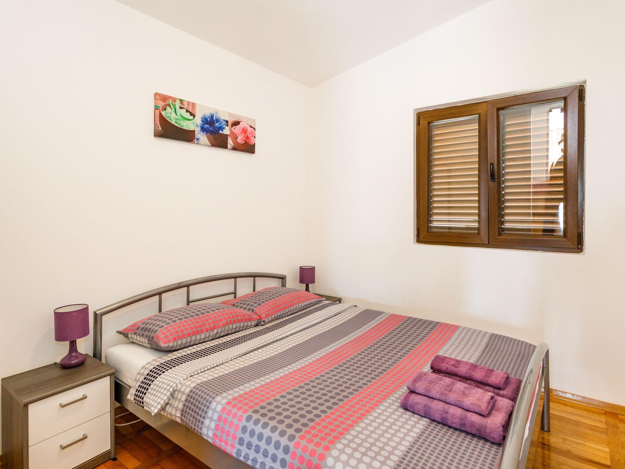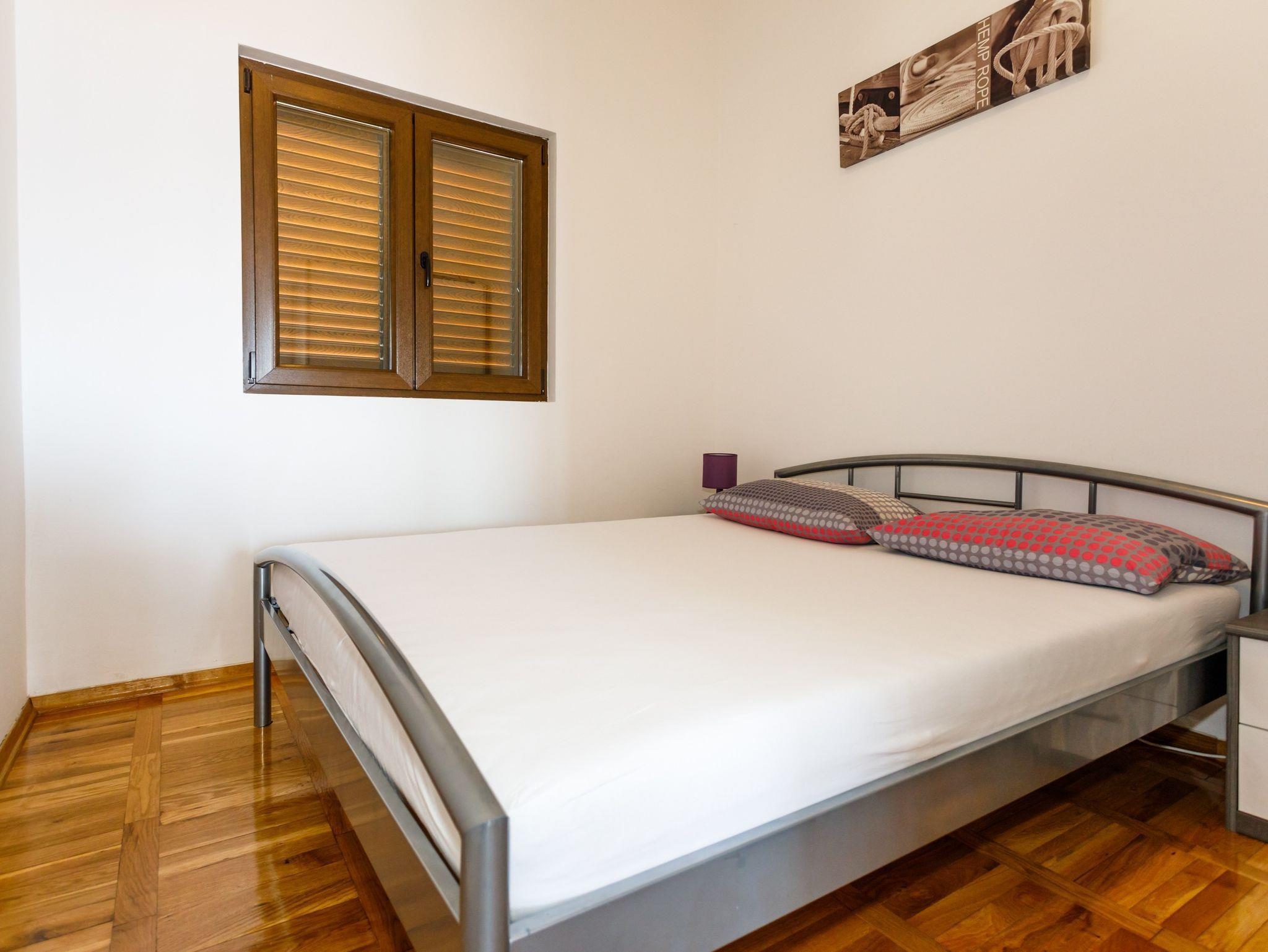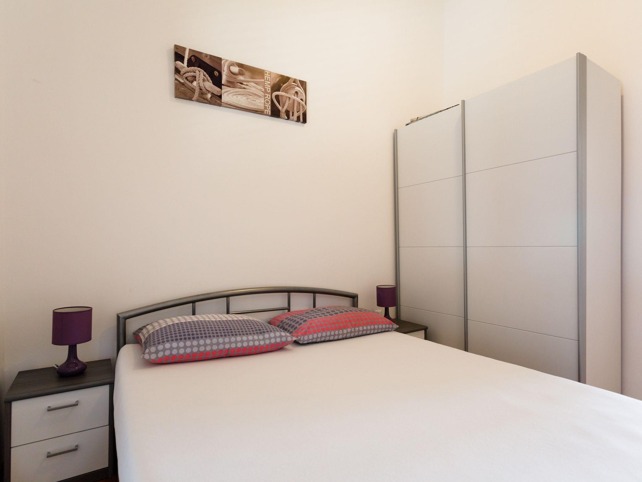 Ferienwohnung bietet Platz für 4 Gäste. Die Betten sind in Schlafzimmern, die es 2 gibt, innerhalb einer Gesamtfläche von 56m2, angeordnet. Die Gäste haben eine eigene Terrasse zur Verfügung, auf der sie in warmen Sommernächten genießen können. Das Apartment bietet Meerblick. Es ist erlaubt, Speisen auf dem Gemeinschafts-Grill vorzubereiten. IM PREIS INBEGRIFFEN: Kurtaxe, Endreinigung, Klimatisierung, Parkplatz, Internet, Kinderbett, Föhn. Die Verfügbarkeit zusätzlicher Dienstleistungen in Ihrem reservierten Termin und die Preise derselben (falls nicht aufgeführt) müssen im Voraus überprüft werden. Zusätzliche Dienstleistungen die in der Zahlungsaufforderung nicht aufgeführt sind werden direkt beim Vermieter bezahlt, angenommen der Gast nutzt auch diese. Ermäßigung auf den Grundpreis: Gratistag 14=13 (bei einem Aufenthalt von 14 Tagen oder mehr erhalten Sie einen Gratistag für den Aufenthalt bis 31.12.26).