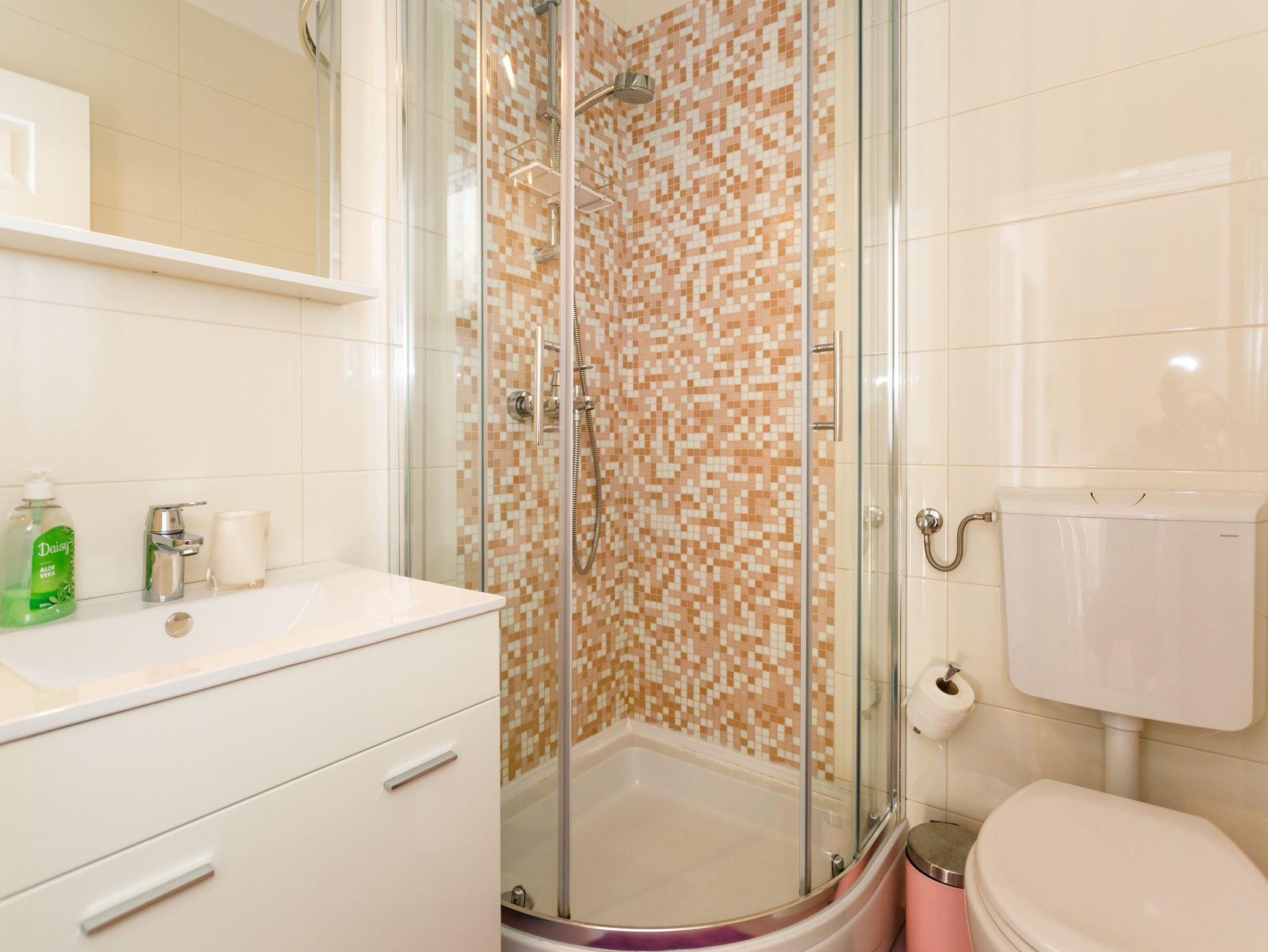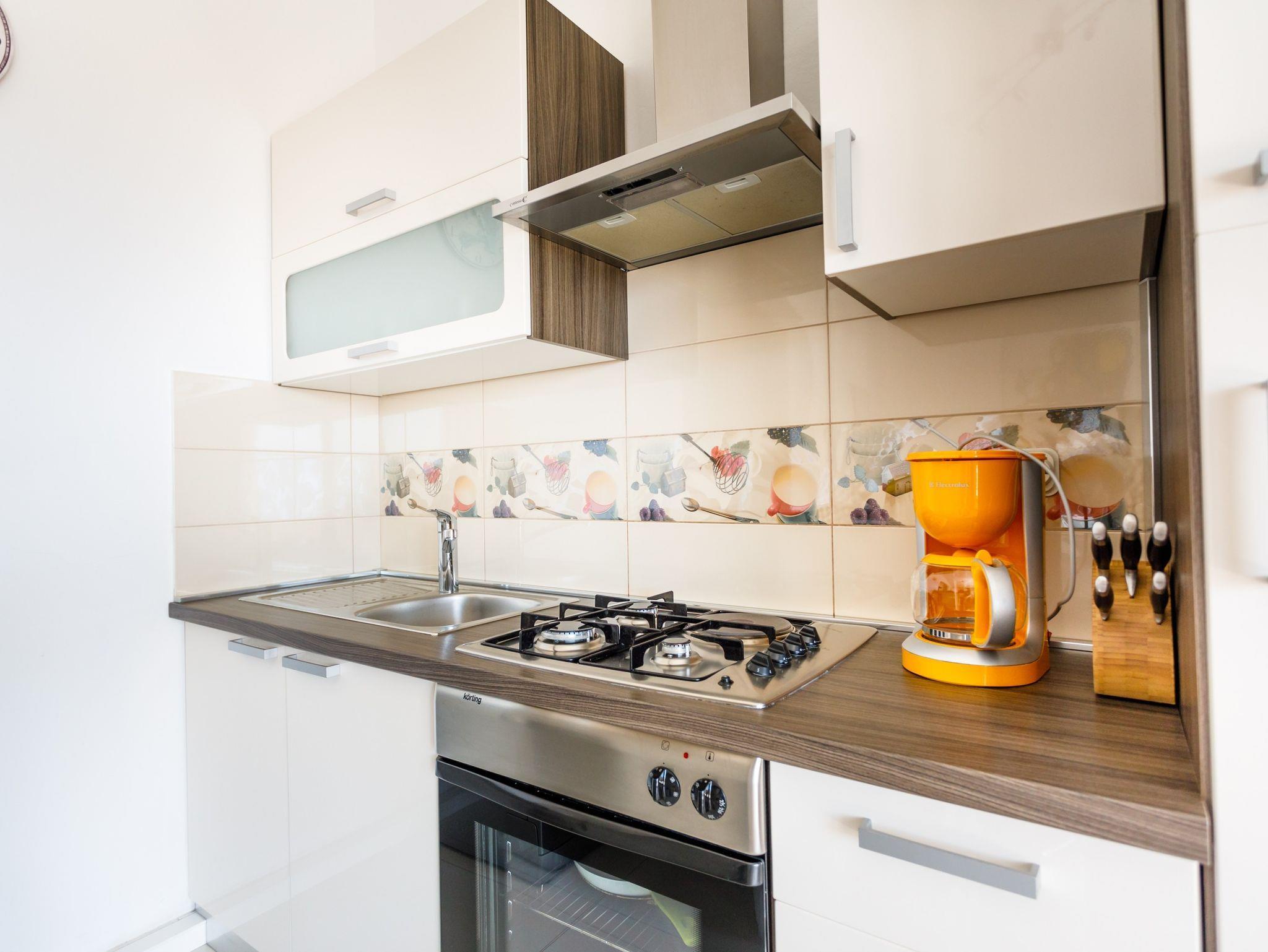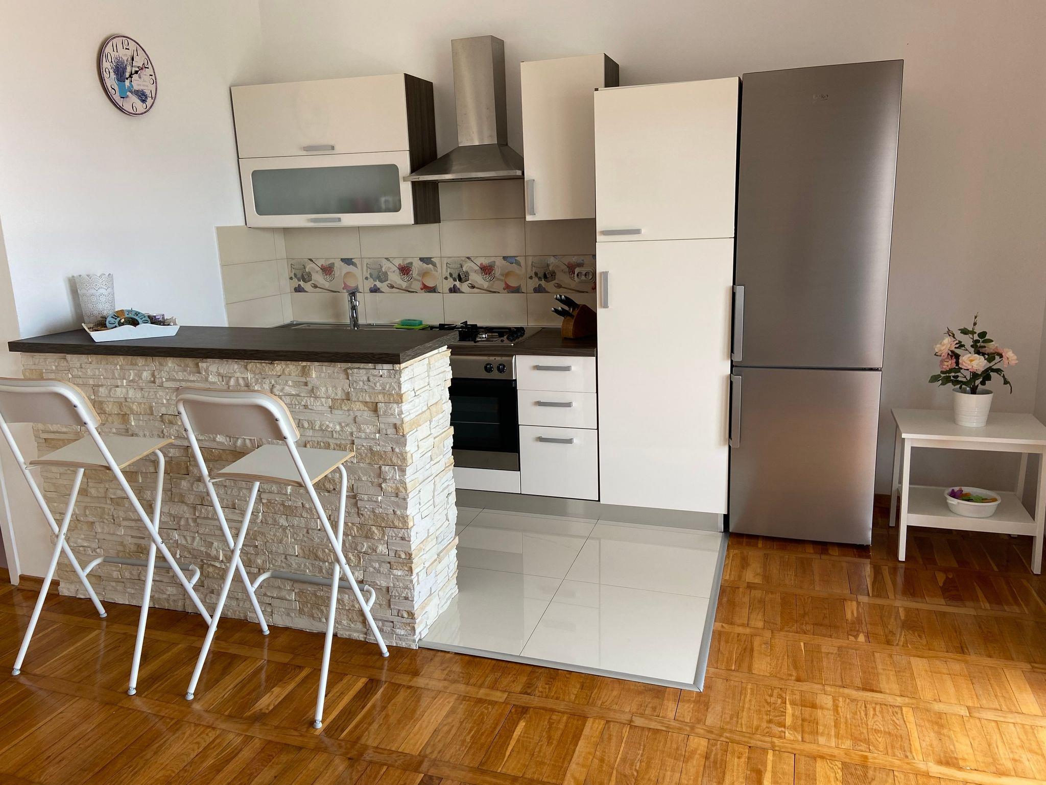 Ferienwohnung bietet Platz für 4 Gäste. Die Betten sind in Schlafzimmern, die es 2 gibt, innerhalb einer Gesamtfläche von 56m2, angeordnet. Die Gäste haben eine eigene Terrasse zur Verfügung, auf der sie in warmen Sommernächten genießen können. Das Apartment bietet Meerblick. Es ist erlaubt, Speisen auf dem Gemeinschafts-Grill vorzubereiten. IM PREIS INBEGRIFFEN: Kurtaxe, Endreinigung, Klimatisierung, Parkplatz, Internet, Kinderbett, Föhn. Die Verfügbarkeit zusätzlicher Dienstleistungen in Ihrem reservierten Termin und die Preise derselben (falls nicht aufgeführt) müssen im Voraus überprüft werden. Zusätzliche Dienstleistungen die in der Zahlungsaufforderung nicht aufgeführt sind werden direkt beim Vermieter bezahlt, angenommen der Gast nutzt auch diese. Ermäßigung auf den Grundpreis: Gratistag 14=13 (bei einem Aufenthalt von 14 Tagen oder mehr erhalten Sie einen Gratistag für den Aufenthalt bis 31.12.26).