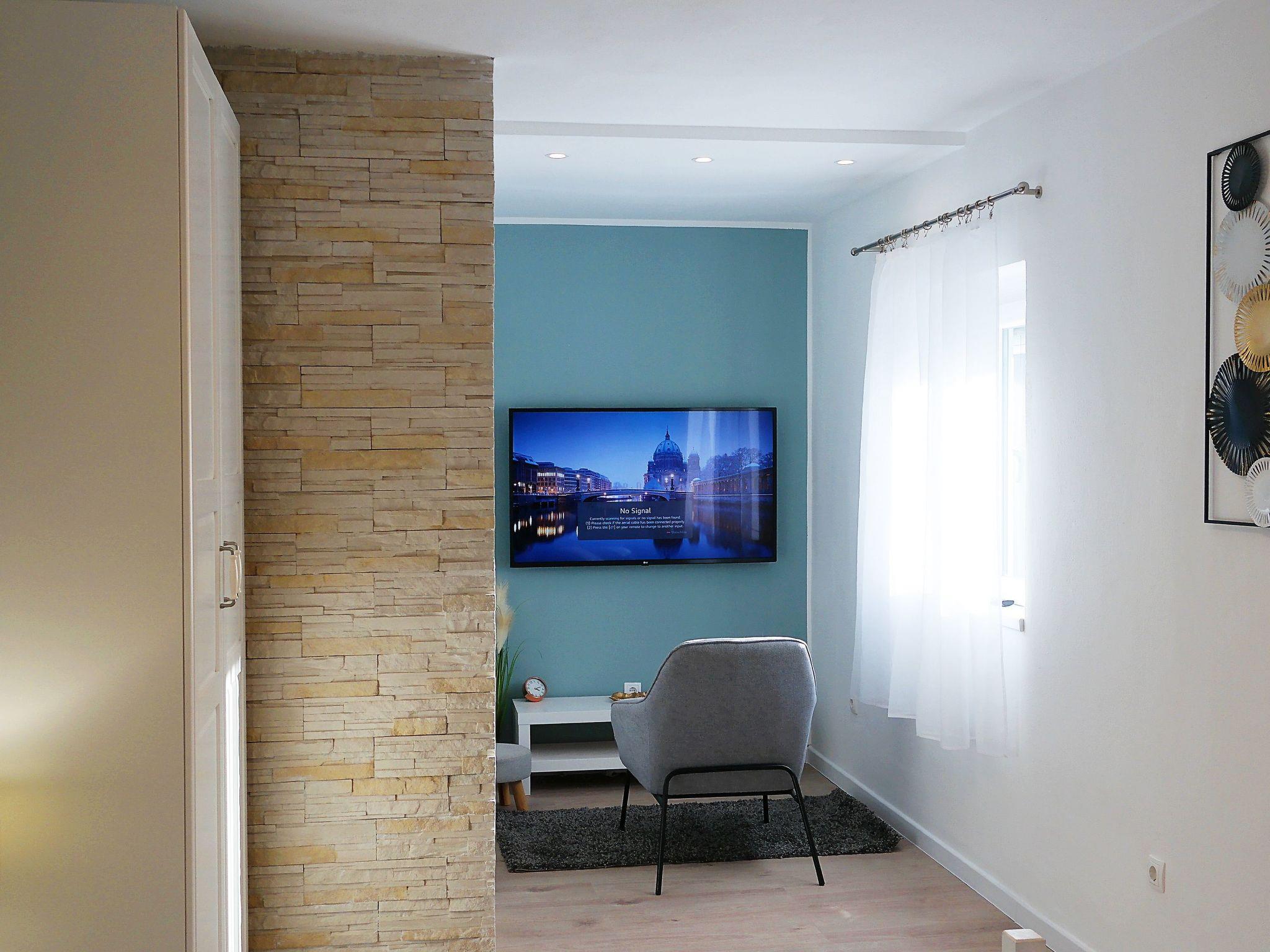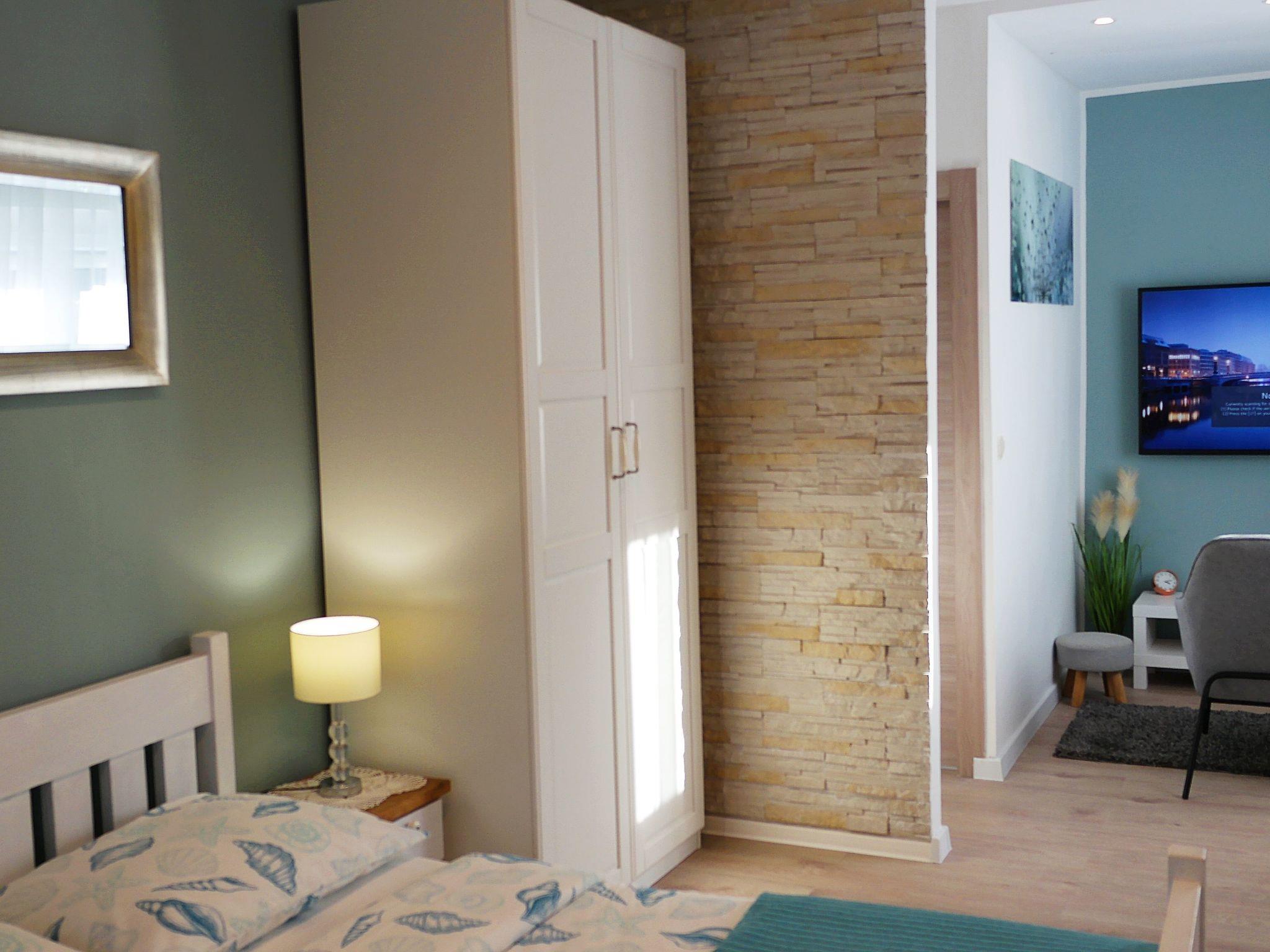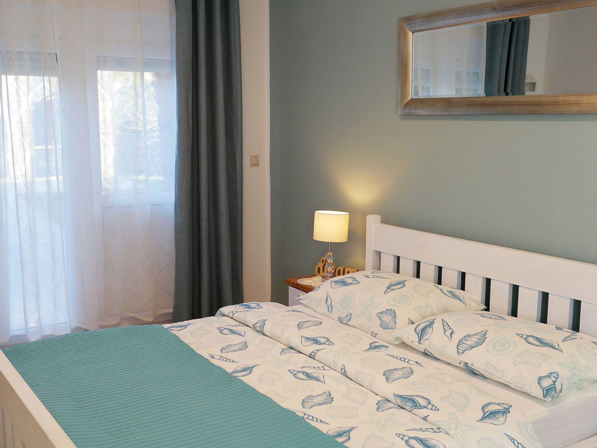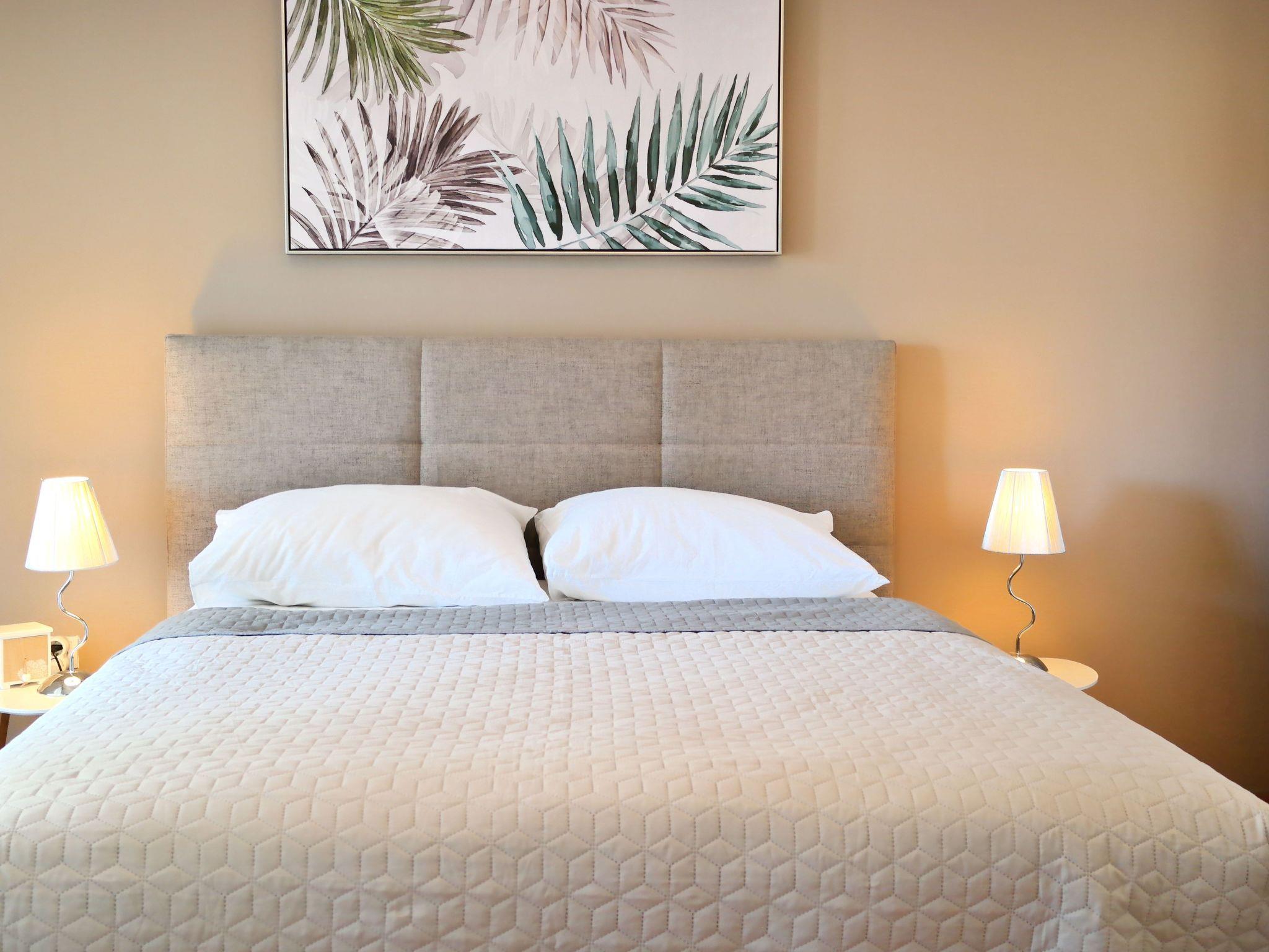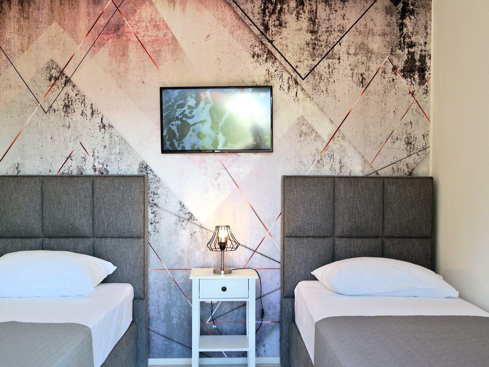 • Bedroom 1: Double bed (160x200 cm), satellite TV, air-conditioning, and access to the balcony.