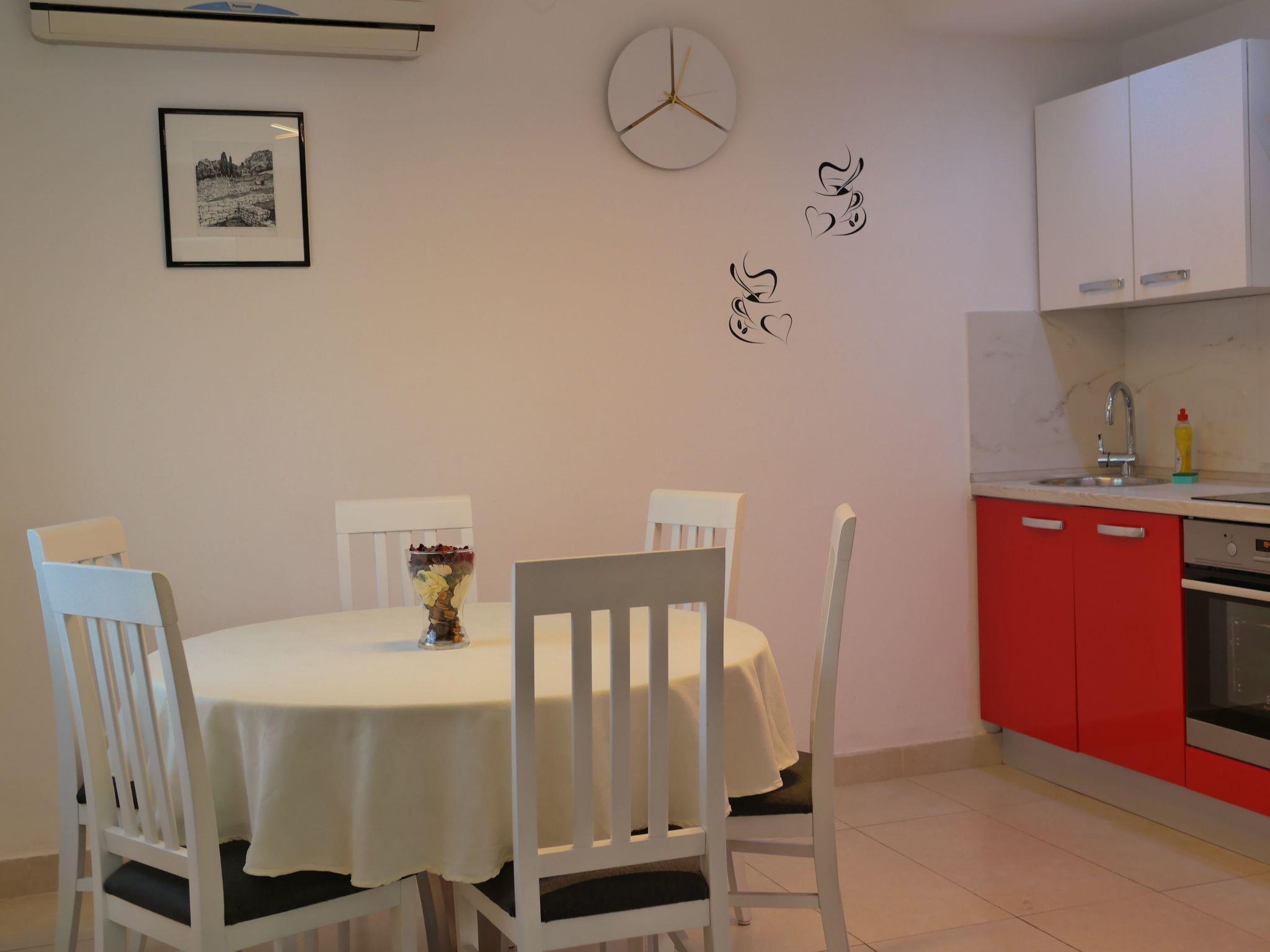 • Kitchen: Fully equipped with an electric stove, dishwasher, oven, kettle, fridge with freezer, and a dining table for six.