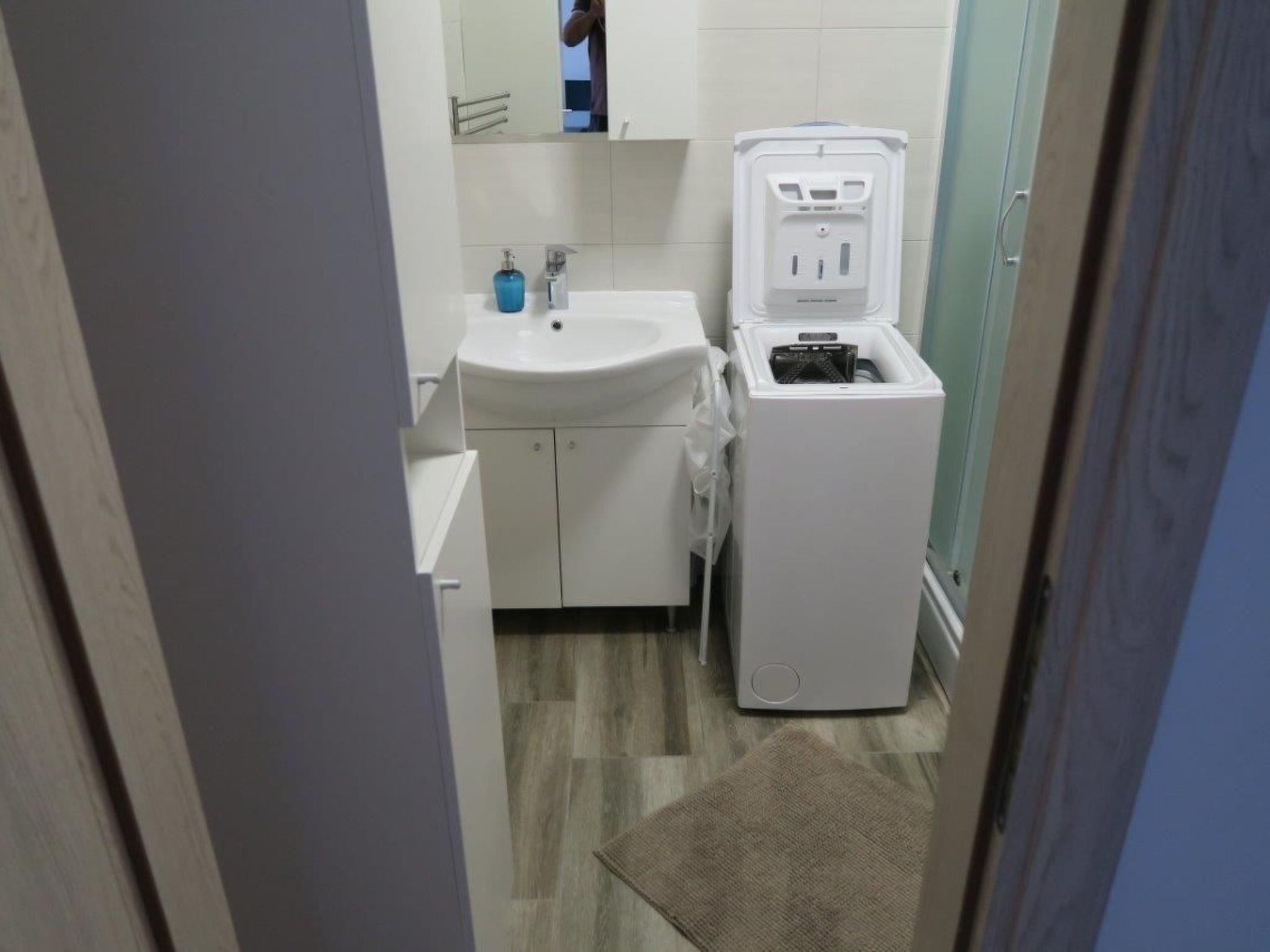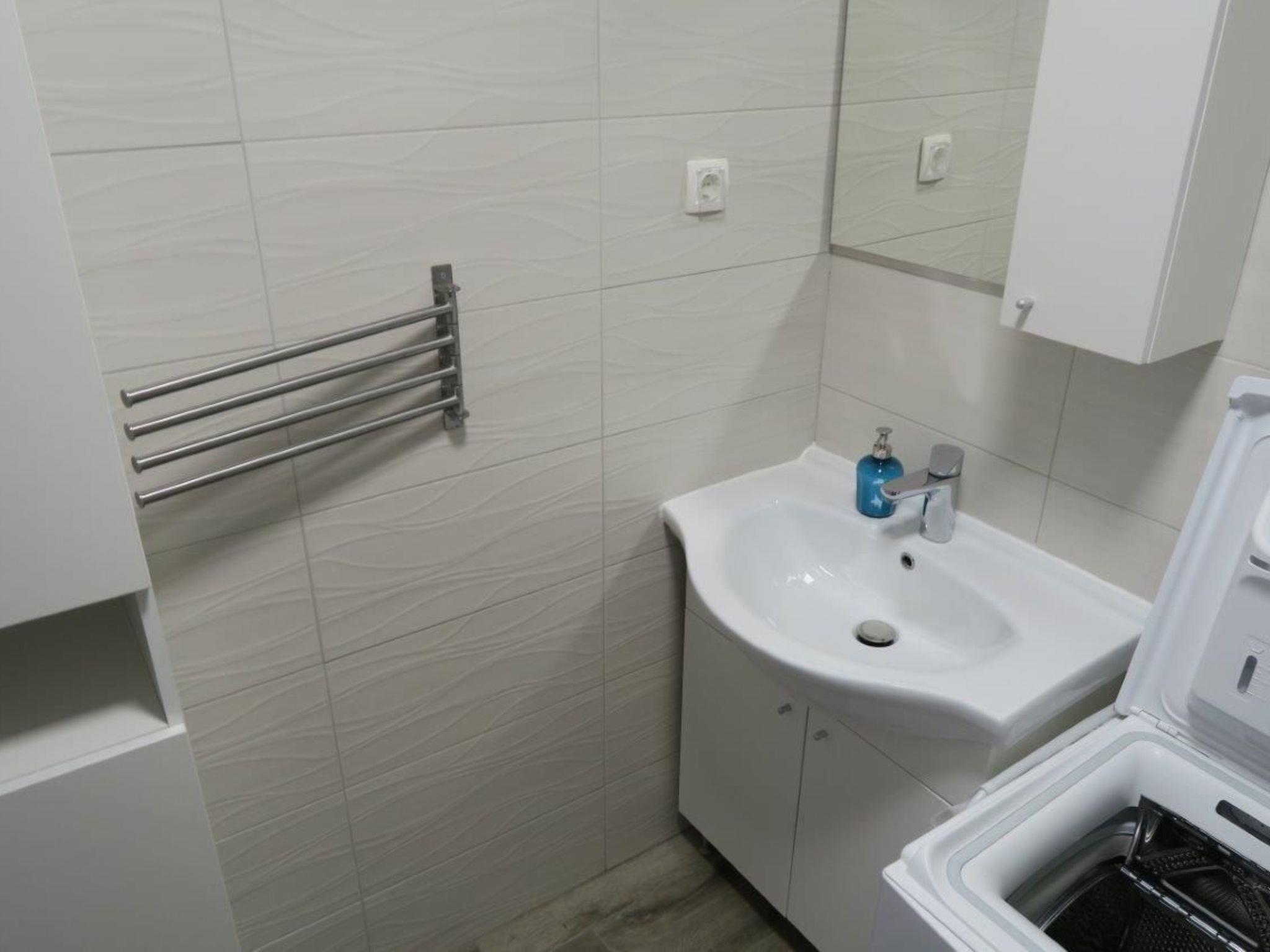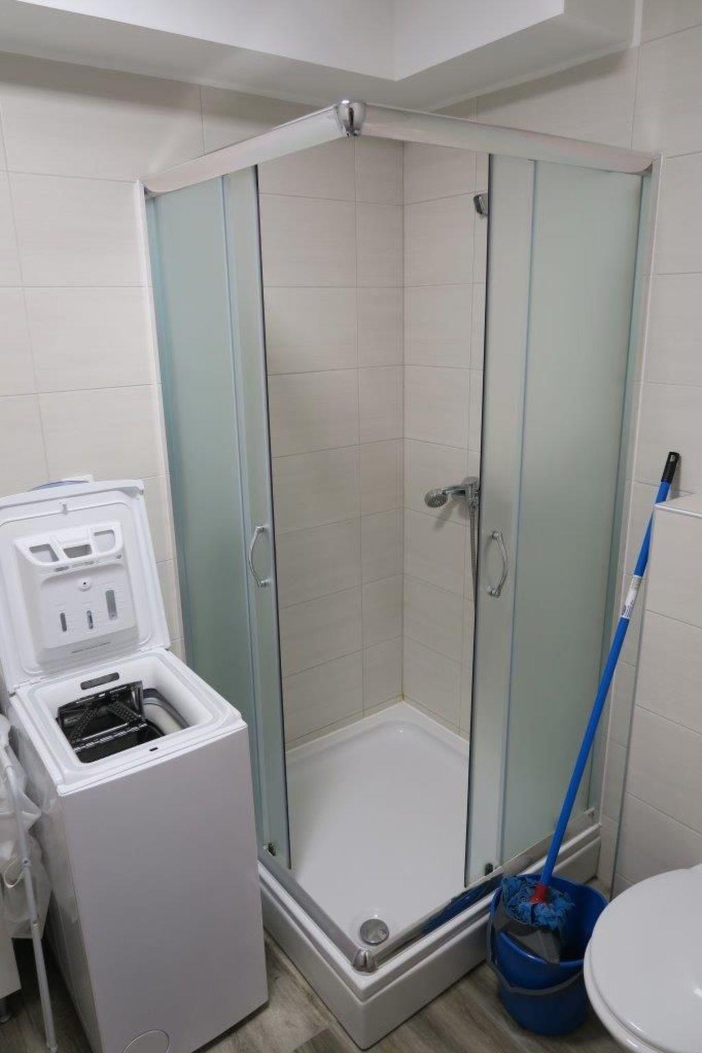 1 bathroom with a shower, WC, hairdryer and washbasin with a cupboard underneath and washingmachine. The apartment has a 1 big bedroom with a double bed (180 x 200cm) and cupboard. All the rooms in the apartment have air conditioning. Internet access is available in whole apartment.