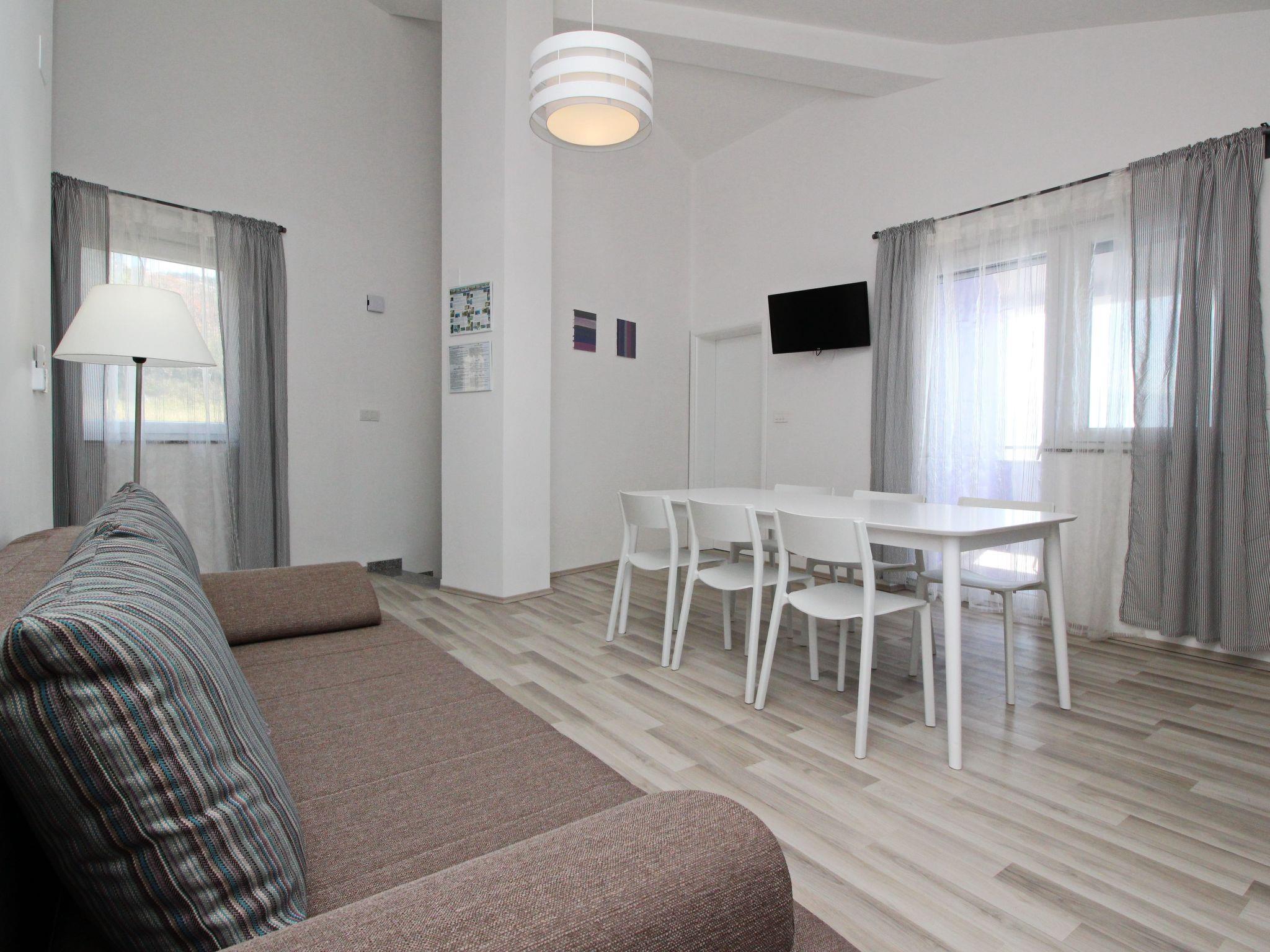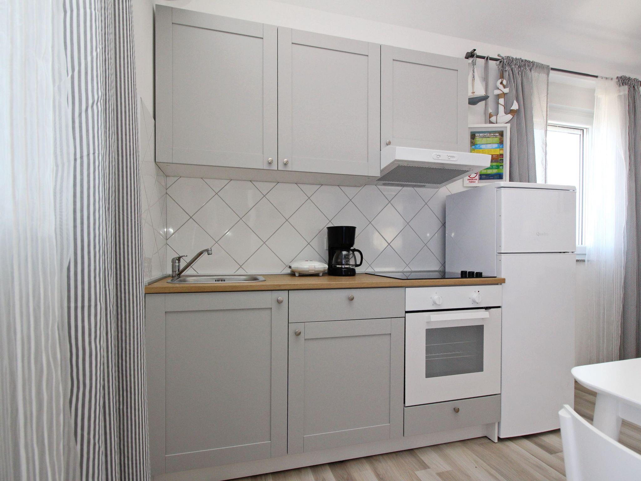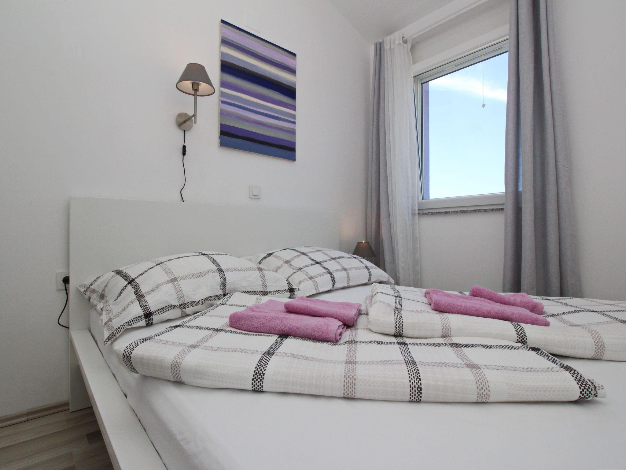 bedroom No.1 double room ; double bed ; laminated wood flooring ; with sea viewbedroom No.2 double room ; double bed ; laminated wood flooring ; with sea viewliving roomdining room, living room and kitchen - one unit; table and chairs for every person; two additional possibilities for sleeping on one sleeping couch; with a balcony; laminated wood flooringkitchenkitchen utensils, pots, cutlery, etc. provided; dish clothes; electric cooker; number of rings: 3; oven; refrigerator with a freezer compartment; coffee machine; toasterbathroombathroom with toilet; with a showerspecial features of the apartment Air-conditioning; air conditioning included in the price: Number 1; Sat-TV; bedding (changed weekly, or every 2 weeks for longer stays); towels (1 large, 1 small/per person and week); One pet permitted (up to 45 cm shoulder height); Internet (WLAN), use free of charge; Prices include the following: change of bedlinen (weekly), final clean at the end of your stay, usage of electricity, gas and water. Informationbalcony own balcony; partially roofed; balcony with sea view; Table and seats provided for balcony; area of balcony: 11m²outside area parking lot