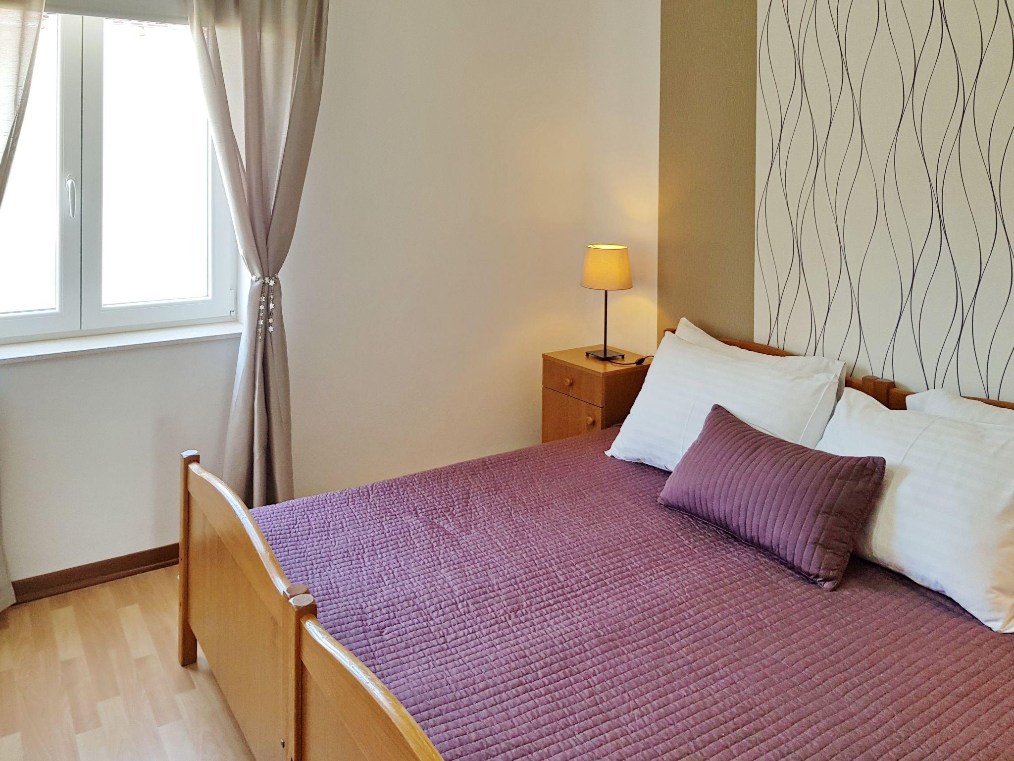 No. of persons: 4-5 Surface : 50 m2 (2nd floor) Equipment holiday flat: Bedroom No.1 : double room , double bed , laminate Bedroom No.2 : double room , double bed , laminate living area : living room, dining room and kitchen are one unit; dining table and seating for all persons; one additional sleeping possibility on a sofa bed; with balcony; tiled kitchen : kitchenette, dishes, cooking pots, cutlery etc. are available, dish towels available, electric cooker, number of hotplates: 4, fridge with freezer compartment, coffee machine bathroom : bathroom with WC, with shower Special features of the accommodation unit : air conditioning, air conditioning included in price: Anzahl 1, Sat-TV, Bed linen provided in weekly change, Towels available (2 small/person and week), One pet allowed (up to 45 cm shoulder height), The prices include the following additional costs: Change of bed linen (weekly), final cleaning as well as the consumption of electricity, gas and water. balcony : private balcony, table and chairs for the balcony are available, balcony area: 4sqm outdoor area : barbecue, free parking space