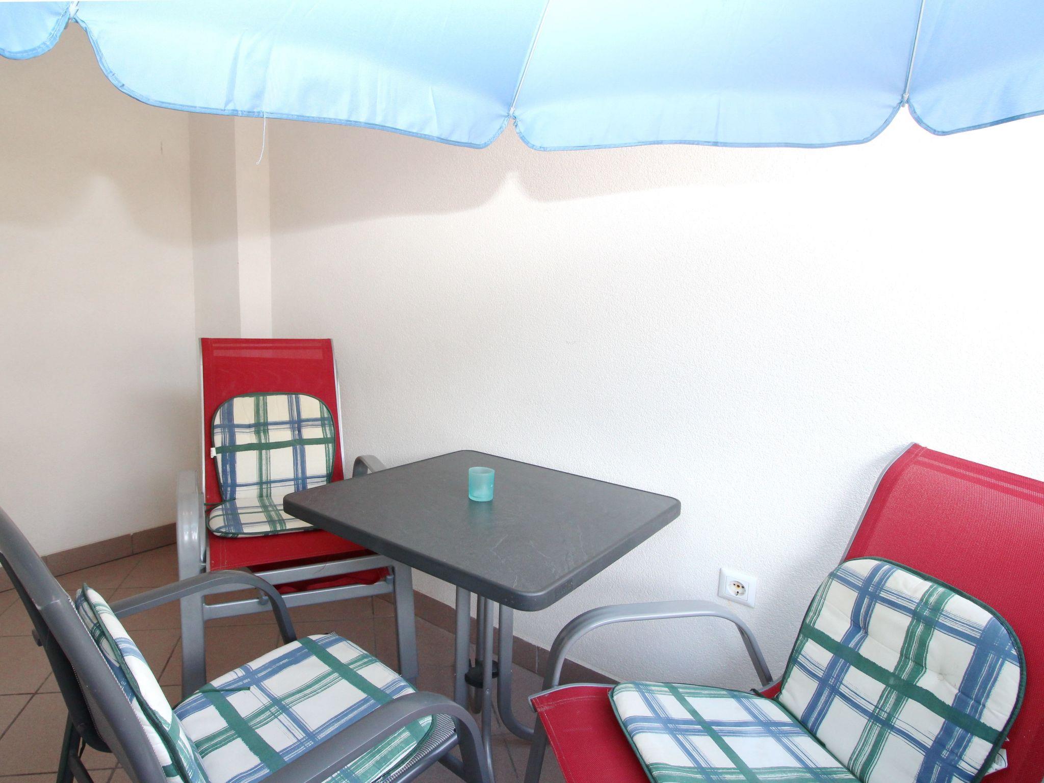 Balcony : own balcony, roofed, surface about 6 square metres, tables and chairs for the balcony are available.