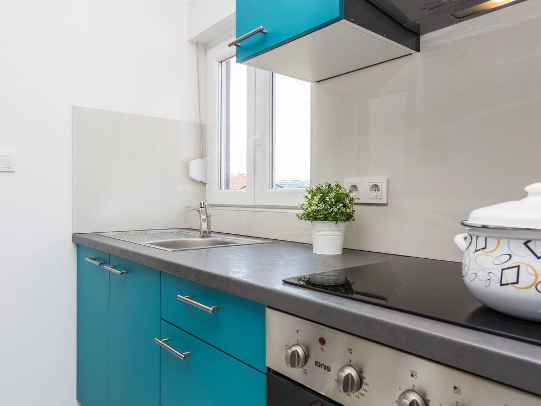 Flat facilities: Bedroom : double room , double bed , tiled Living area : living room, dining room and kitchen are one unit; dining table and seating for all persons; an additional sleeping possibility on a sofa bed; tiled Kitchen : kitchenette, dishes, cooking pots, cutlery, etc. are available, dish towels available, electric cooker, number of hotplates: 4, oven, refrigerator with freezer compartment, coffee machine Bathroom : bathroom with toilet, with shower Special features of the accommodation unit : air conditioning, air conditioning included in the price: No. 1, satellite TV, bed linen provided in weekly change, towels available (1 large, 1 small/person and week), no pets, internet (WLAN), free use, The prices include the following additional costs: change of bed linen (weekly), final cleaning and the consumption of electricity, gas and water. Balcony : private balcony, table and chairs for the balcony are available, surface of the balcony: 4sqm outdoor area : free car park