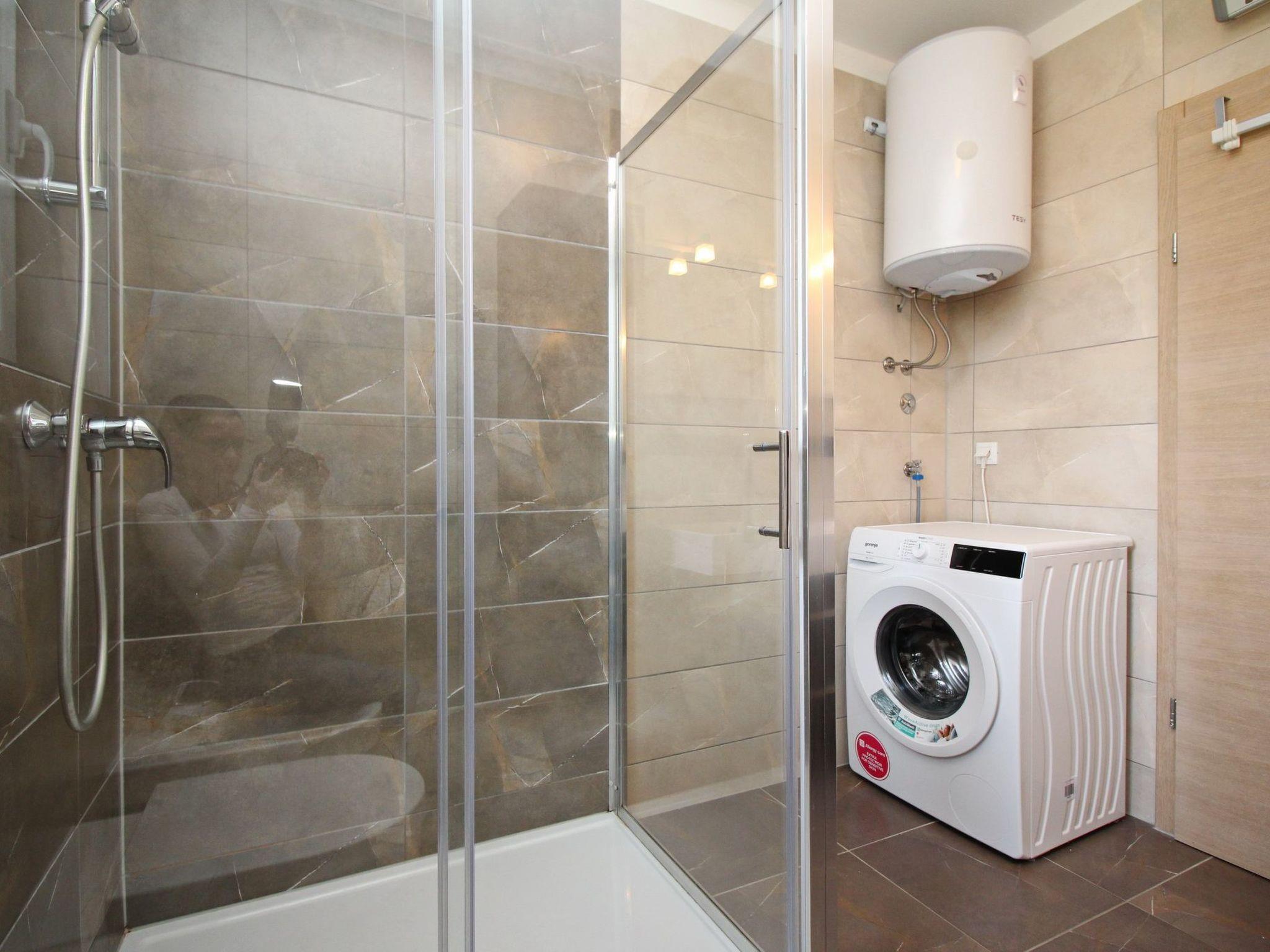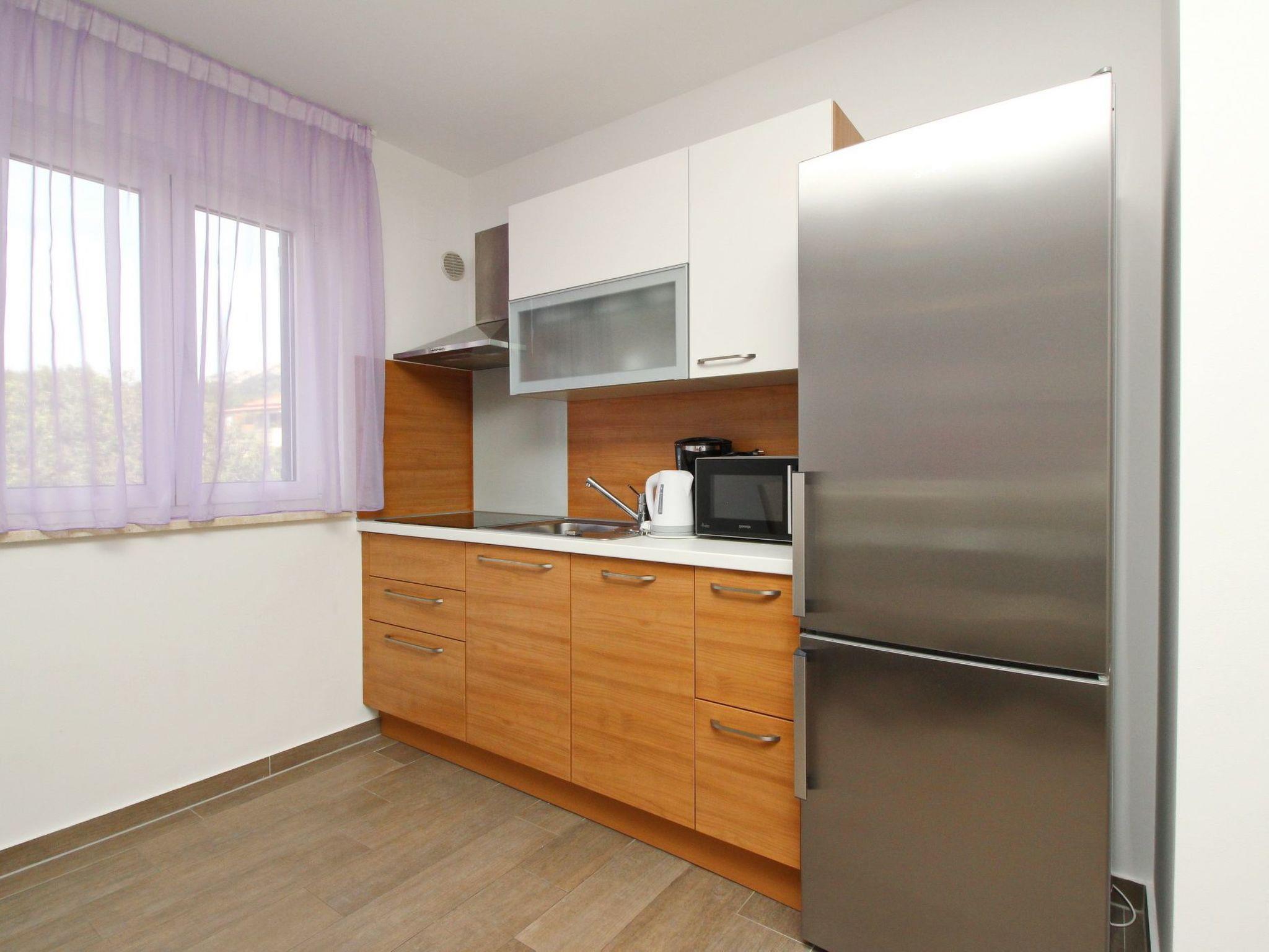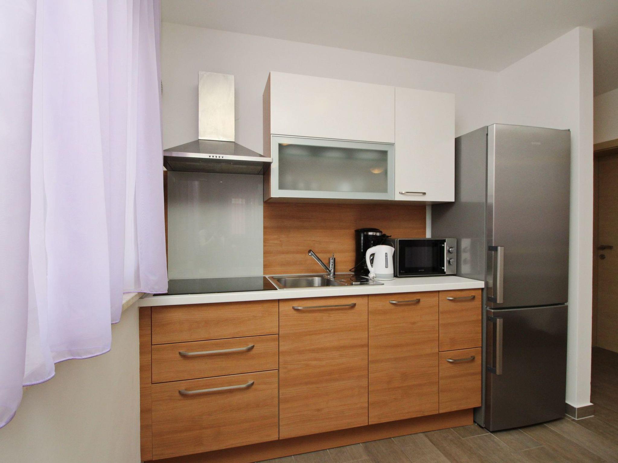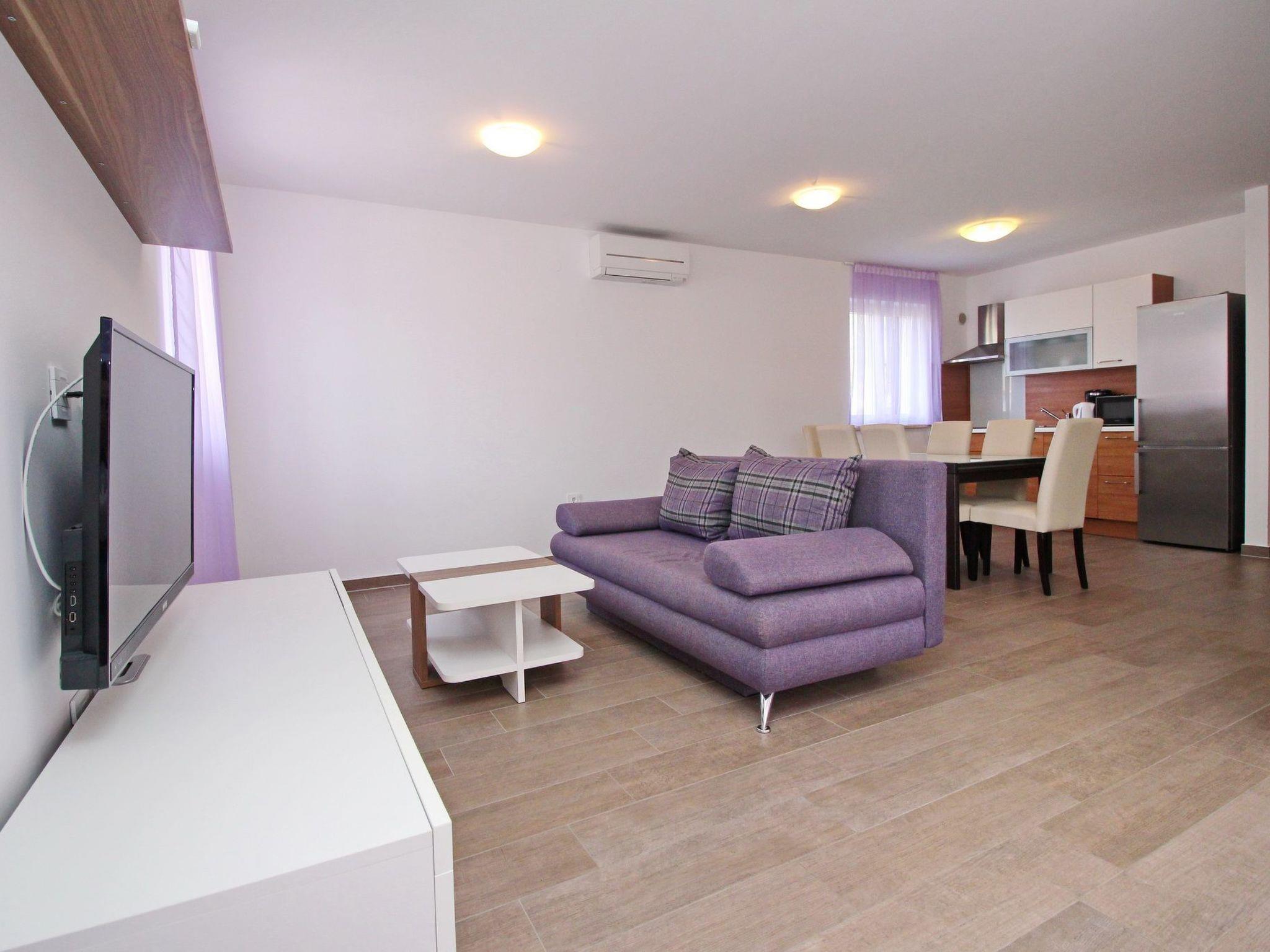 No. of persons: 4-6 Places: 65 m2 (1st floor) Terrace: private balcony, partly covered, tables and chairs for balcony are available. Info: satellite TV, bed linen is provided once a week, towels available (1 large, 1 small / per person and week), use of air conditioning is included in the price of the accommodation, free Wi-Fi, pets are allowed. Flat facilities: Bedroom no.1 : double room , double bed , exit to balcony, tiled, LCDtv Bedroom no.2 : double room , double bed , tiled, LCDtv Living area : living room, dining room and kitchen are one unit ; one additional sleeping possibility on a sofa bed ; exit to the balcony; tiled Kitchen : kitchenette, dishes, cooking pots, cutlery etc. are available, dish towels available, electric cooker, number of hotplates: 4, refrigerator with freezer compartment, coffee machine, dishwasher Bathroom : bathroom with toilet, with shower Each flat has its own parking space.