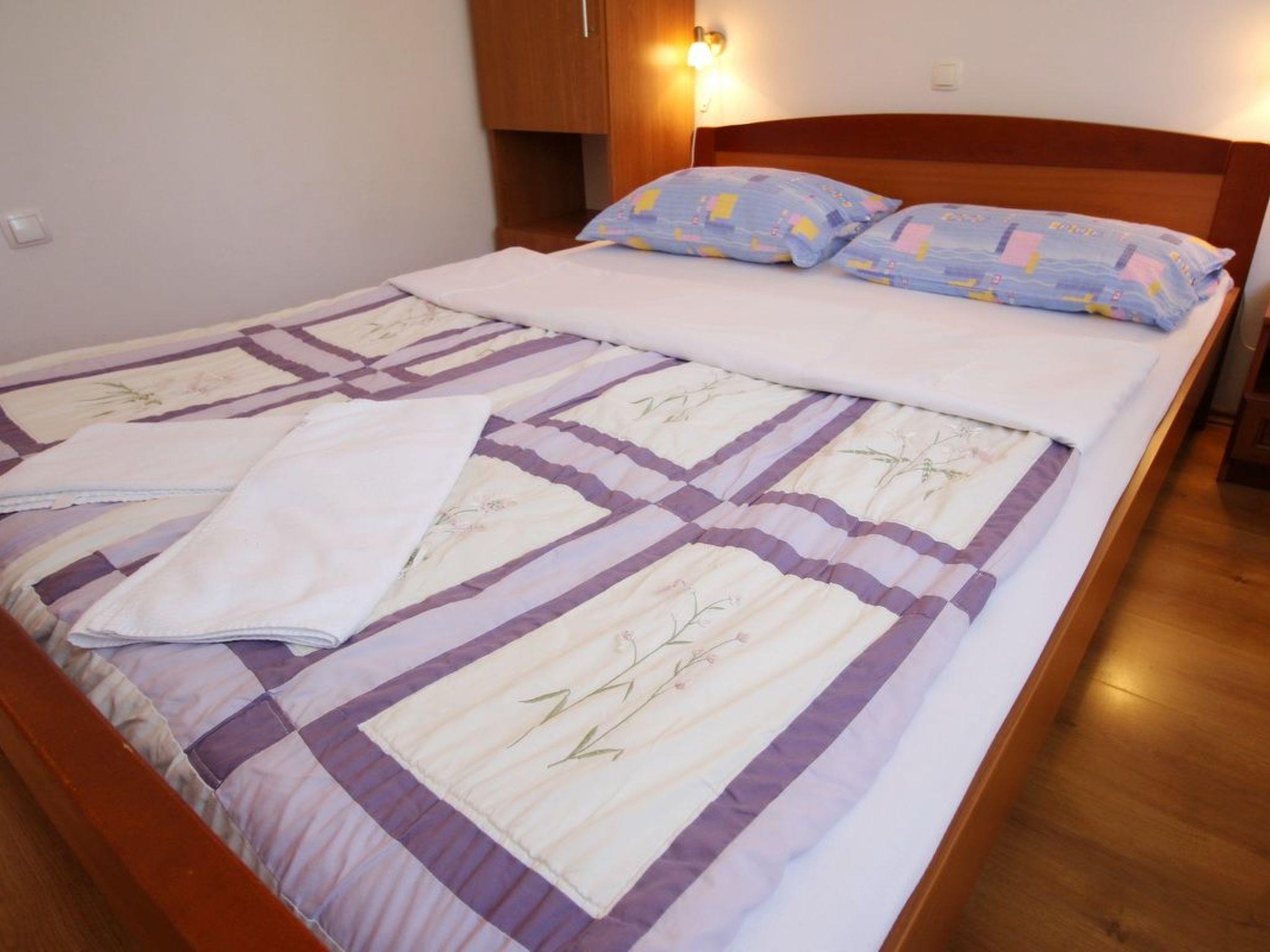 No. of persons: 6 Places: 80 m2 (1st floor) Balcony : a private balcony, covered, tables and chairs for the balcony are available. Info: Satellite TV, bed linen is provided once a week, towels available (1 large, 1 small / per person and week), use of air conditioning is included in the price of the accommodation, pets are not allowed. Equipment holiday flat: Bedroom No.1 : Double room , Double bed , Laminate Bedroom No.2 : Double room , Double bed , Laminate Bedroom No.3 : double room , double bed , laminate living area : living room, dining room and kitchen are one unit ; dining table and seating for all persons ; with balcony ; tiled kitchen : kitchenette, crockery, pots and pans, cutlery etc. are available, tea towels provided, electric cooker, number of hotplates: 4, oven, fridge with freezer compartment, coffee machine bathroom no.1 : bathroom with WC, with bathtub bathroom no.2 : bathroom with WC, with shower