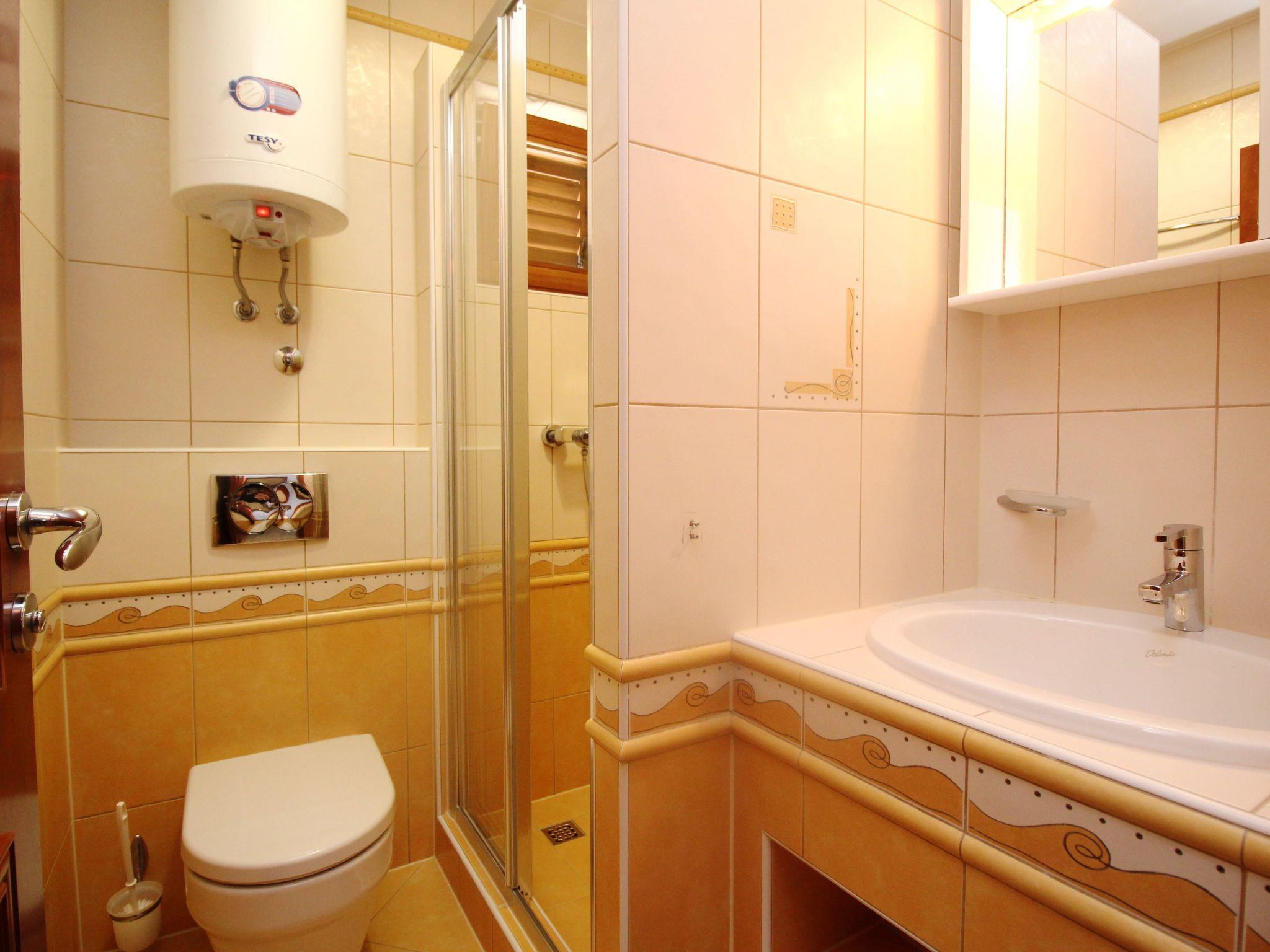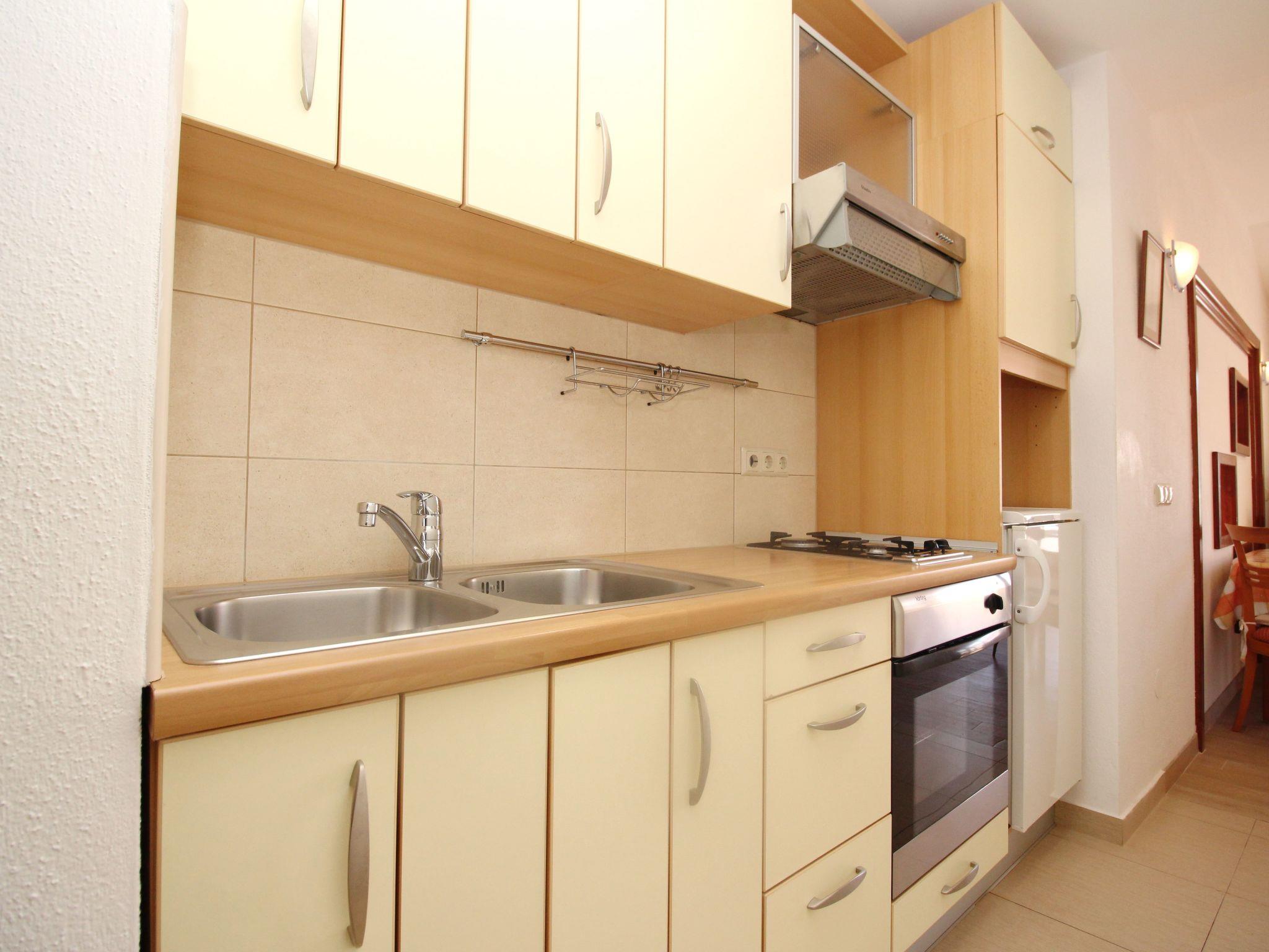 No. of persons: 4-5 Places: 50 m2 (1st floor) Balcony : a private balcony, overlooking the sea, tables and chairs for the balcony are available. Info: Satellite TV, bed linen is provided once a week, towels available (1 large, 1 small / per person and week), use of air conditioning is included in the price of the accommodation, pets are not allowed, final cleaning not included in the price. Equipment holiday flat: Bedroom No.1 : Double room , Double bed , Parquet Bedroom No.2 double room , separate beds , parquet flooring Living area : living room, dining room and kitchen are one unit ; one additional sleeping possibility on a sofa bed ; with balcony ; parquet flooring Kitchen : kitchenette, dining table and seating for all persons, crockery, cooking pots, cutlery etc. available, dish towels available, gas cooker, number of hotplates: 2, oven, fridge with freezer compartment Bathroom : bathroom with WC, with shower Possibility to book Sunday-Sunday.