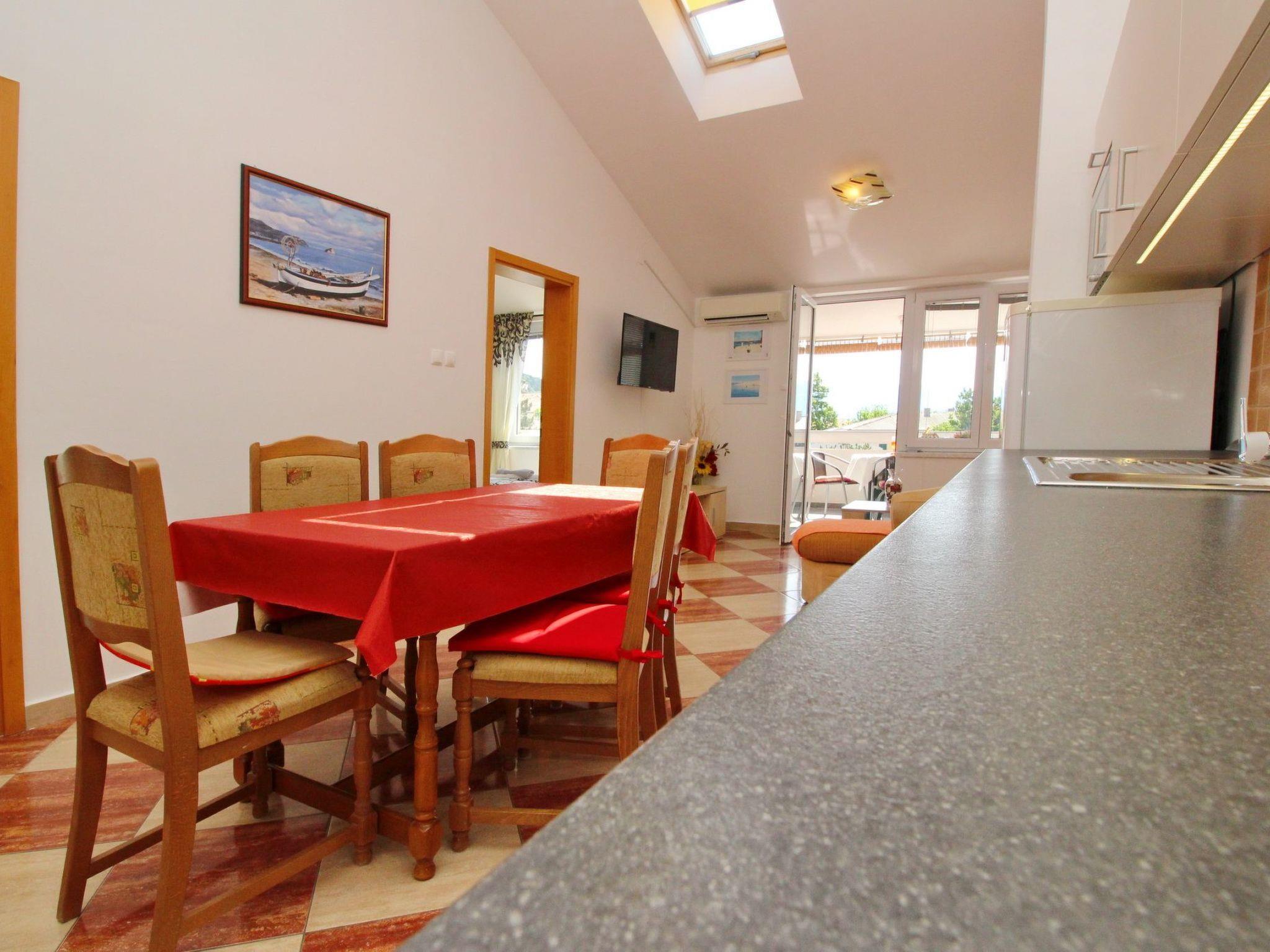 No. of persons: 4 Places: 65 m2 (2nd floor) Balcony : a private balcony (approx. 7 square metres), covered, overlooking the sea, tables and chairs for the balcony are available. Free Wi-Fi, pets are not allowed, car park in the yard. Flat facilities: Bedroom no.1 : double bed , with balcony , laminate Bedroom no.2 : double bed , with balcony , laminate Bathroom : bathroom with toilet, with shower Living area : living room, dining room and kitchen are one unit ; dining table and seating for all persons ; with balcony ; tiled kitchen : kitchenette, dining table and seating for all persons, crockery, pots and pans, cutlery etc. are available, tea towels available, electric cooker, number of hotplates: 4, oven, refrigerator without freezer compartment, coffee machine.