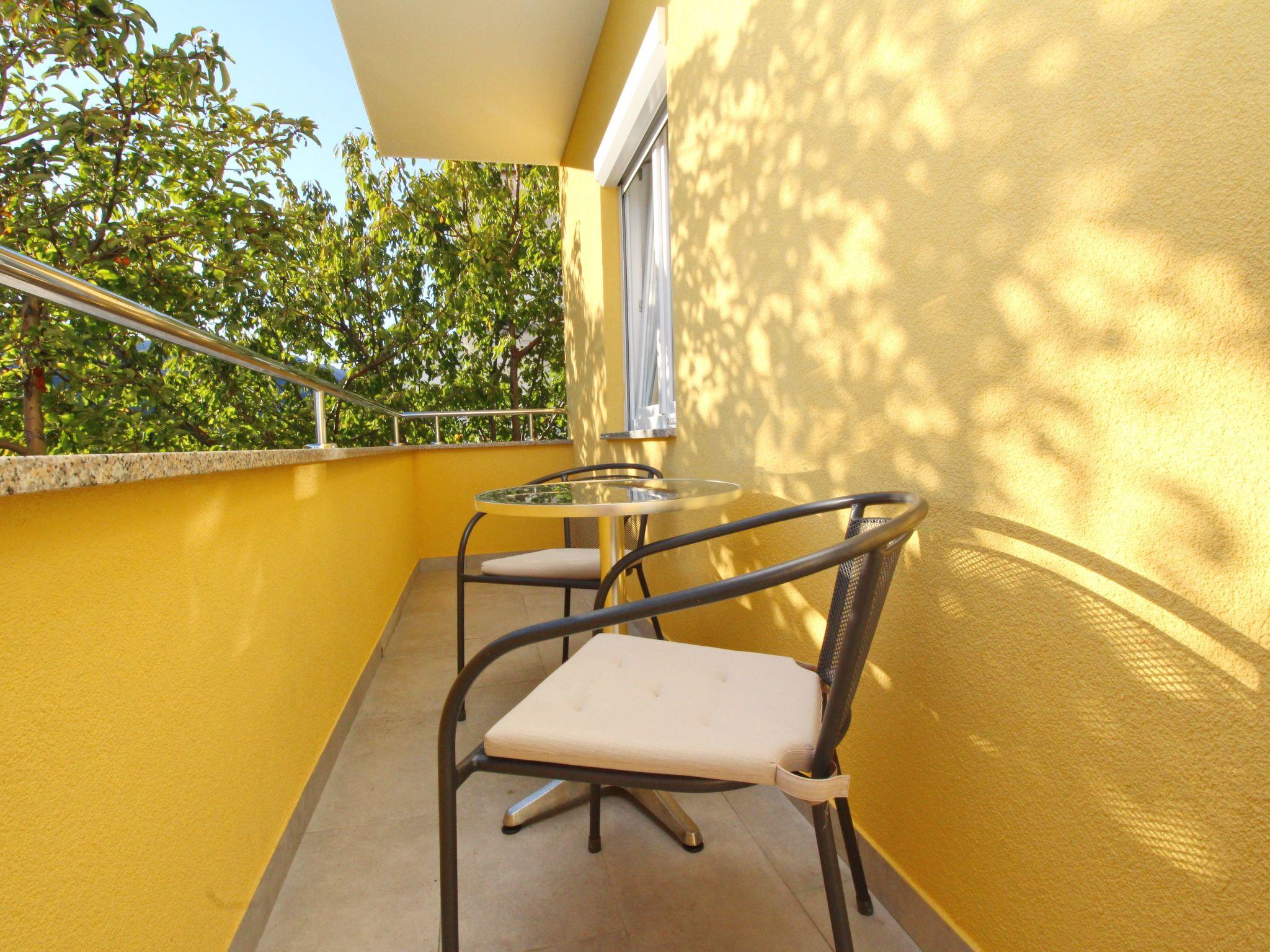 No. of persons: 2 Places: 35 m2 (1st floor) Apartment facilities: Bedroom : double room , double bed, laminate Living area : living room, dining room and kitchen are one unit; dining table and seating for all persons; with balcony; tiled Kitchen : kitchenette, dishes, cooking pots, cutlery, etc. are available, dish towels available, electric cooker, number of hotplates: 2, fridge-freezer, coffee maker Bathroom : bathroom with WC, with shower Special features of the accommodation unit : air conditioning, air conditioning included in price: Anzahl 1, Sat-TV, Bed linen provided in weekly change, Towels available (2 small/person and week), One pet allowed (up to 45 cm shoulder height), The prices include the following additional costs: Change of bed linen (weekly), final cleaning as well as the consumption of electricity, gas and water, free Wi-Fi Balcony : private balcony, balcony with sea view, table and chairs for the balcony are available, balcony area: 7sqm Outdoor area : barbecue, free parking space