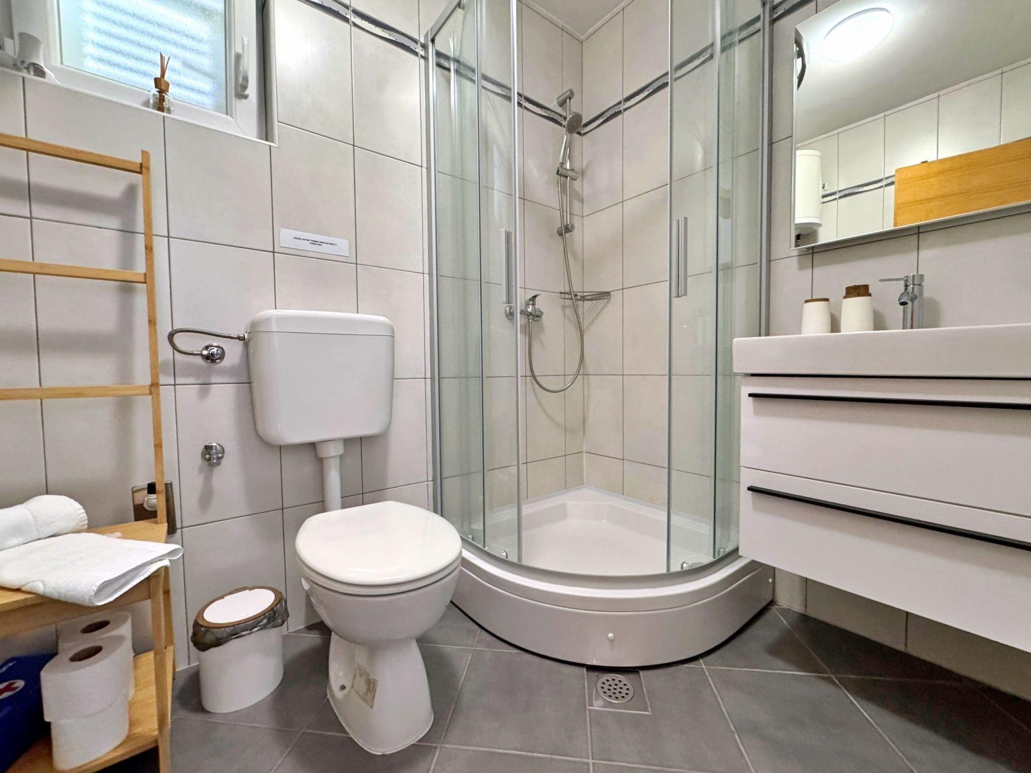 This first-floor flat has a 7 m² balcony with sea views. The air-conditioned kitchen and living area are equipped with a ceramic hob, fridge with freezer compartment, Nespresso coffee machine, kettle, microwave, toaster, dishwasher, dining table, pull-out couch for two, cable/satellite TV and WiFi and offer direct access to the balcony. There are two bedrooms: one with a queen-size bed and one with two single beds. The bathroom has a shower, WC and hairdryer. Guests have access to a communal barbecue area and a terrace in the courtyard. Free private parking is available in front of the building. Pets are welcome for an extra charge. A baby cot is available on request.