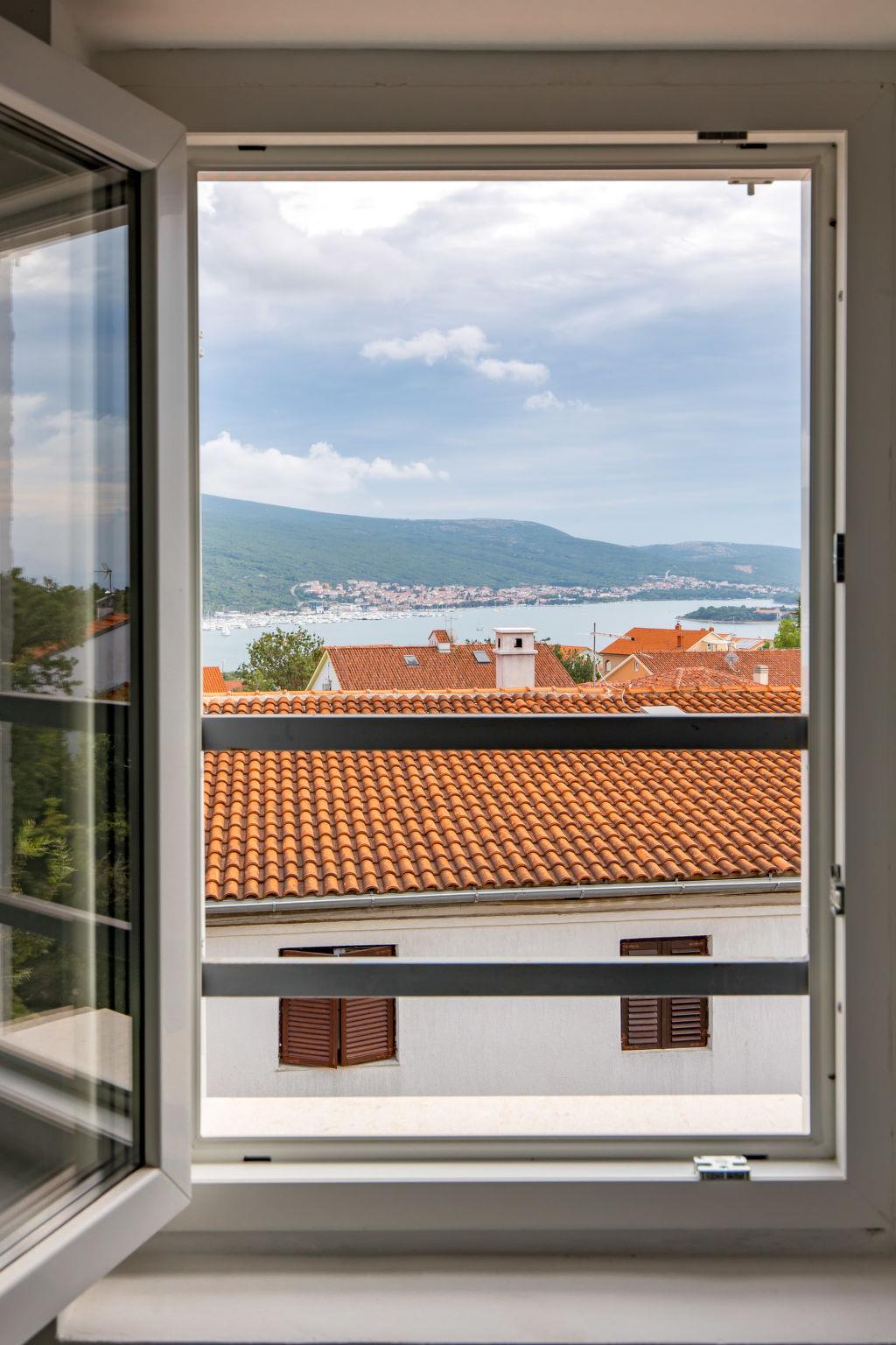 4-room house 85 m2 on 2 levels. Living/dining room with satellite TV (flat screen), air conditioning. Exit to the terrace, to the swimming pool. 1 room with 1 french bed (160 cm, length 200 cm). Exit to the terrace. 1 room with 2 beds (80 cm, length 200 cm). Open kitchen (oven, 4 ceramic glass hob hotplates, toaster, kettle, freezer, electric coffee machine) with satellite TV (flat screen), air conditioning. Exit to the terrace. Bath/WC. Upper floor: entrance hall with air conditioning. 1 room with 1 double bed (2 x 80 cm, length 190 cm). Exit to the balcony, to the terrace. Bath/WC. Heating. Heating available only from 01.10. to 01.05. Balcony 6 m2, terrace 25 m2. Terrace furniture, deck chairs. View of the sea and the swimming pool. Facilities: safe, iron, children's high chair, baby cot, hair dryer. Internet (WiFi, free). Maximum 3 pets/ dogs allowed.