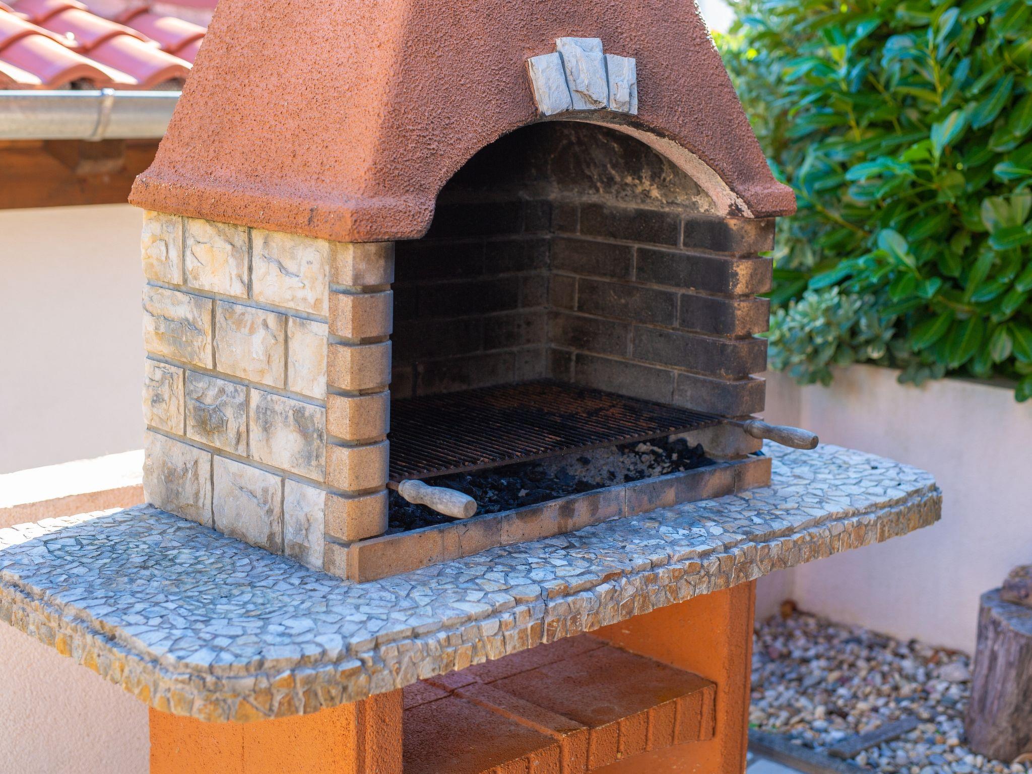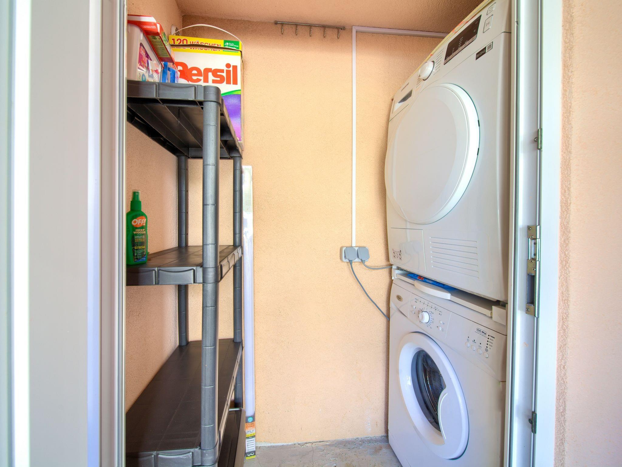 3-room semi-detached house 90 m2 on 2 levels. Comfortable and tasteful furnishings: living/dining room with 1 sofabed (80 cm, length 200 cm), cable TV, digital TV and air conditioning. Exit to the terrace. Open kitchen (oven, dishwasher, 4 induction hot plates, toaster, kettle, microwave, freezer, electric coffee machine). Shower/WC. Upper floor: 1 room with 1 double bed (160 cm, length 200 cm), air conditioning. Exit to the balcony. 1 room with 2 beds (90 cm, length 200 cm), air conditioning. Exit to the balcony. Bath/WC. Forced-air heating. Balcony 8 m2, terrace 30 m2 partly roofed. Terrace furniture, balcony furniture, barbecue, deck chairs (2). Partial view of the sea. Facilities: baby cot (extra). Internet (WiFi, free).