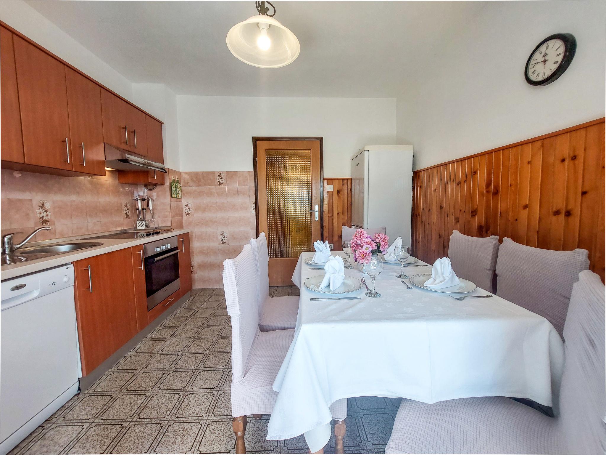 3-room apartment 70 m2 on 1st floor. Living room with 1 sofabed and satellite TV. Exit to the balcony. 2 rooms, each room with 1 double bed. Dining room. Exit to the balcony. Open kitchen (oven, dishwasher, 4 ceramic glass hob hotplates, toaster, kettle, freezer, electric coffee machine). Bath/WC, sep. WC. Air-conditioning (extra). No heating option. Balcony, terrace. Terrace furniture, barbecue (portable). Facilities: washing machine. Internet (WiFi, free). Please note: non-smokers only. Private entrance.