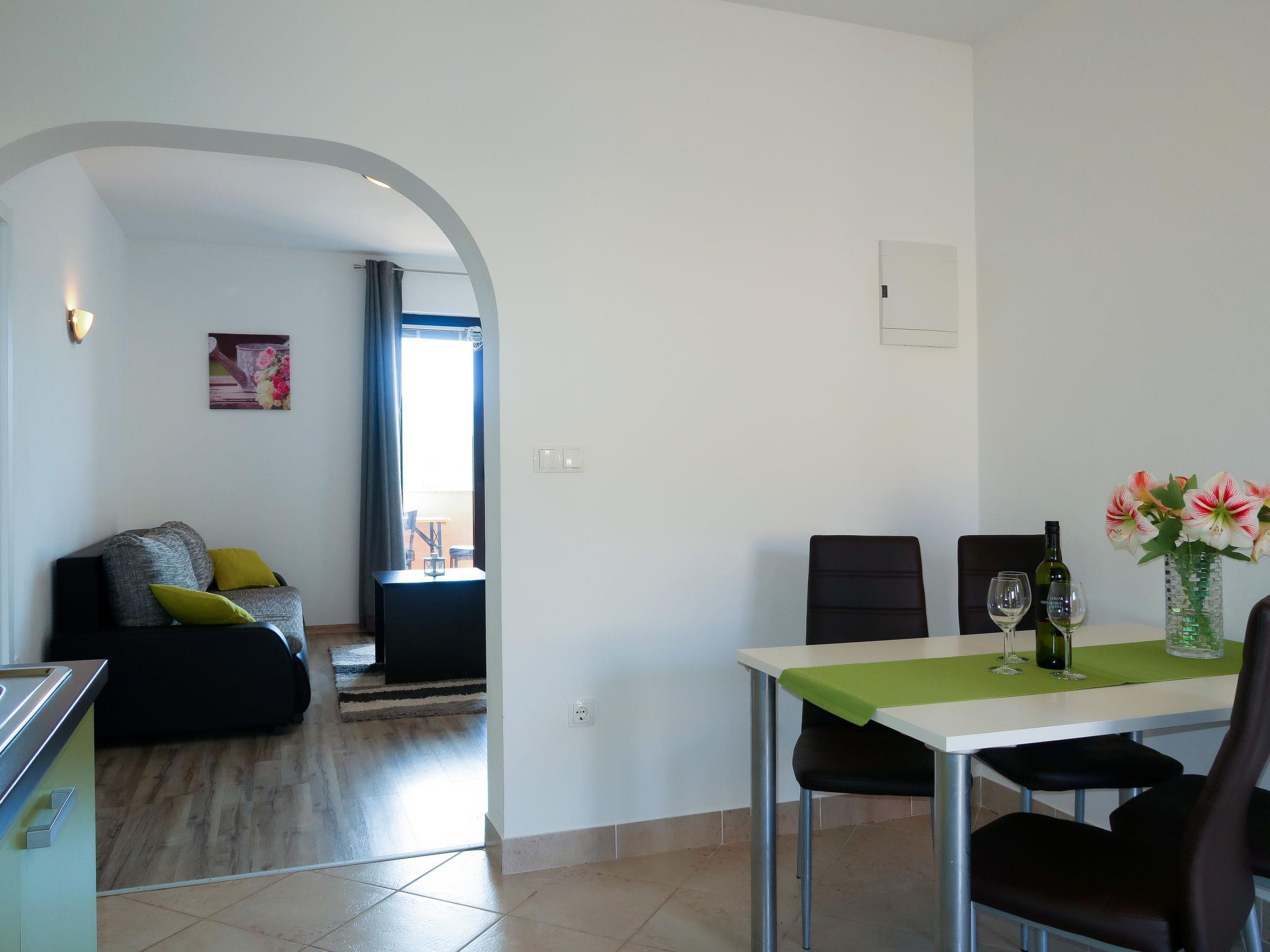 "Rosic", 3-room apartment 65 m2 on 1st floor. Living/dining room with 1 sofabed and satellite TV (flat screen), air conditioning. Exit to the balcony. 1 room with 1 french bed (160 cm, length 200 cm). Exit to the balcony. 1 room with 1 french bed (160 cm, length 200 cm), shower/WC. Open kitchen (oven, dishwasher, 4 ceramic glass hob hotplates, toaster, kettle, microwave, electric coffee machine). Shower/WC. No heating option. Balcony 9 m2. Balcony furniture. View of the sea. Facilities: washing machine. Internet (WiFi, free). Please note: maximum 2 pets/ dogs allowed. Private entrance. Fridge with the freezer in the open kitchen.
