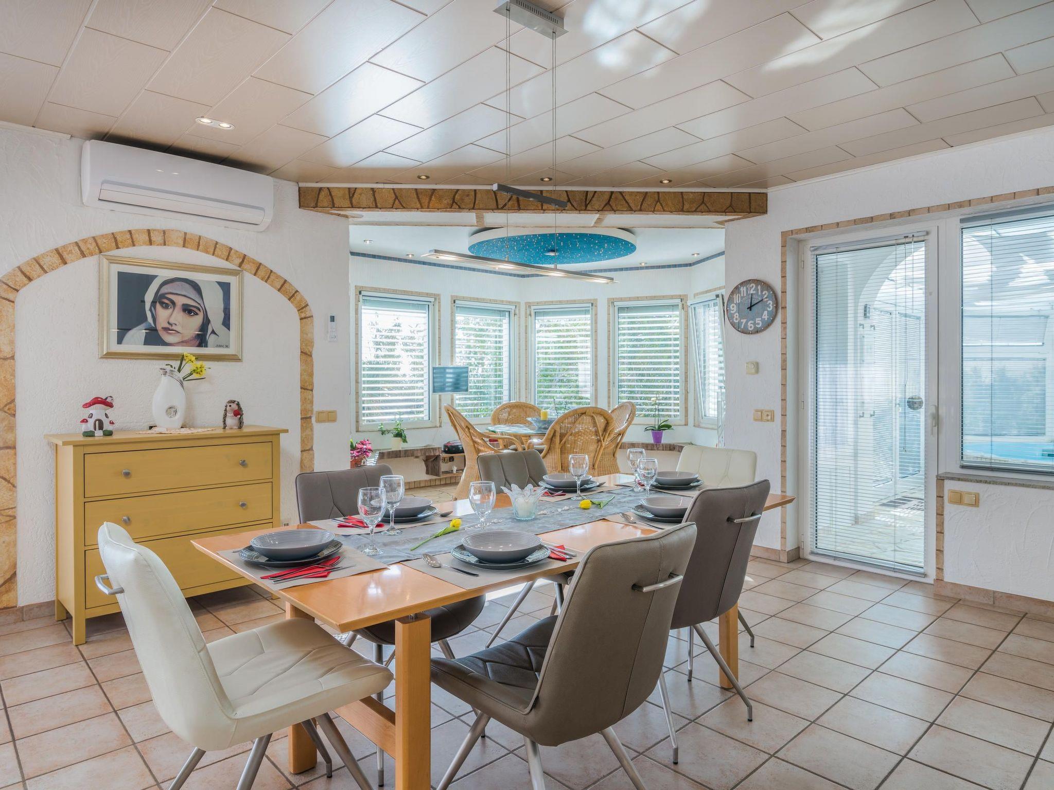 Stepping outside, the property reveals its splendid outdoor amenities that promise relaxation and fun in equal measure. The centerpiece, an 18 m² swimming pool, invites guests to take refreshing dips, while the adjoining spacious terrace, equipped with a hot tub, offers a haven for relaxation under the sky. The terrace serves as a perfect spot for gatherings, making every moment spent outdoors memorable. This outdoor oasis is designed to enhance your stay, ensuring every moment is filled with leisure and enjoyment.