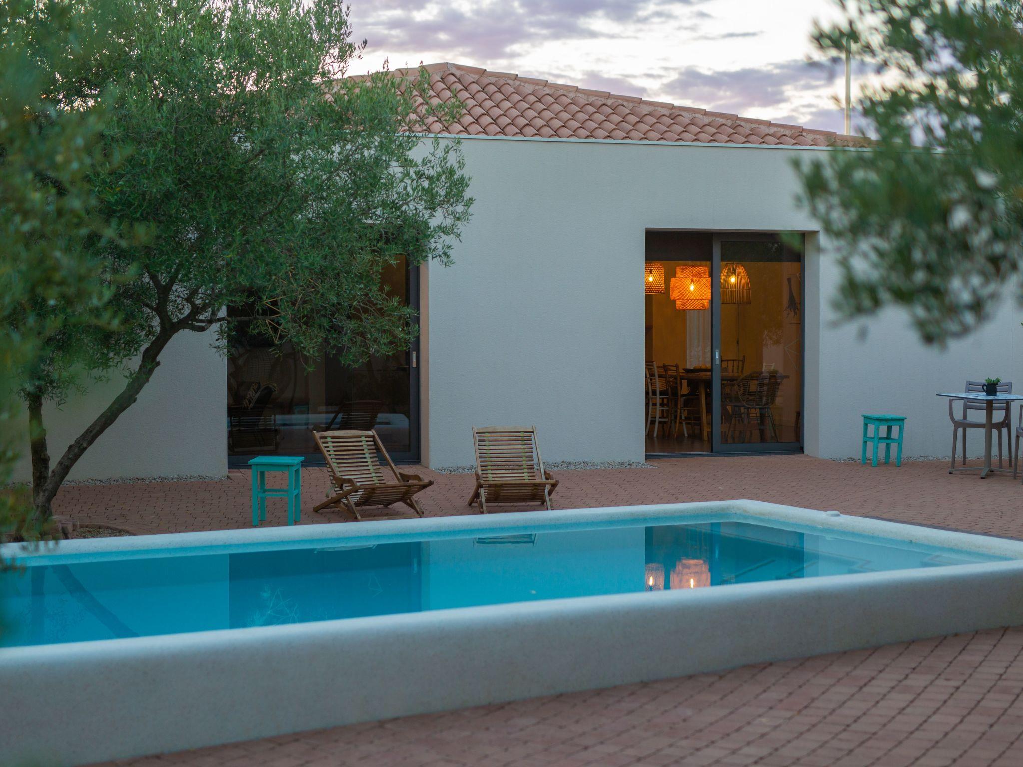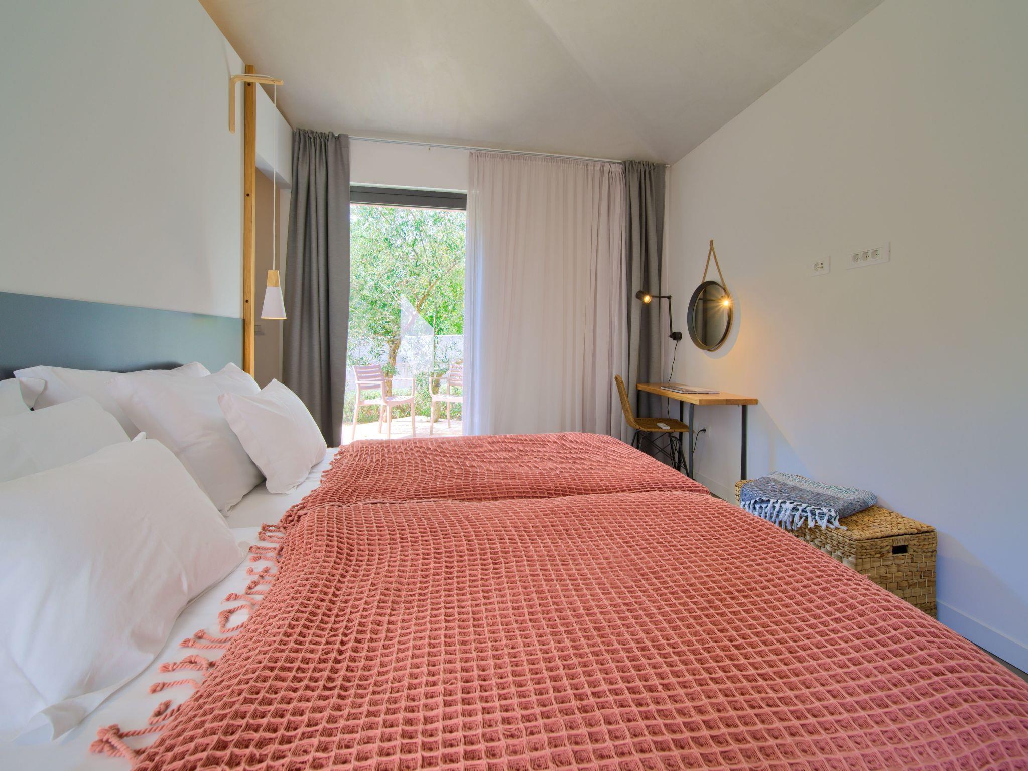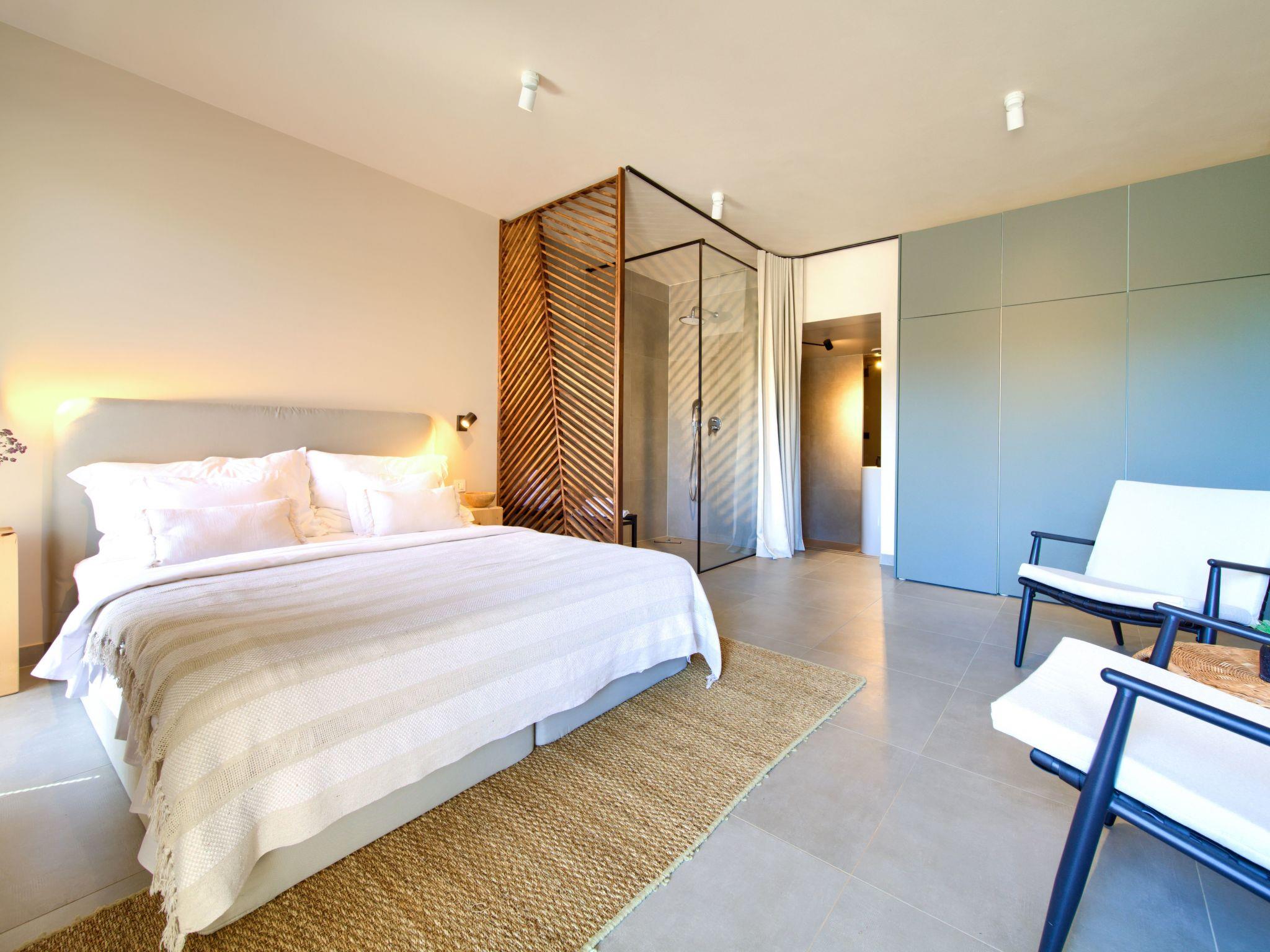 Margari Villas is a unique architectural space, perfectly integrated into the natural ambiance of olive groves, situated in the quiet village of Linardici on the island of Krk. The whole estate consists of several buildings, uniquely designed as indented multi-story ground floor houses, which surround a central atrium dominated by old olive trees and Mediterranean plants, with an infinity pool in the center. It is a space for socializing, relaxing, and enjoying nature. It is interesting that the space of the houses was built in such a way that the old olive grove determined the position of individual parts of the building, so Margari represents three buildings, the first of which is the entrance space and reception with front parking. There is an entrance to the biggest house with a living room and dining room, and two bedrooms with private bathrooms with shower and walk-in wardrobe. Each room also has access to the courtyard with its terrace. From the living room, you exit to the central atrium with a swimming pool, as well as a loggia for dining and barbecue, and a cantilevered balcony. From the central courtyard, you enter a small house dominated by a spacious kitchen with a kitchen island and a space for socializing with the preparation of culinary delicacies. From this space, you enter two bedrooms, equipped with private bathrooms, walk-in wardrobes, and private terraces. From this building, you can reach the backyard with olive groves and Mediterranean plants, as well as the back parking lot and the entrance to the plot. There are 4 bicycles at your disposal, and pets are welcome. Margari Villas is the place where you'll enjoy your perfect vacation in a natural and authentic environment.