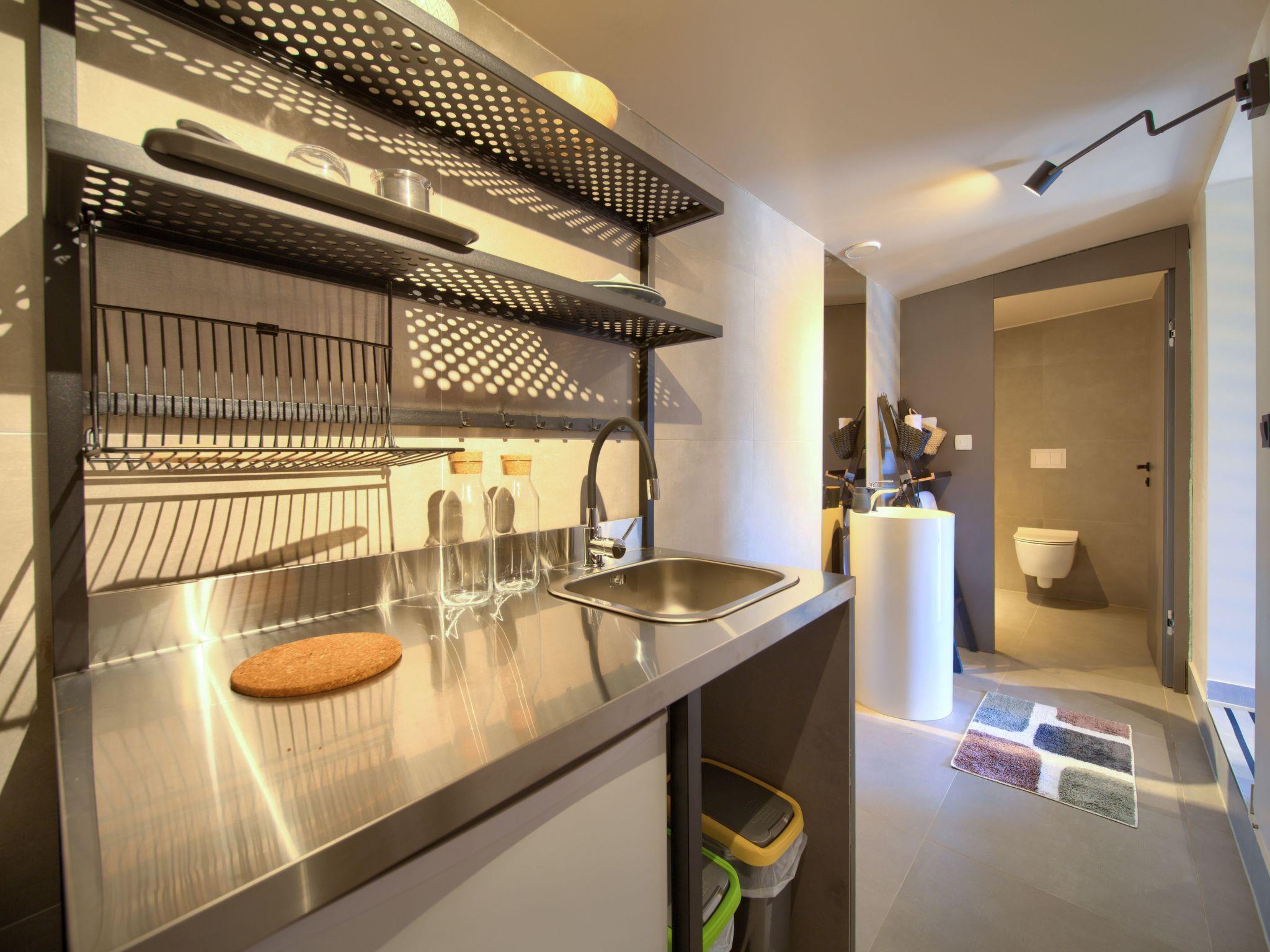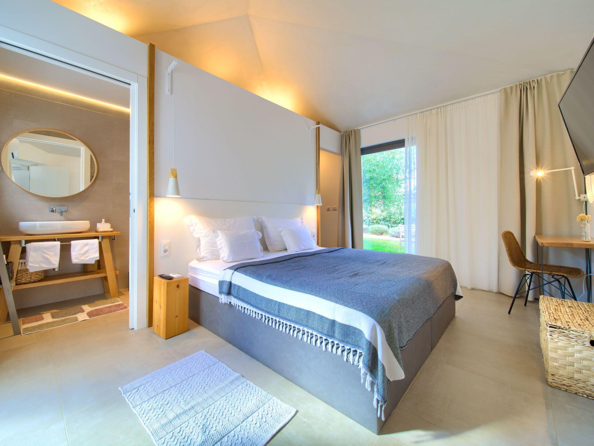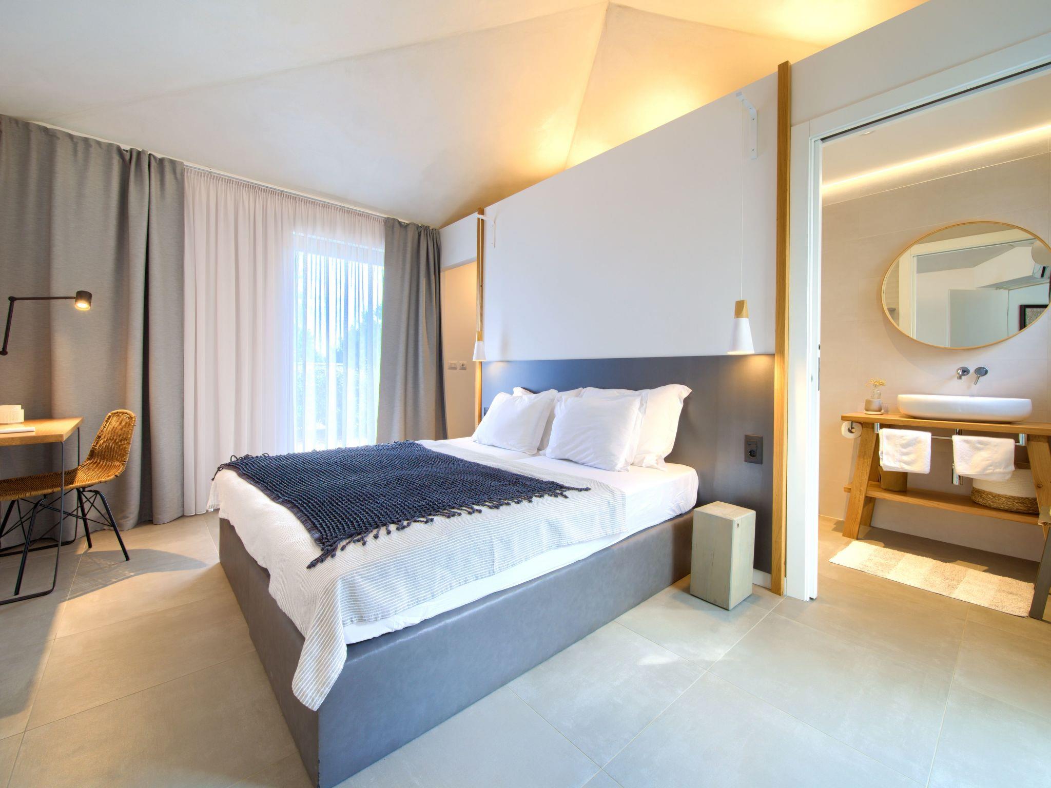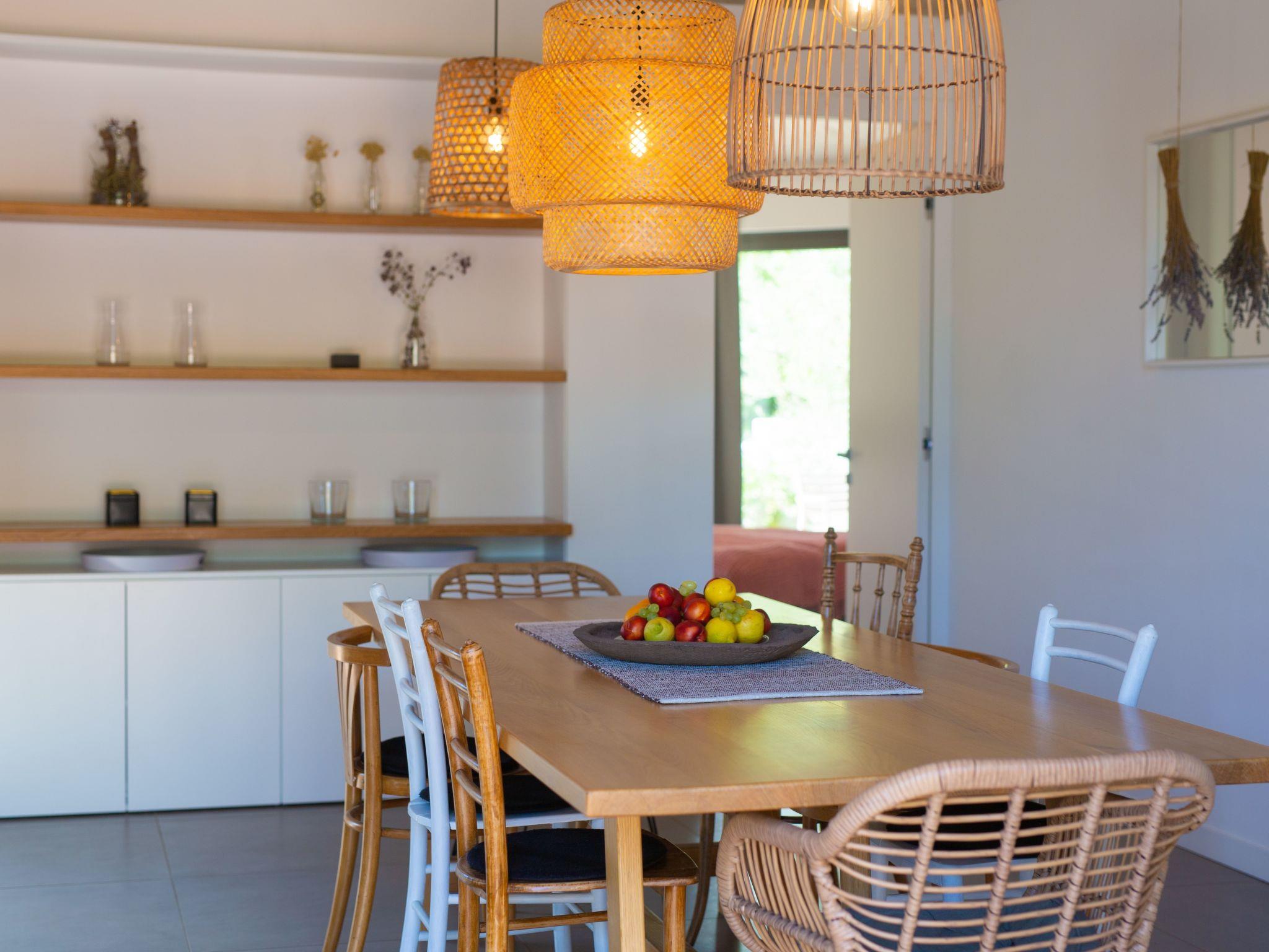 Margari Villas is a unique architectural space, perfectly integrated into the natural ambiance of olive groves, situated in the quiet village of Linardici on the island of Krk. The whole estate consists of several buildings, uniquely designed as indented multi-story ground floor houses, which surround a central atrium dominated by old olive trees and Mediterranean plants, with an infinity pool in the center. It is a space for socializing, relaxing, and enjoying nature. It is interesting that the space of the houses was built in such a way that the old olive grove determined the position of individual parts of the building, so Margari represents three buildings, the first of which is the entrance space and reception with front parking. There is an entrance to the biggest house with a living room and dining room, and two bedrooms with private bathrooms with shower and walk-in wardrobe. Each room also has access to the courtyard with its terrace. From the living room, you exit to the central atrium with a swimming pool, as well as a loggia for dining and barbecue, and a cantilevered balcony. From the central courtyard, you enter a small house dominated by a spacious kitchen with a kitchen island and a space for socializing with the preparation of culinary delicacies. From this space, you enter two bedrooms, equipped with private bathrooms, walk-in wardrobes, and private terraces. From this building, you can reach the backyard with olive groves and Mediterranean plants, as well as the back parking lot and the entrance to the plot. There are 4 bicycles at your disposal, and pets are welcome. Margari Villas is the place where you'll enjoy your perfect vacation in a natural and authentic environment.