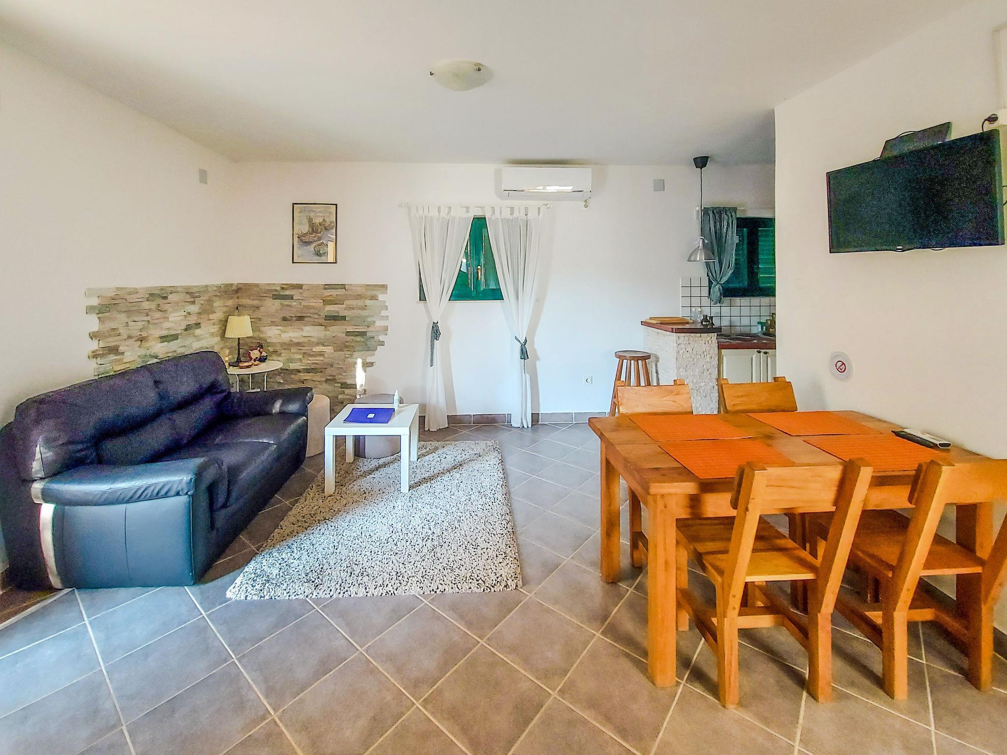 Cosy single-family house "Sandra", renovated in 2022. In the hamlet Brzac 14 km from the centre of Malinska, 14 km from the centre of Krk, 1.5 km from the sea, 1.5 km from the beach. Private: property 530 m2 (fenced) with natural garden. Outdoor shower, terrace (15 m2), garden furniture, barbecue. In the house: internet access, WiFi. Parking (for 2 cars) at the house on the premises. Shop 2.5 km, restaurant 2.5 km, bus stop 1.7 km, ferry "Valbiska" 8 km, shingle beach 1.3 km, concrete beach 2.5 km. Please note: airfield 29 km from the property.