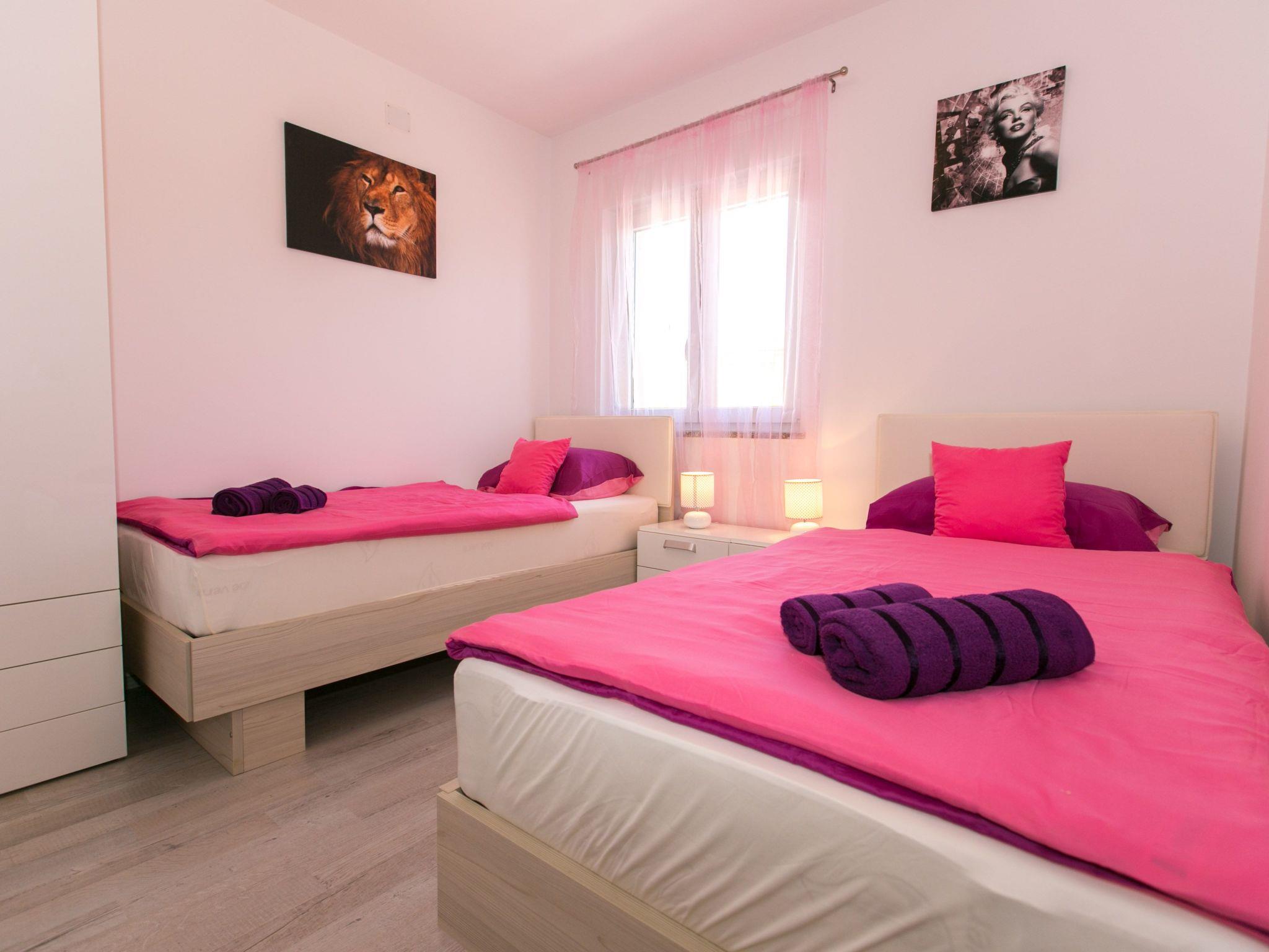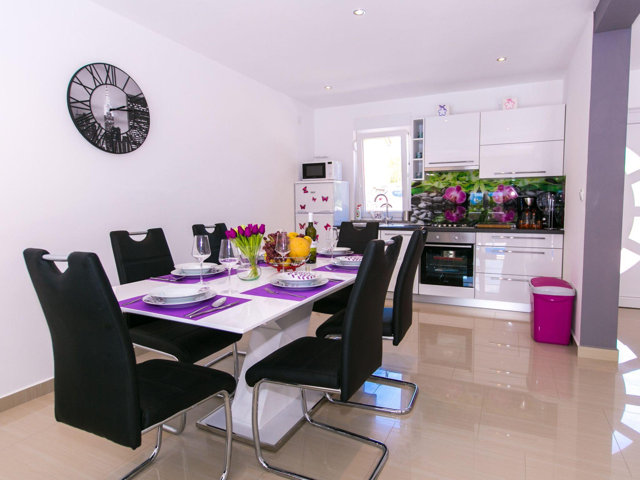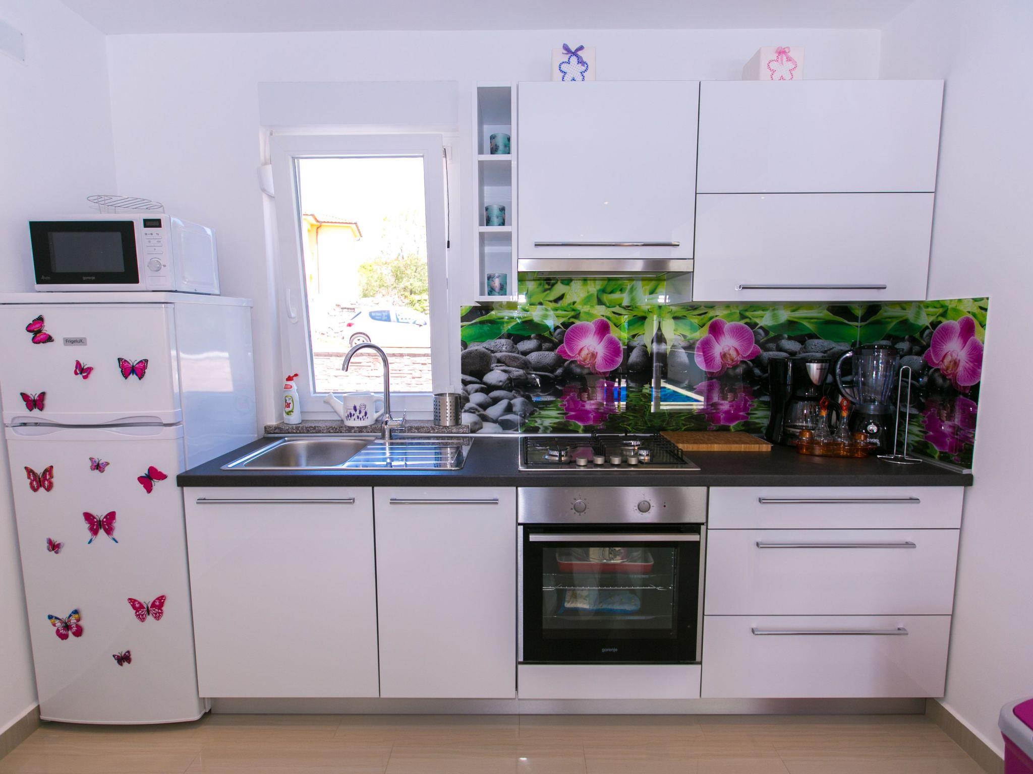 Beautiful and modern holiday home Pink is located in a small village called Skrpcici on the island of Krk and can accommodate up to 6-7 people. If you are looking for a peaceful vacation away from the crowd then Holiday Home Pink is the right choice for you. Every morning as you wake up with a beautiful view from the balcony, you will be greeted by the surrounding nature and greenery. Although there are several houses around, you can still feel part of the untouched nature in this small village. On the ground floor of the house, there is a charming living room, dining room, and fully equipped kitchen with everything you need to cook fine meals for your family and friends. There is also one bathroom. On the first floor, there is a sleeping area with 3 bedrooms with double beds and one bathroom. There is an outdoor covered terrace with a barbecue area at your disposal, where you can enjoy warm evenings. In this house, pets are welcome. The holiday homes Pink and Green are identical and are ideal for families or friends who want to spend their vacation together, but who also value privacy.
