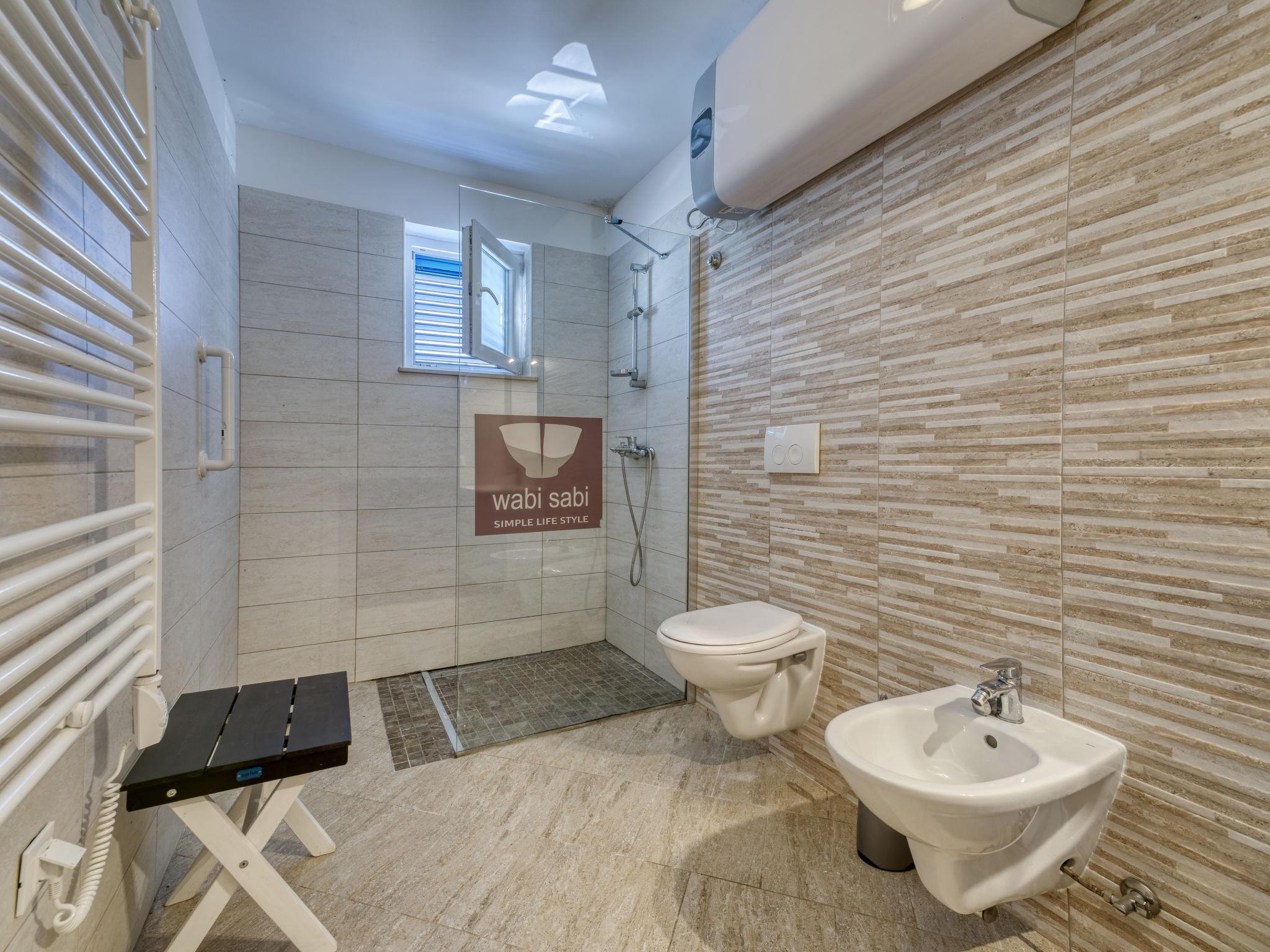 Cosy apartment house "Wabi Sabi Resort 1". In the hamlet Brzac 14 km from the centre of Krk, 14 km from the centre of Malinska, 1.5 km from the sea, 1.5 km from the beach, in the countryside. For shared use: property 1'500 m2 (fenced), well-kept garden with plants and flowers, swimming pool (9 x 6 m, depth 150 cm, seasonal availability: 01.May. - 30.Sep.). Children's pool, outdoor shower, barbecue, children's playground (slide, swing), pool maintenance by the owner/gardener. In the house: reception, internet access, laundry. Parking at the house. Shop 1.2 km, supermarket 5 km, restaurant 1 km, bus stop 1.5 km, ferry "Valbiska" 8 km, pebble beach 1.5 km, rocky beach 3.5 km, diving center 14 km. Marina 25 km, walking paths from the house 20 m. Please note: suitable for families. On request: airport transfer to the holiday accommodation. Airfield 28 km from the property.