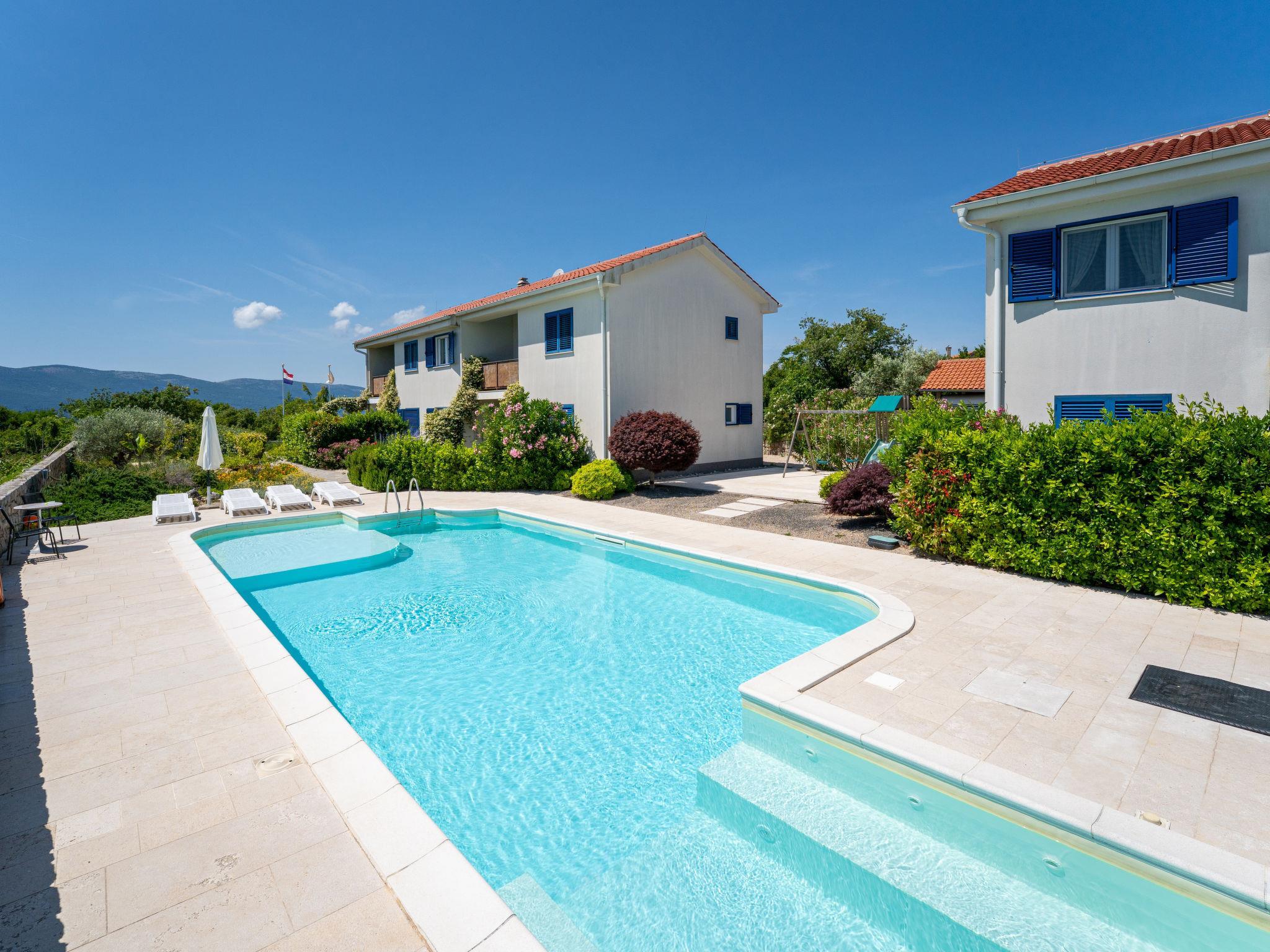 Cosy apartment house "Wabi Sabi Resort 1". In the hamlet Brzac 14 km from the centre of Krk, 14 km from the centre of Malinska, 1.5 km from the sea, 1.5 km from the beach, in the countryside. For shared use: property 1'500 m2 (fenced), well-kept garden with plants and flowers, swimming pool (9 x 6 m, depth 150 cm, seasonal availability: 01.May. - 30.Sep.). Children's pool, outdoor shower, barbecue, children's playground (slide, swing), pool maintenance by the owner/gardener. In the house: reception, internet access, laundry. Parking at the house. Shop 1.2 km, supermarket 5 km, restaurant 1 km, bus stop 1.5 km, ferry "Valbiska" 8 km, pebble beach 1.5 km, rocky beach 3.5 km, diving center 14 km. Marina 25 km, walking paths from the house 20 m. Please note: suitable for families. On request: airport transfer to the holiday accommodation. Airfield 28 km from the property.