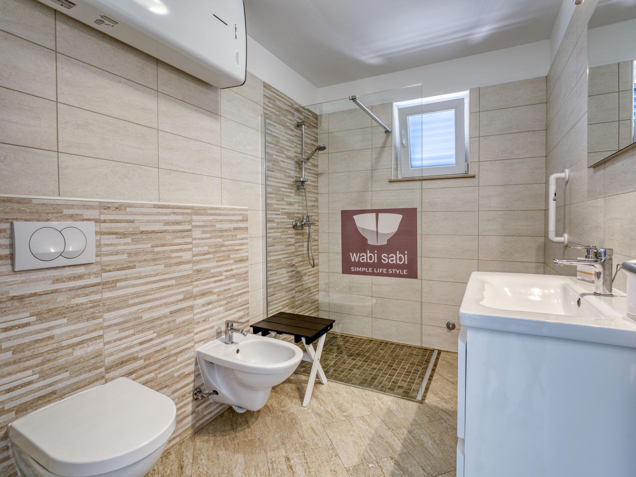 Cosy apartment house "Wabi Sabi Resort 2". In the hamlet Brzac 14 km from the centre of Krk, 14 km from the centre of Malinska, 1.5 km from the sea, 1.5 km from the beach, in the countryside. For shared use: property 1'500 m2 (fenced), well-kept garden with plants and flowers, swimming pool (9 x 6 m, depth 150 cm, seasonal availability: 01.May. - 30.Sep.). Children's pool, outdoor shower, barbecue, children's playground (slide, swing), pool maintenance by the owner/gardener. In the house: internet access. Parking at the house. Shop 1.2 km, supermarket 5 km, restaurant 1 km, bus stop 1.5 km, ferry "Valbiska" 8 km, pebble beach 1.5 km, rocky beach 3.5 km, diving center 14 km. Marina 25 km, walking paths from the house 20 m. Please note: suitable for families. On request: airport transfer to the holiday accommodation. Airfield 28 km from the property.